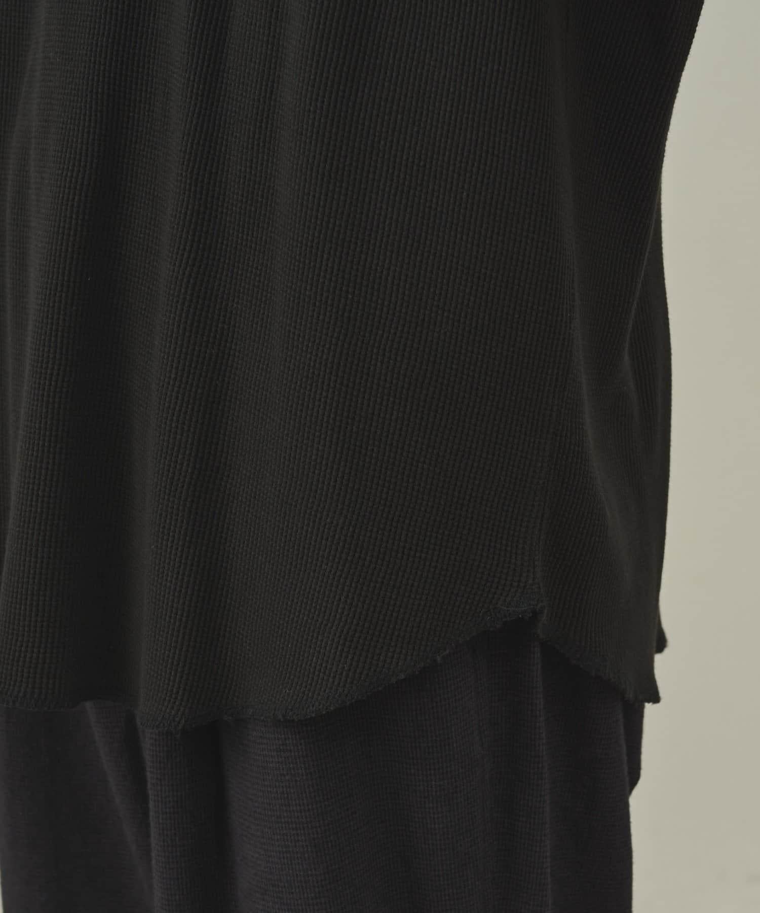 這款上衣由華夫格面料製成,其紋理凹凸不平,經過燃氣燒製後呈現出獨特的紋理和深邃的外觀。