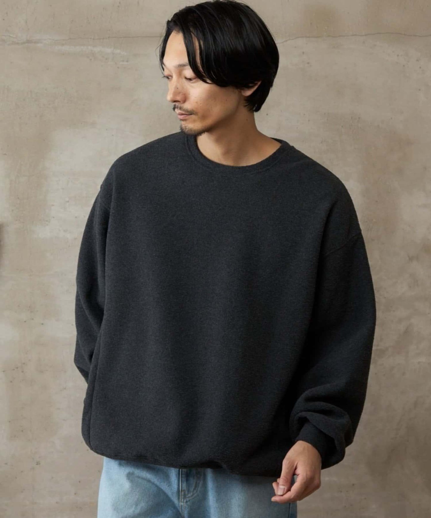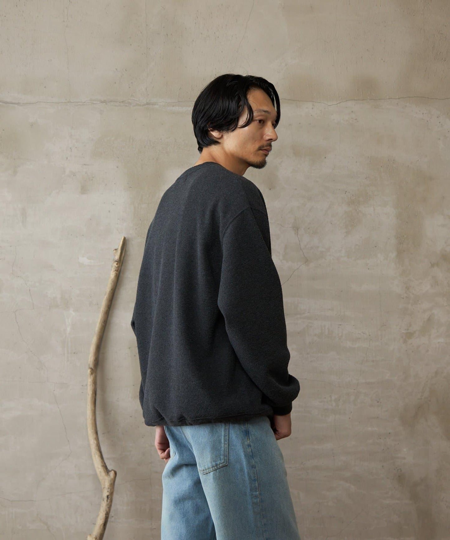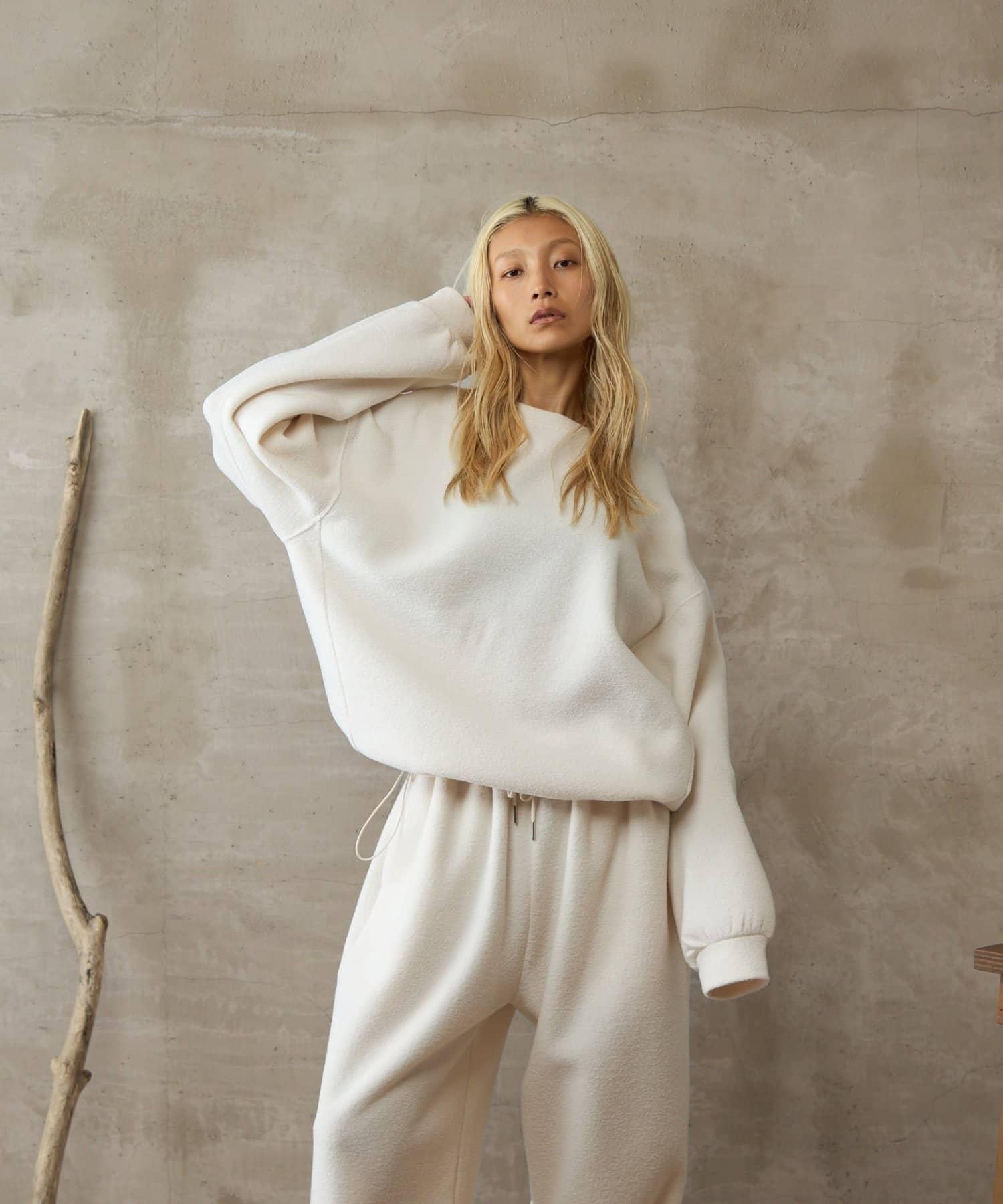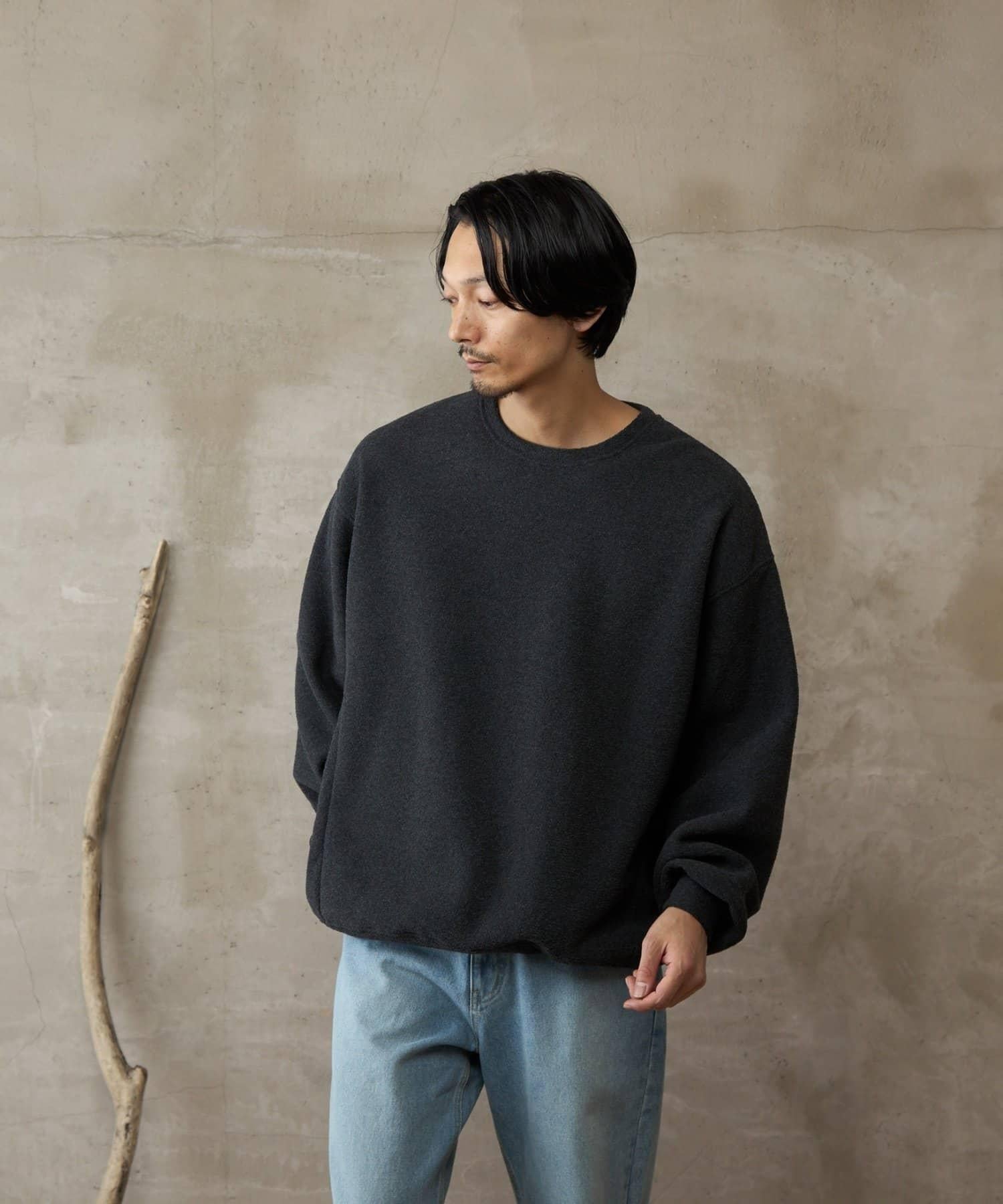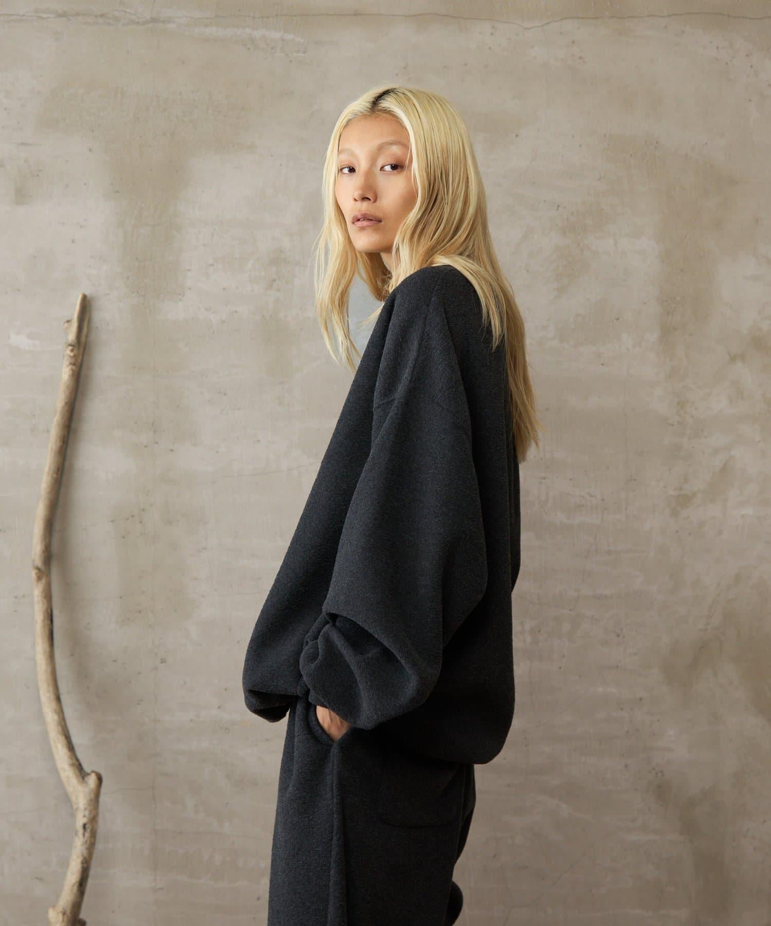 雖然是寬鬆的廓形,但因為在袖口羅紋處切換,廓形變得緊緻、