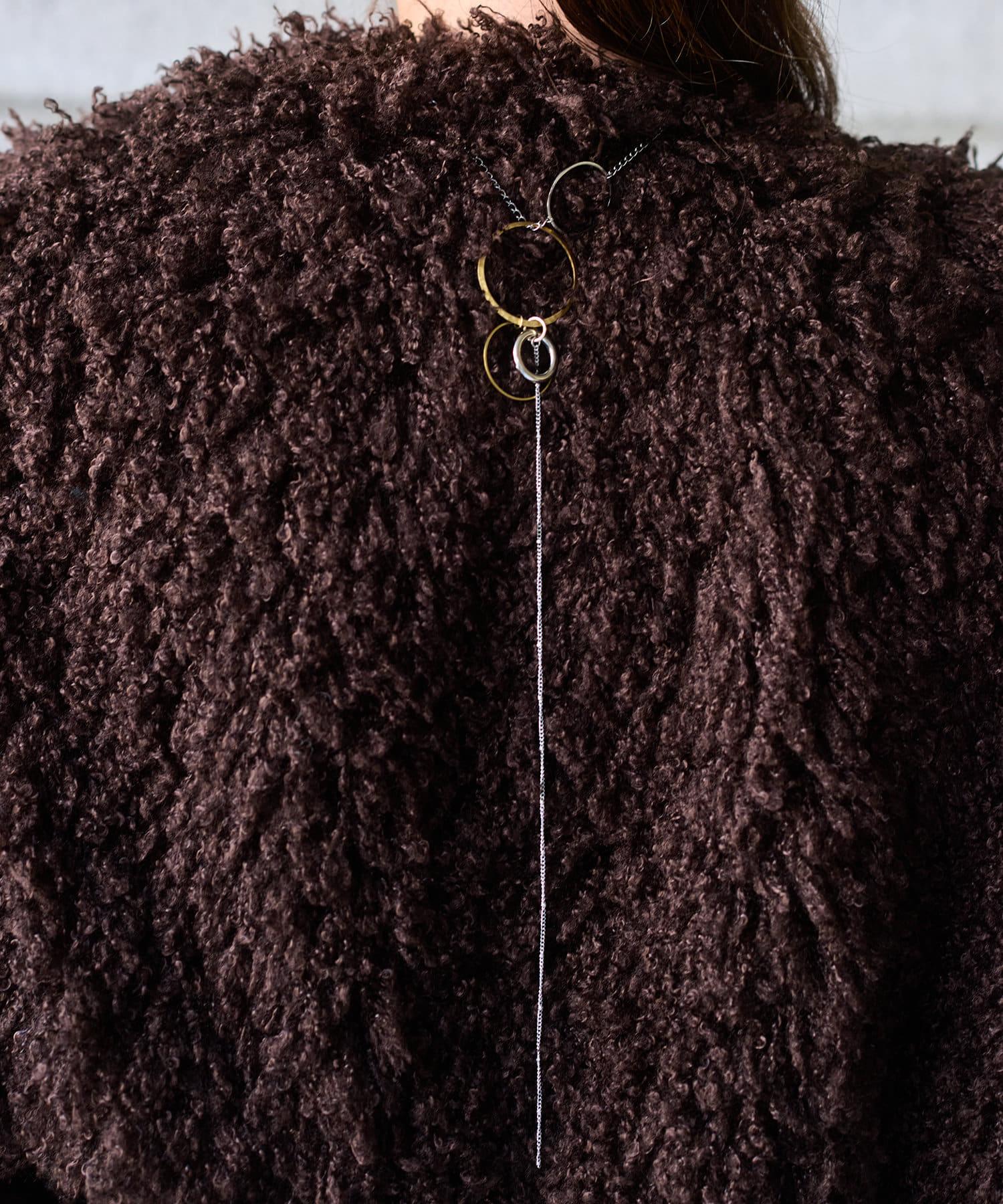 👍基本的穿法是將末端的仿皮繩系在頸前,作為披肩。這是場合穿著的👍選擇,既能保持頸部溫暖,又顯得華麗。作為另一種款式,它還可以穿成短馬甲,在手臂上開衩。疊穿在夾克或 T 恤外面,可為容易陷入陳規的外衣款式帶來煥然一新的感覺。