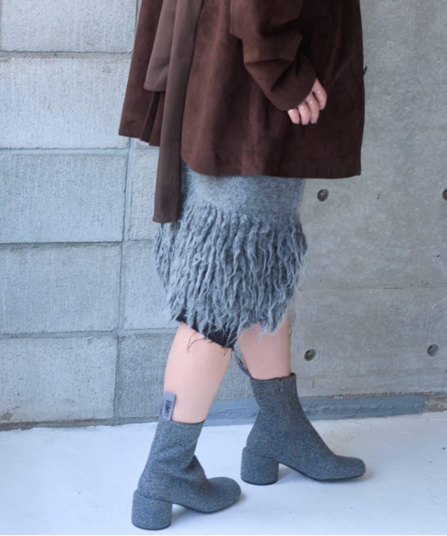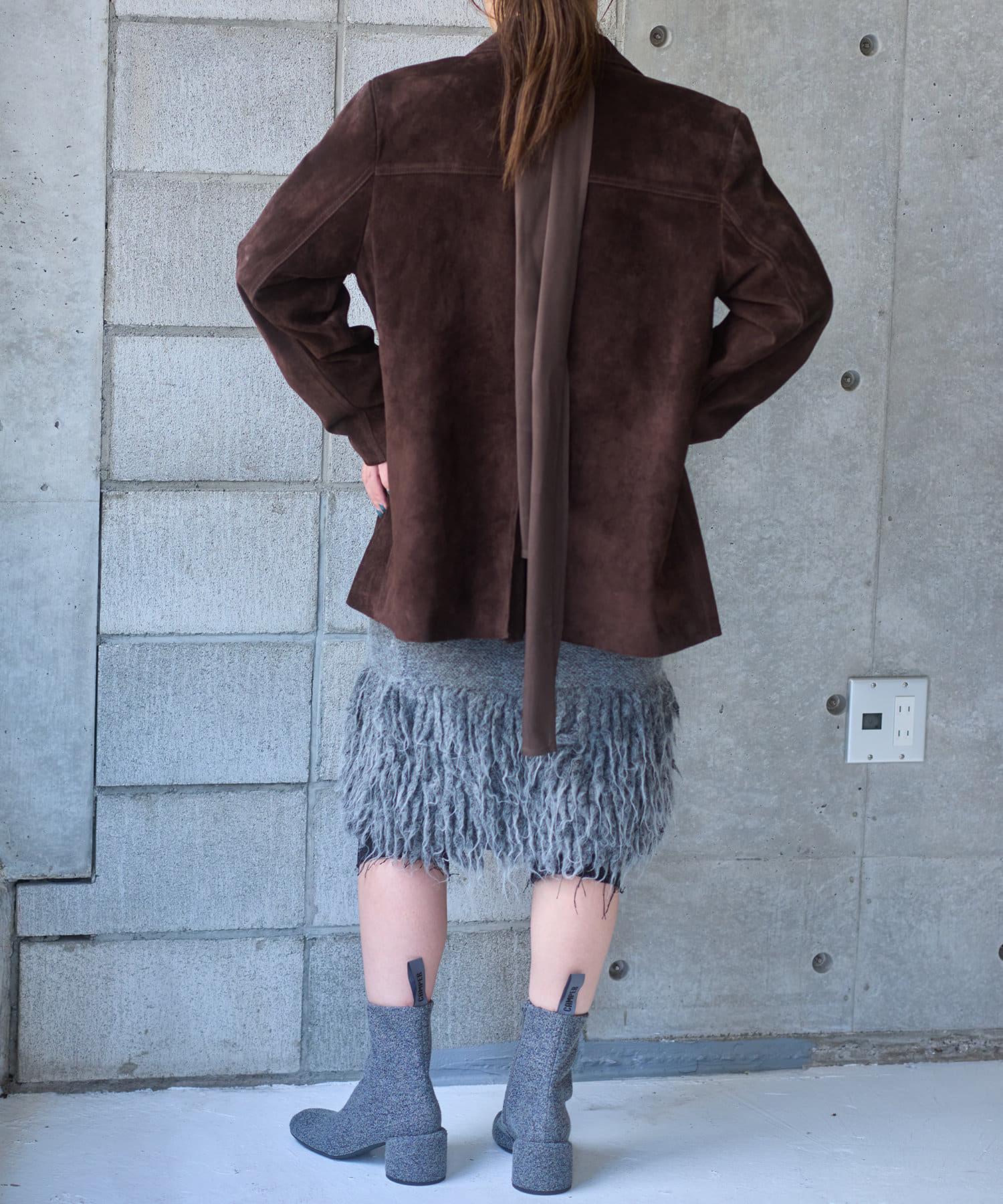 本季主題 "C&W in Town "的形象單品之一,下襬處大量手工鑲邊的針織裙,適合疊穿。大膽的深開衩設計讓您可以搭配緊身褲或長褲,盡享疊穿樂趣。