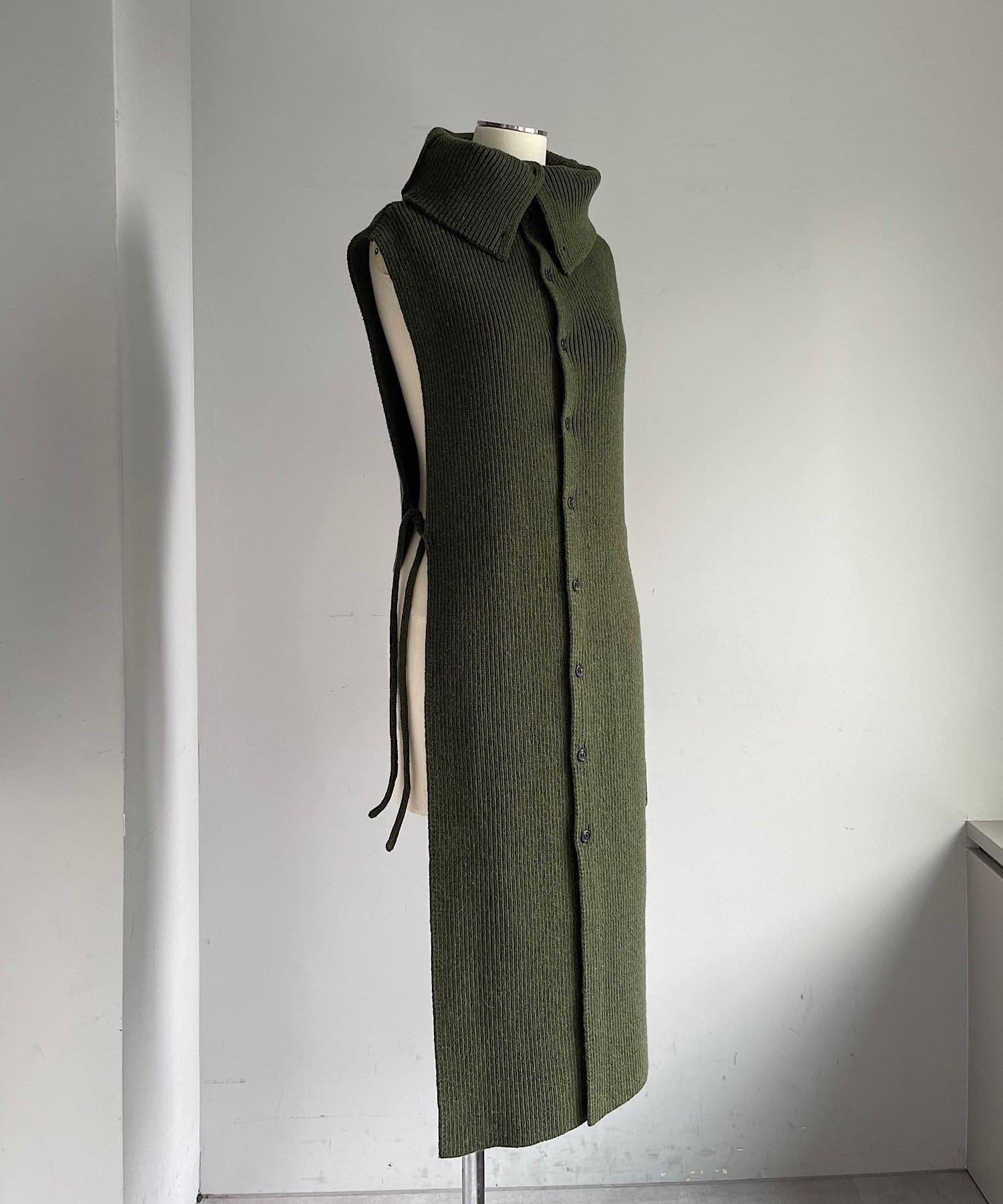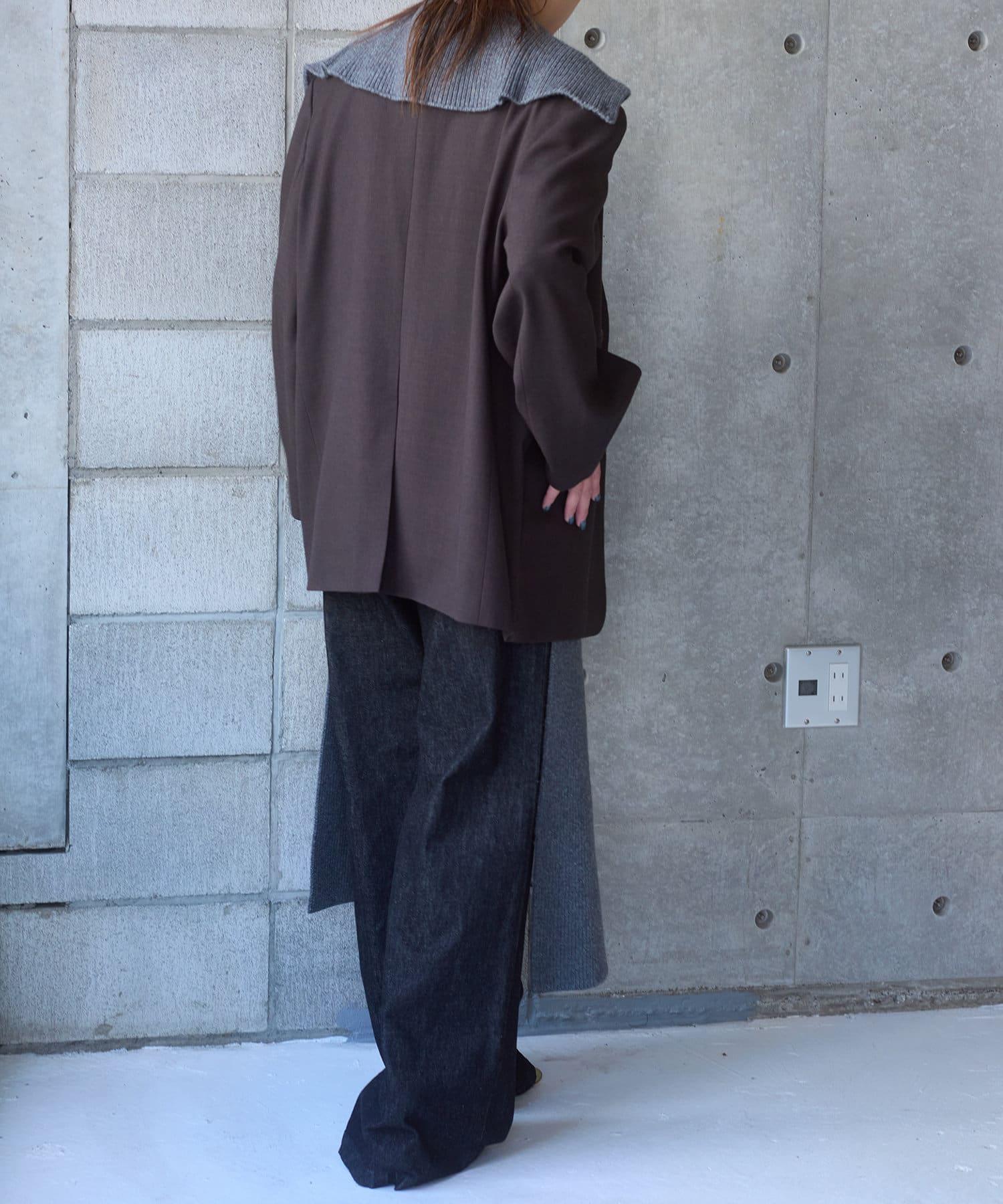 扣上紐扣的長身部分位於前部,短身部分位於後部,下襬的紐扣打開後,可以像圍巾一樣拉在肩上。