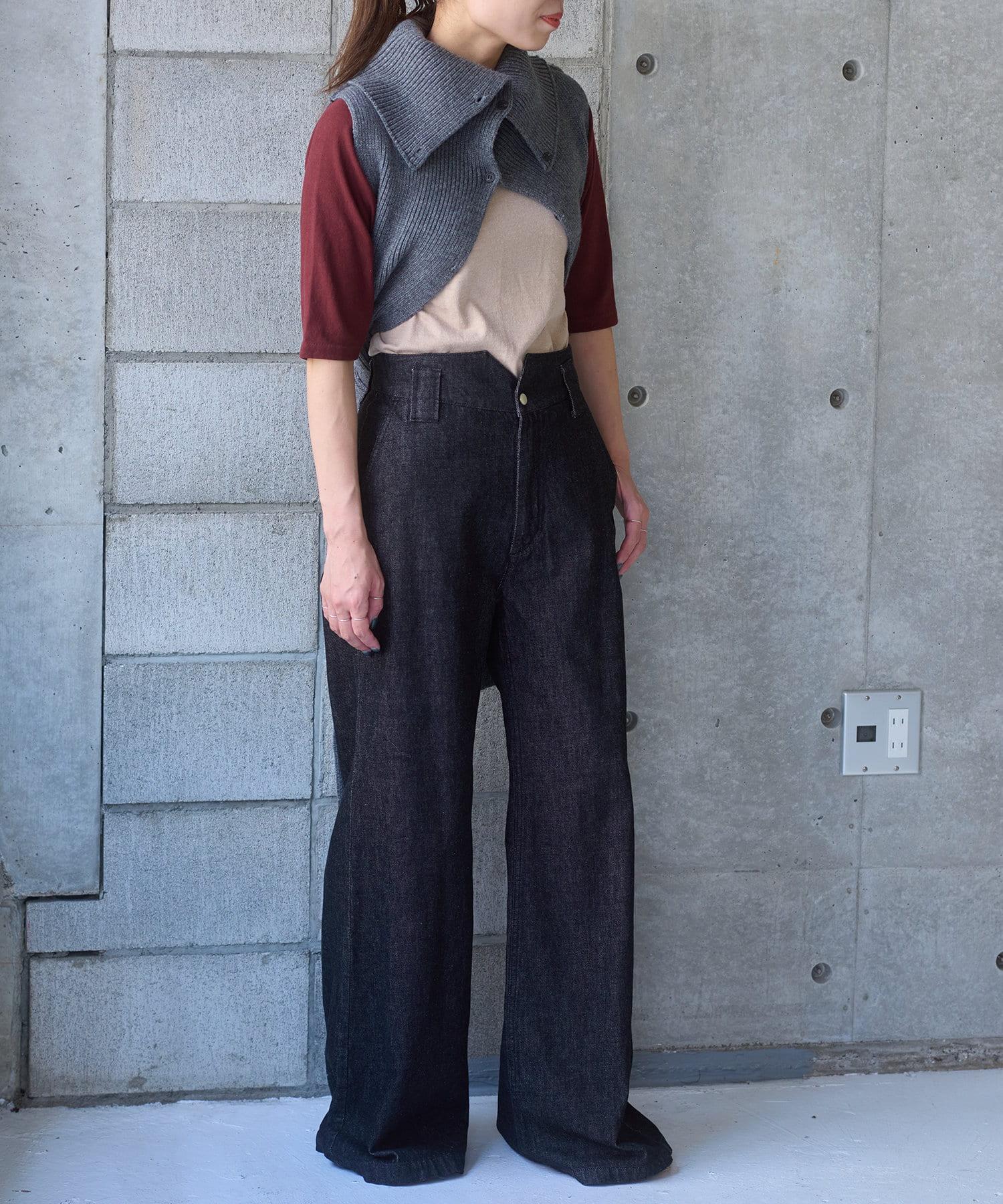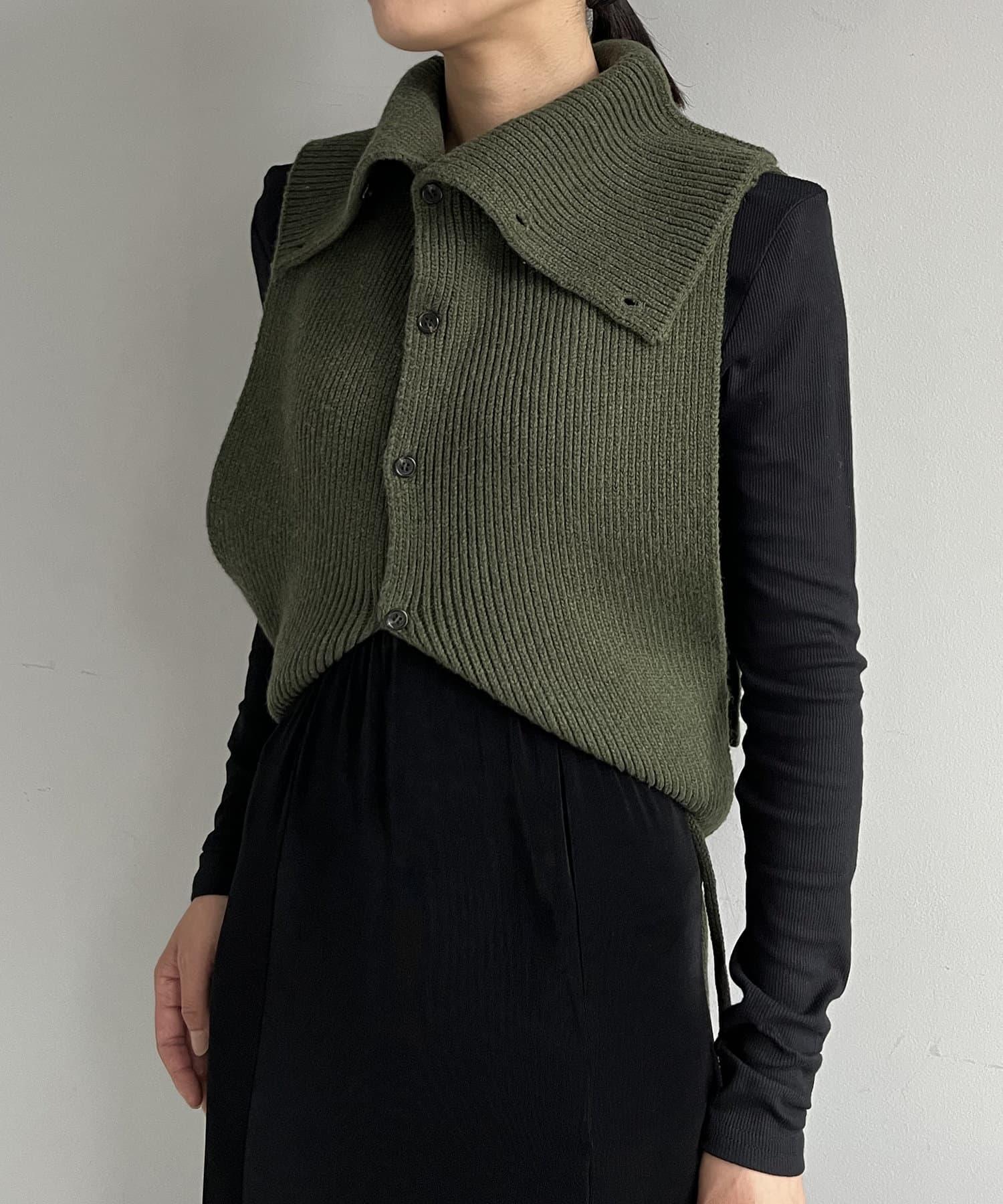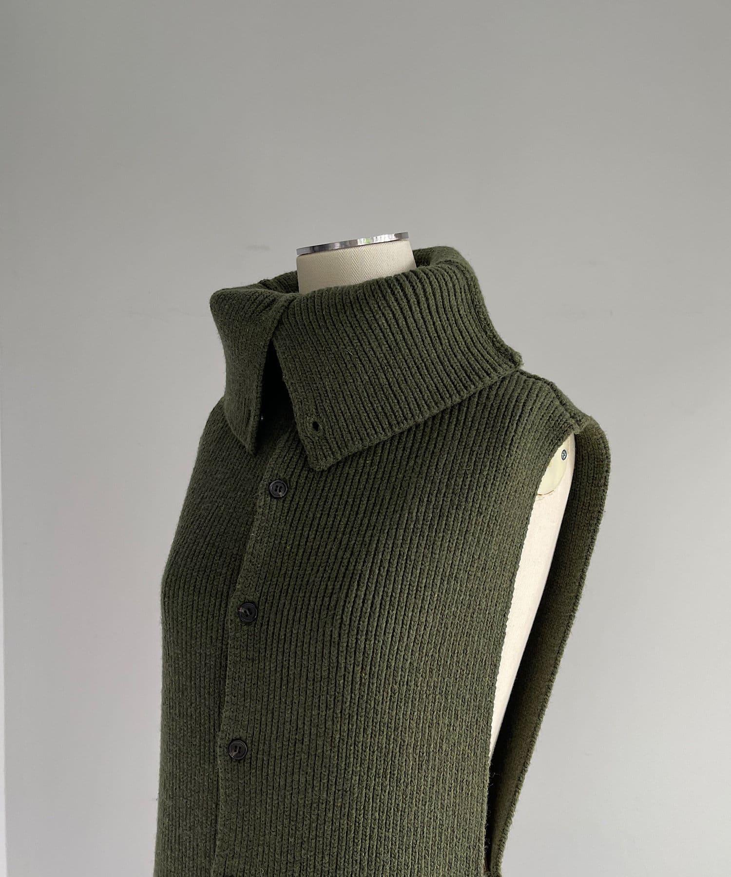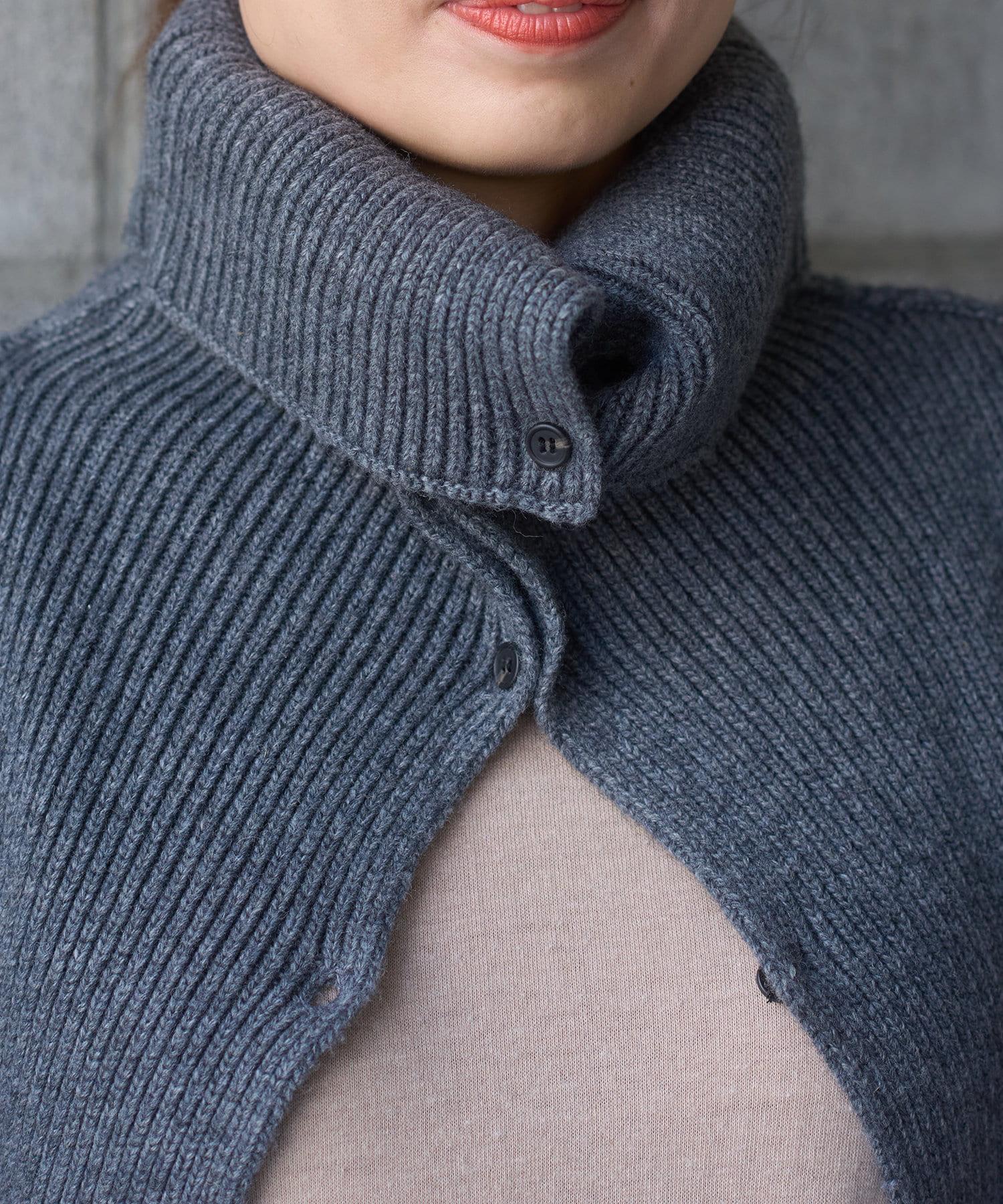 釦子扣到頂端時,就變成了遮住脖子的高領款式,打開後就變成了像水手領一樣的開領款式。