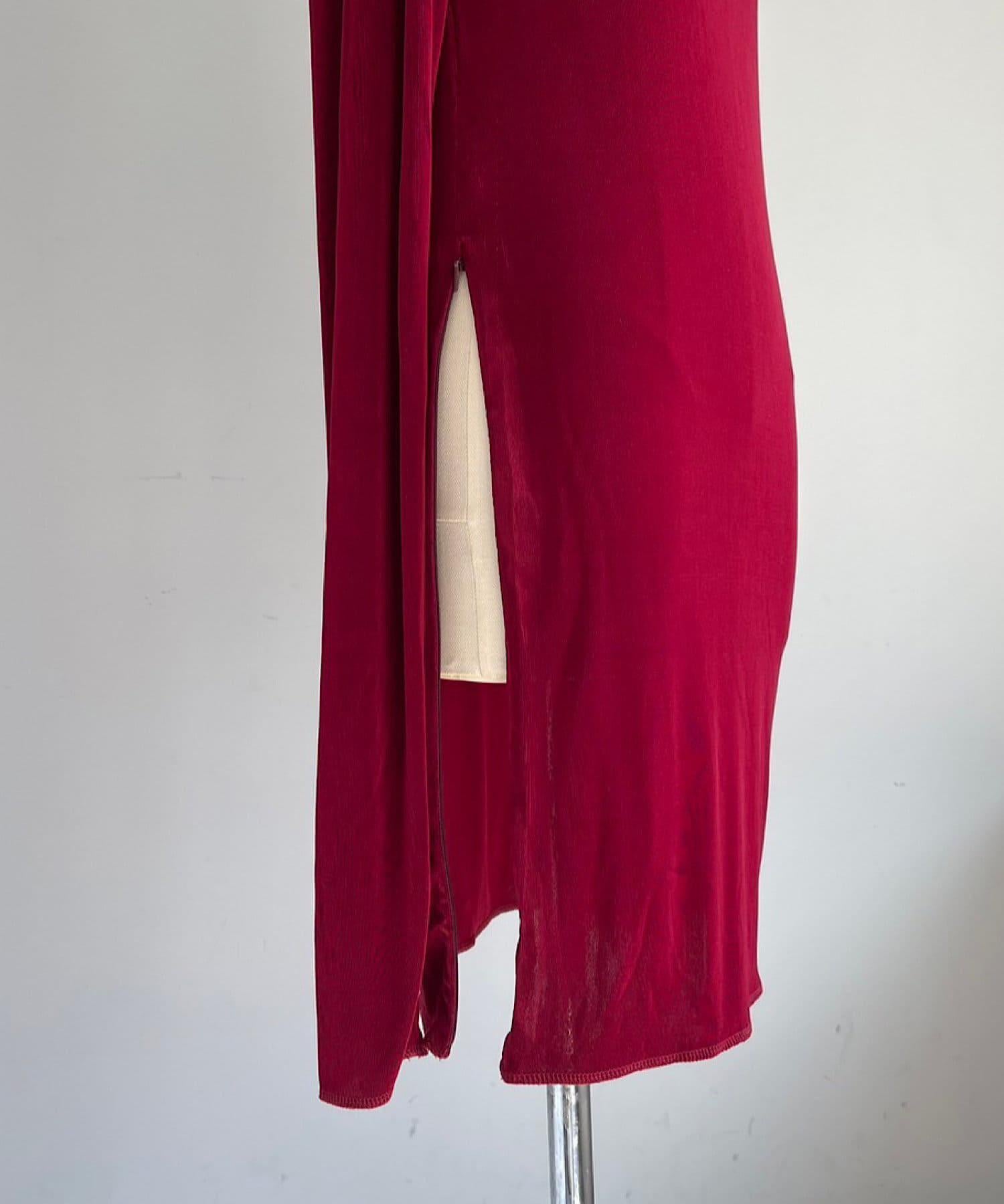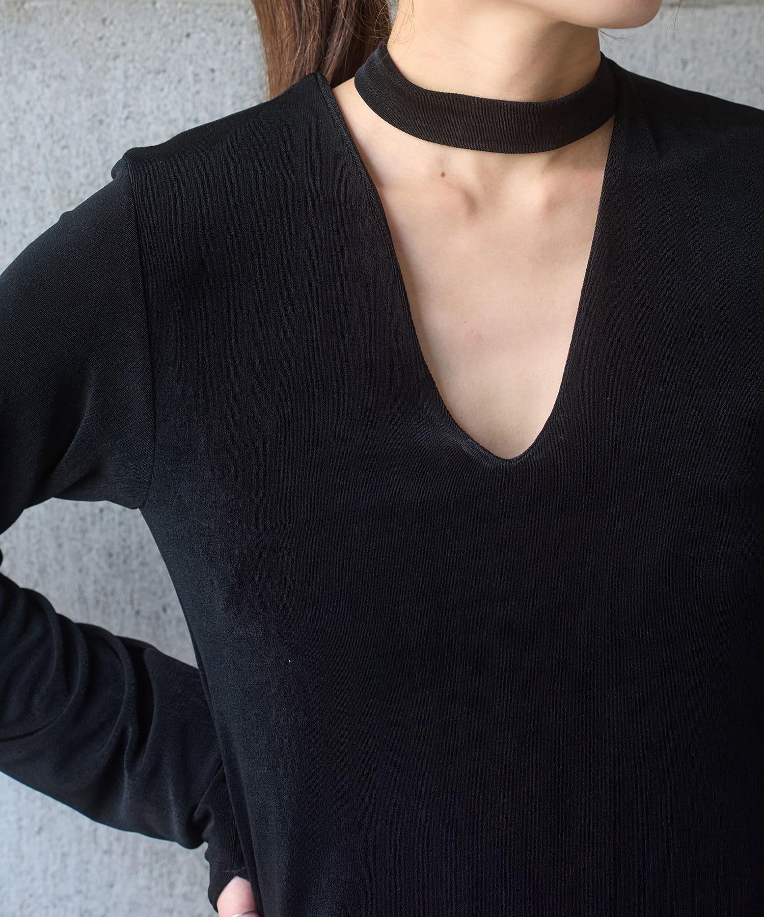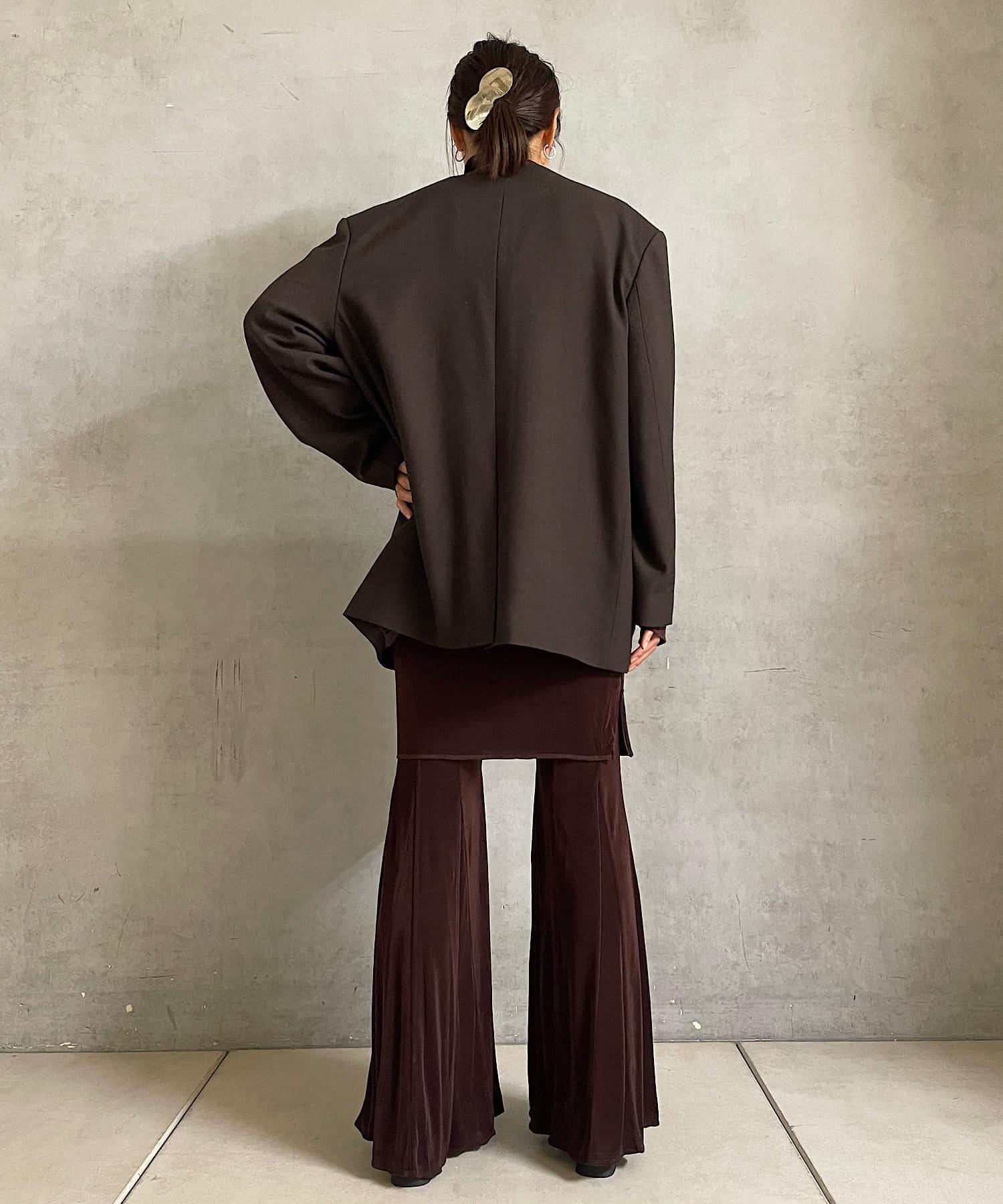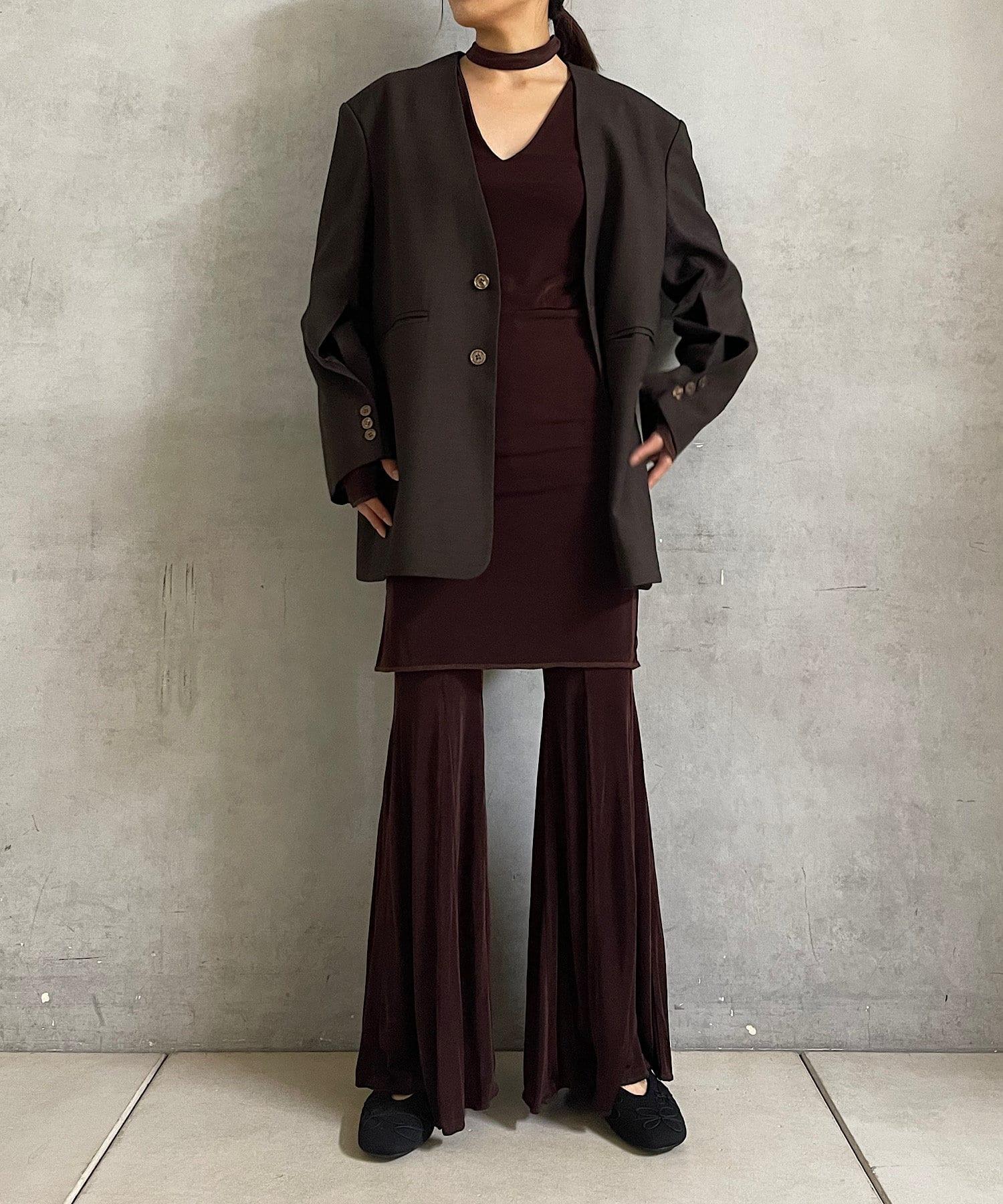 長度足以遮住腰部。側面的開衩有一個可調節的扣子,穿著時不會有緊繃感。建議與同樣採用共生面料的 Sheer rib flare 緊身褲搭配穿著。也可前後穿著。搭配圓領時,可將後側敞開穿著。