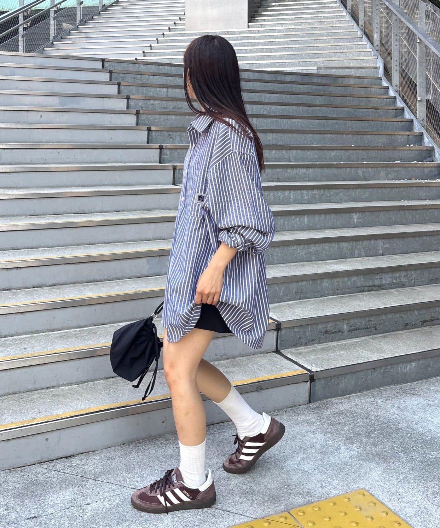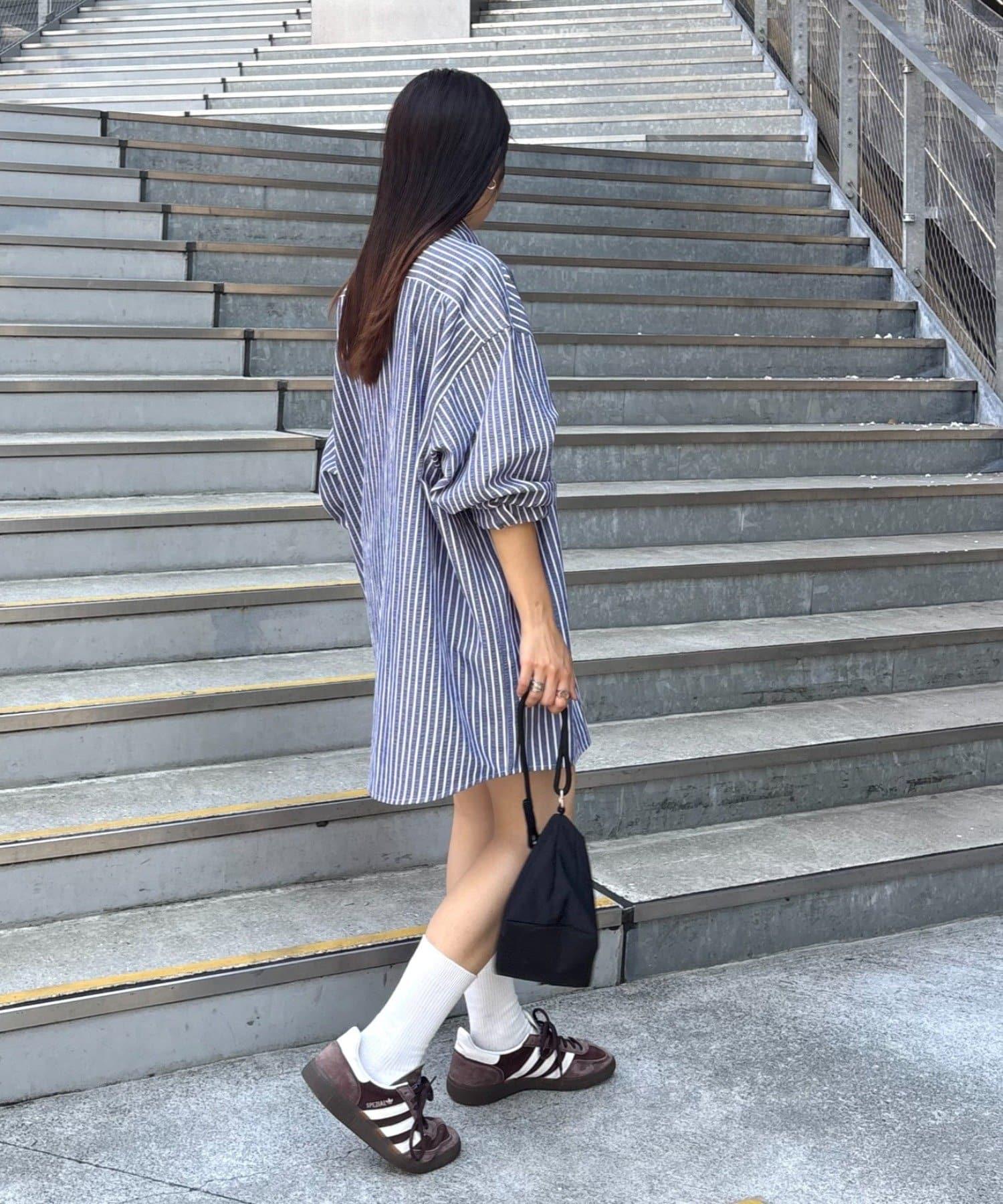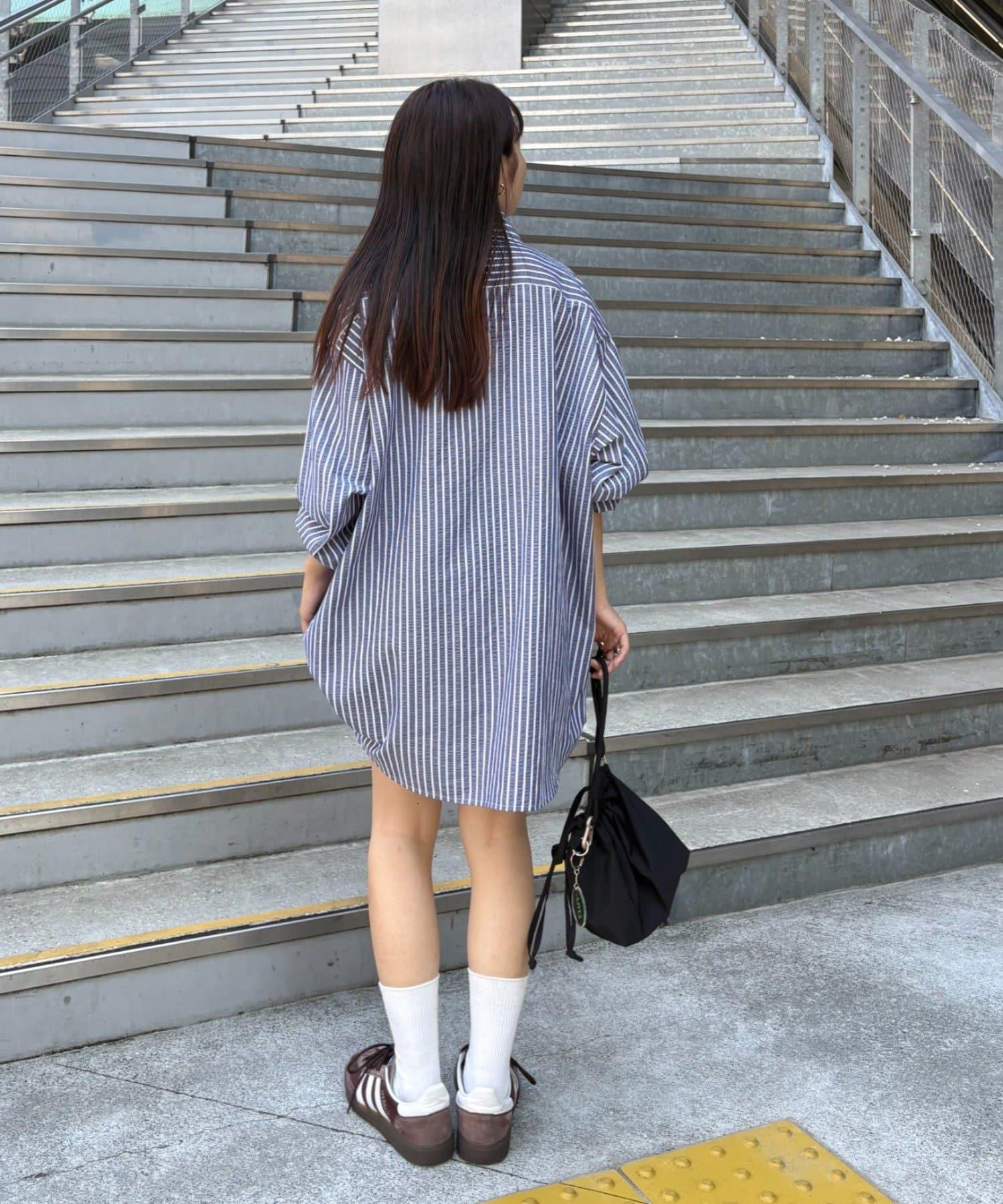 超大號的襯衫,穿上它就能給人一種時髦的感覺。