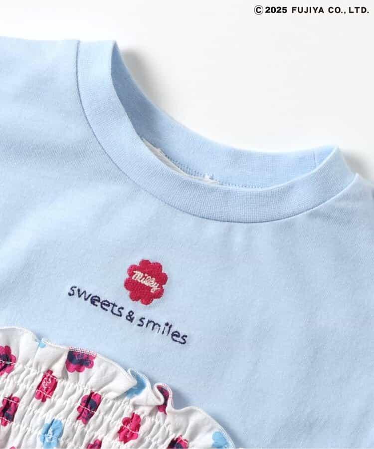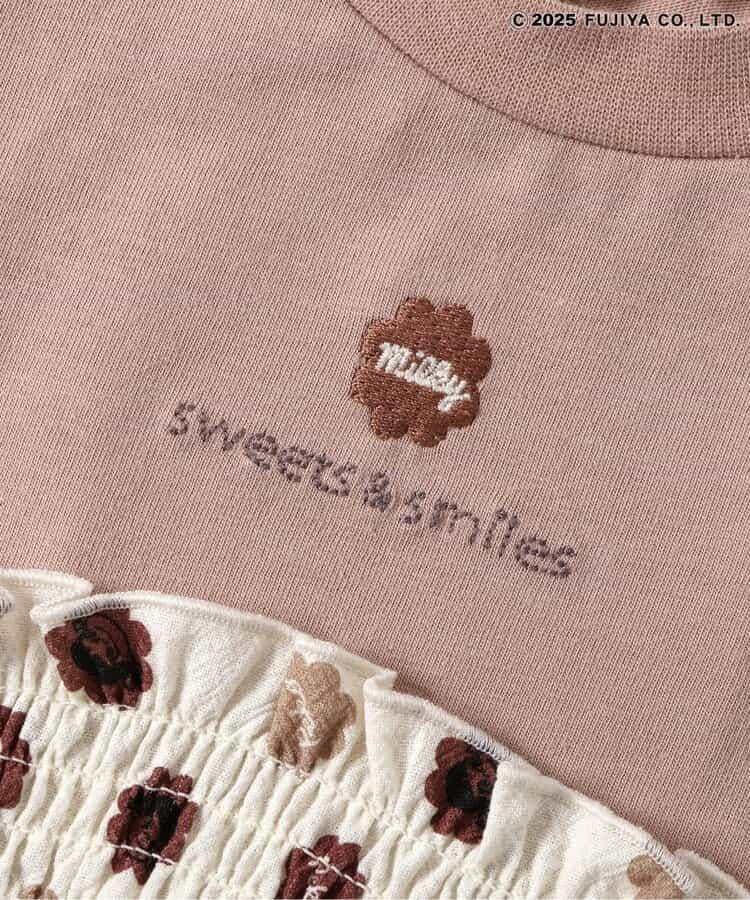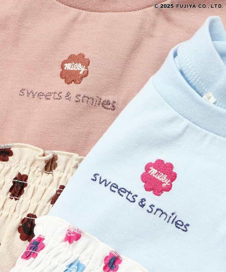 這是一款非常可愛的外衣,印有 "sweets & smiles "標誌和 Milky 包裝紙風格的圖案!