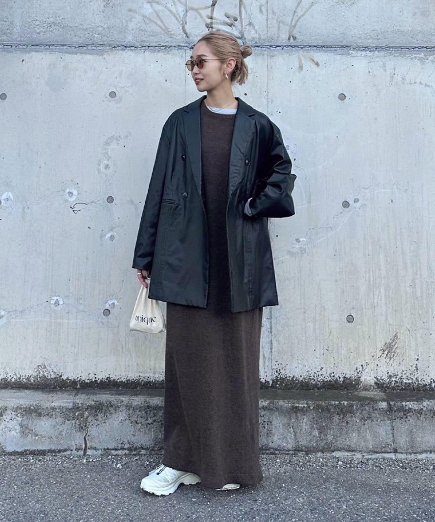 您可以根據自己的搭配心情,在腳上搭配運動鞋或側邊長筒靴,享受搭配的樂趣。