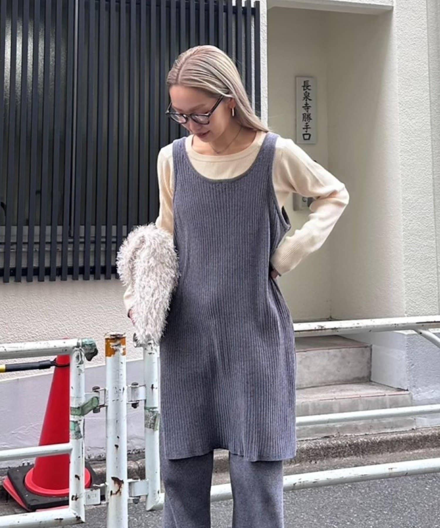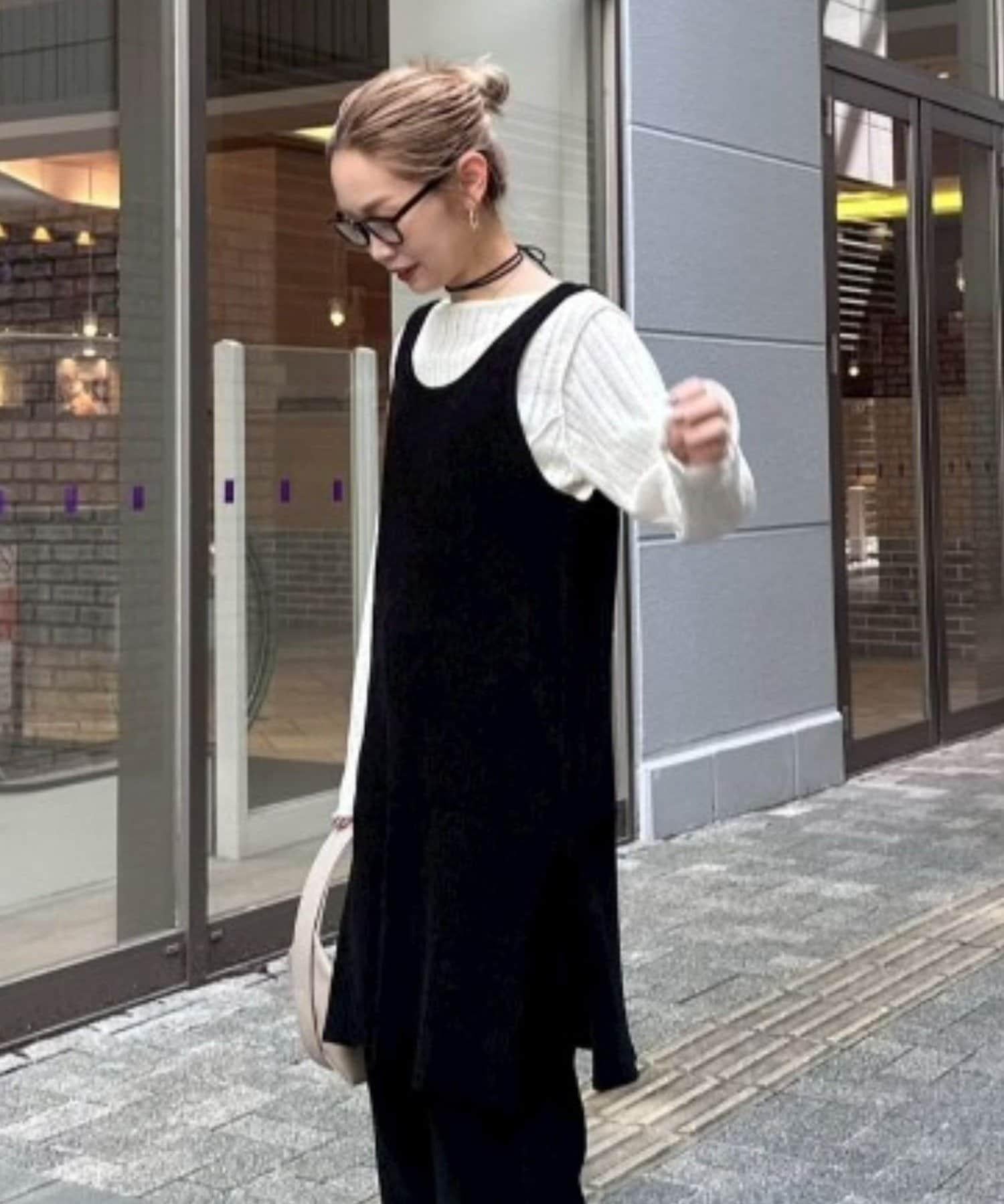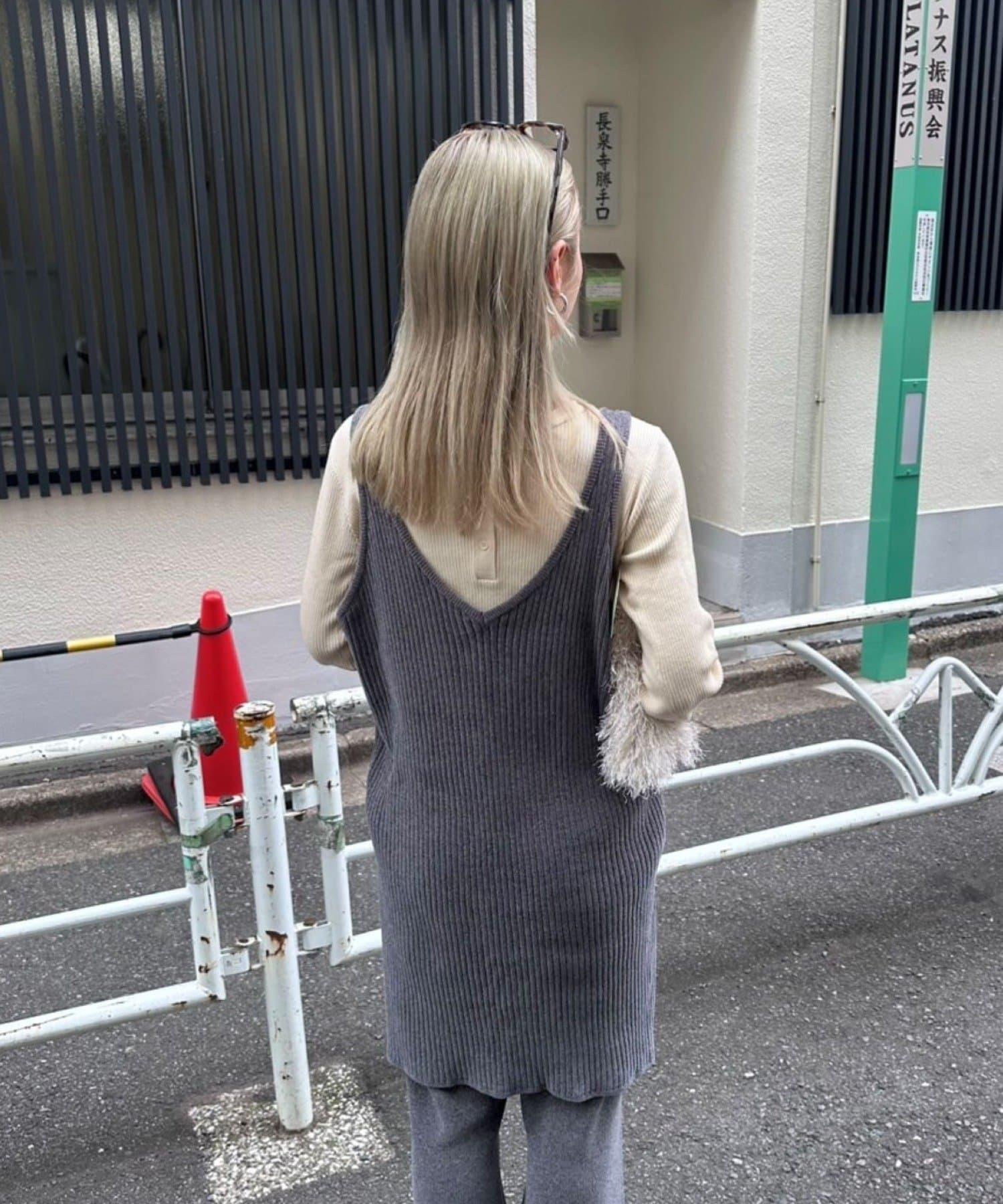 【PON企畫】顯瘦前後兩穿毛絨針織吊帶長款上衣