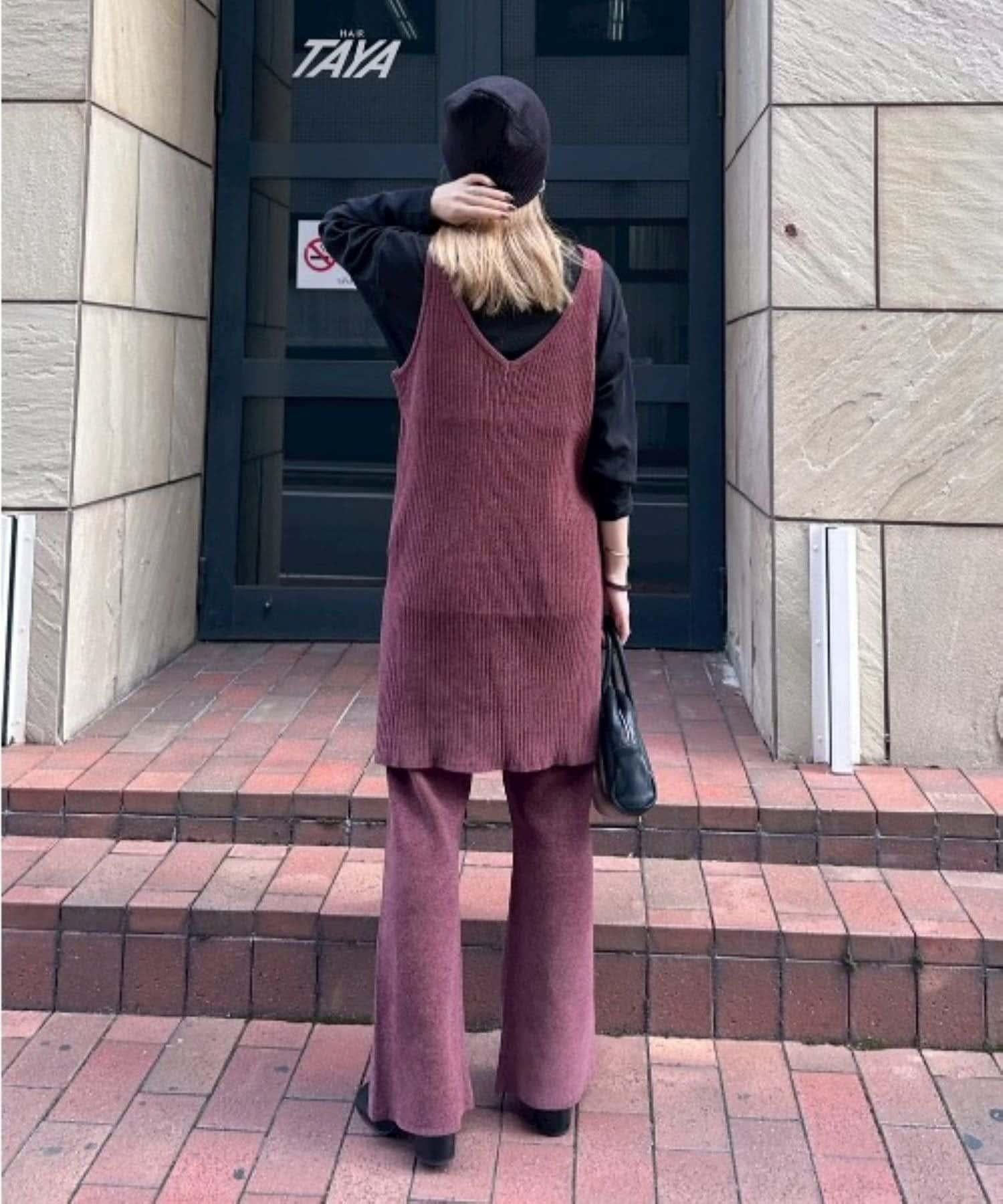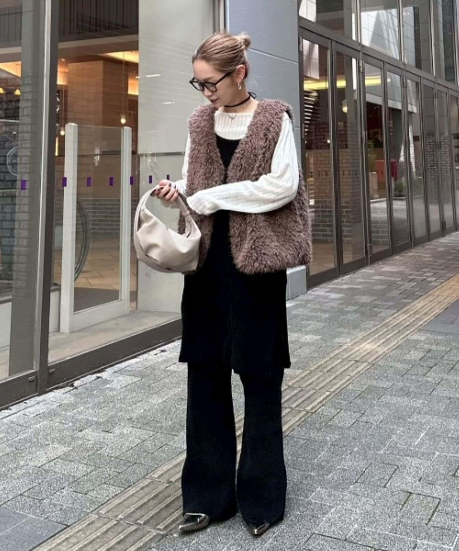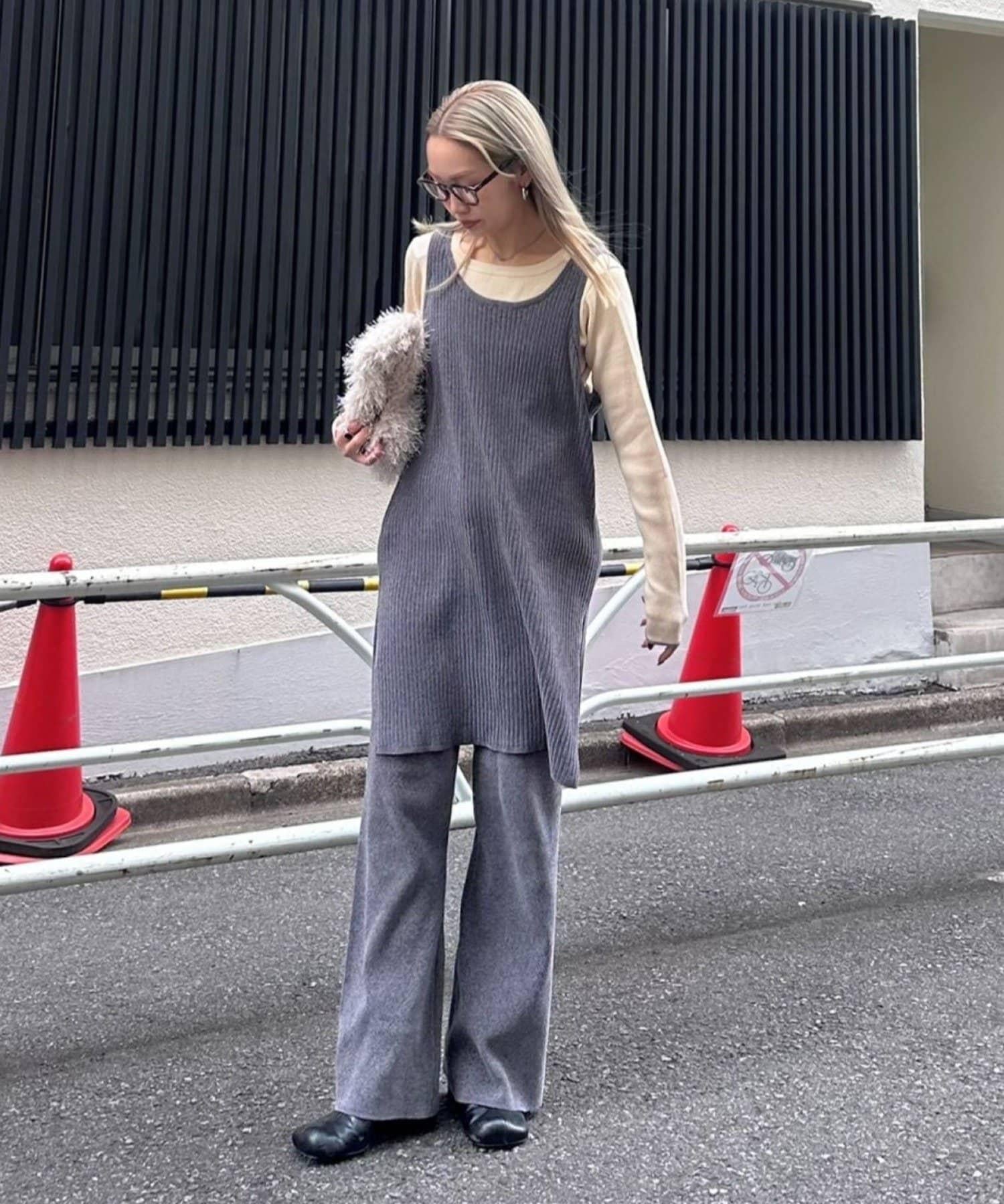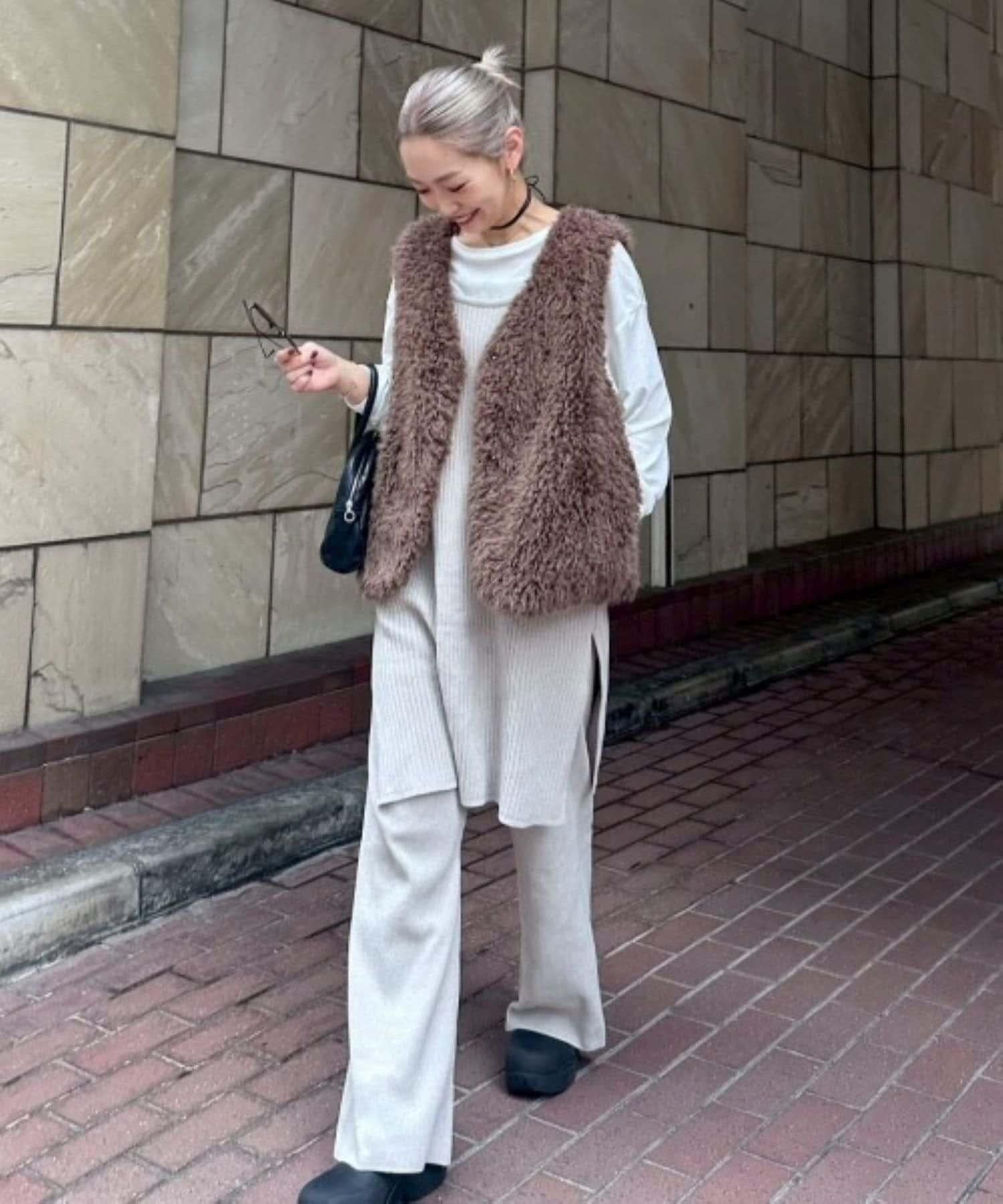 【PON企畫】顯瘦前後兩穿毛絨針織吊帶長款上衣