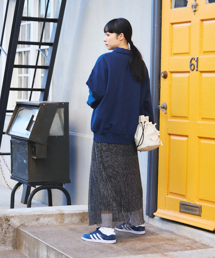 半拉鍊的設計讓您既可將其合攏穿著,也可將其打開,與剪裁縫製的內層一起享受疊穿的樂趣。