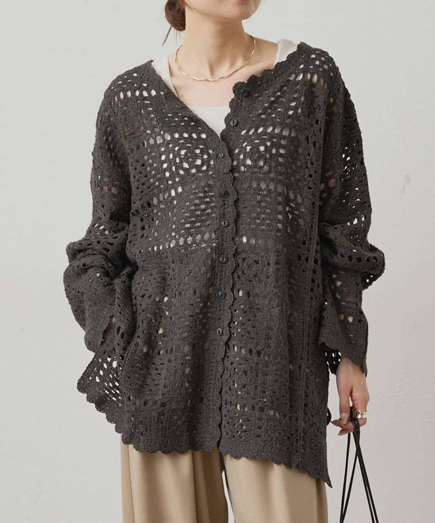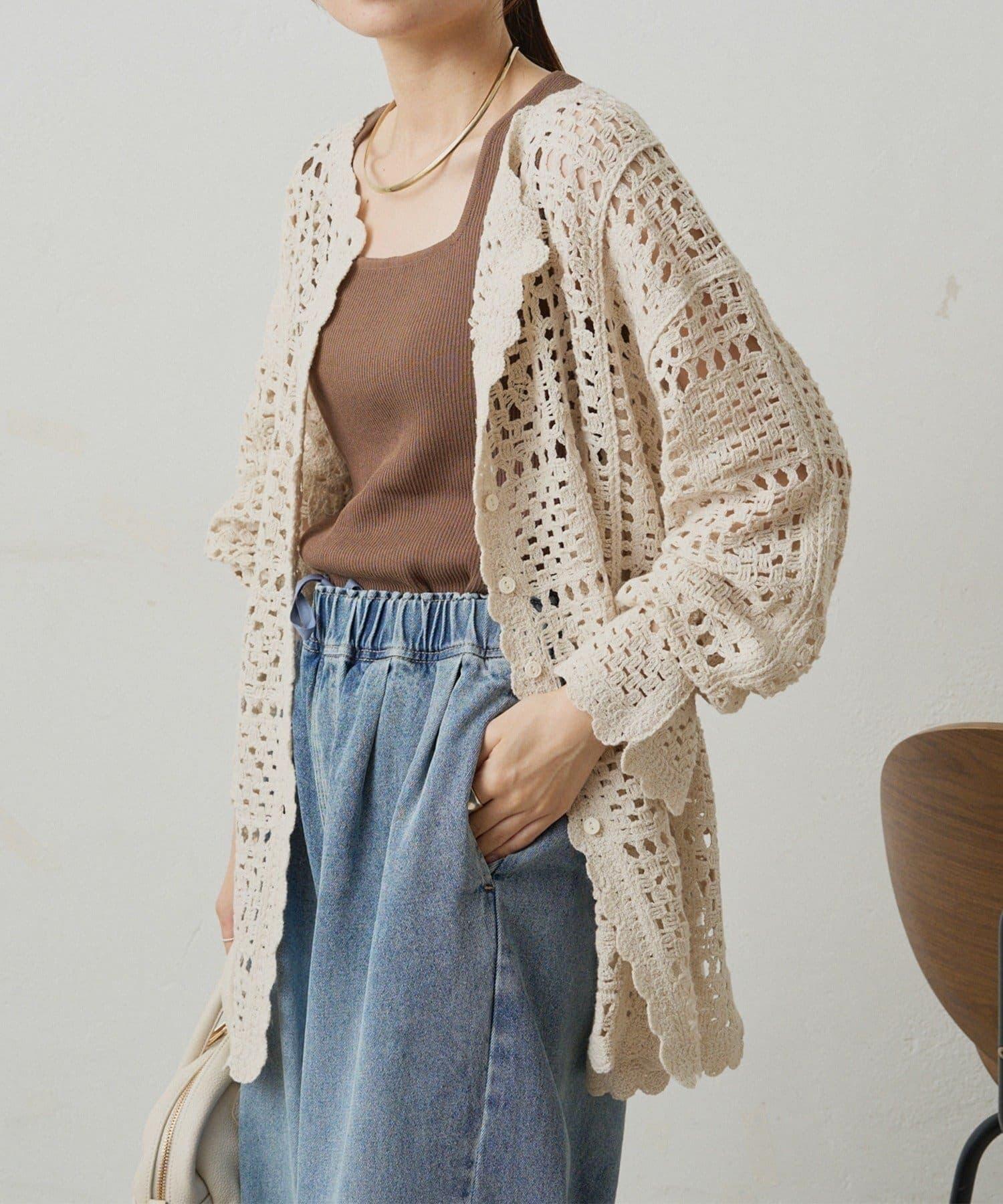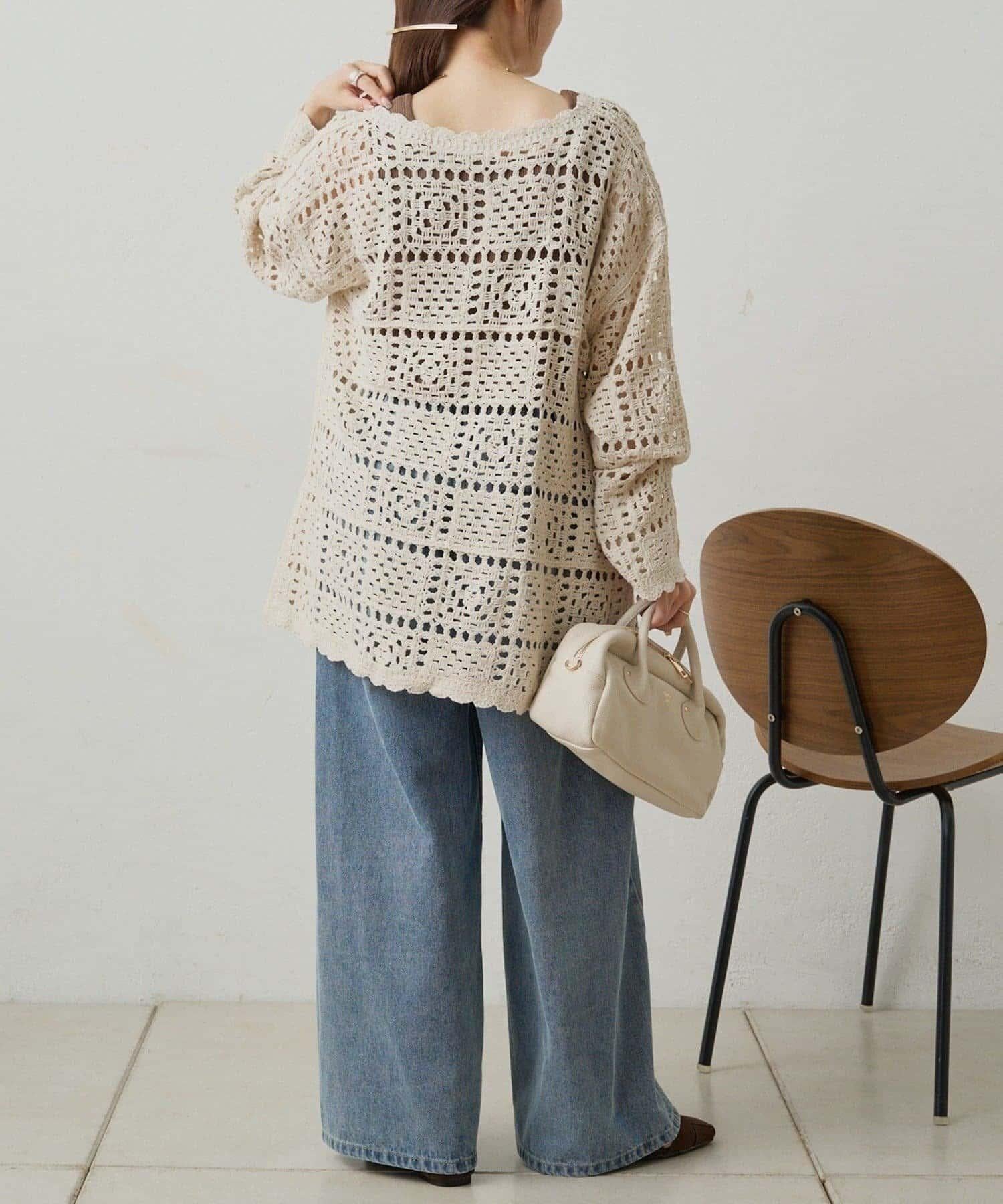 針織物的適度透明感賦予了它自然放鬆的感覺,使其成為一件可以輕鬆穿著的單品。