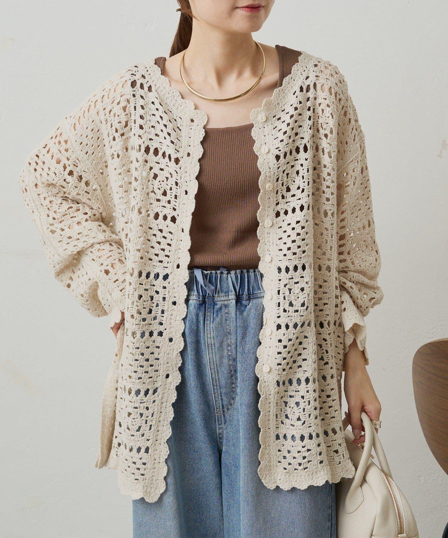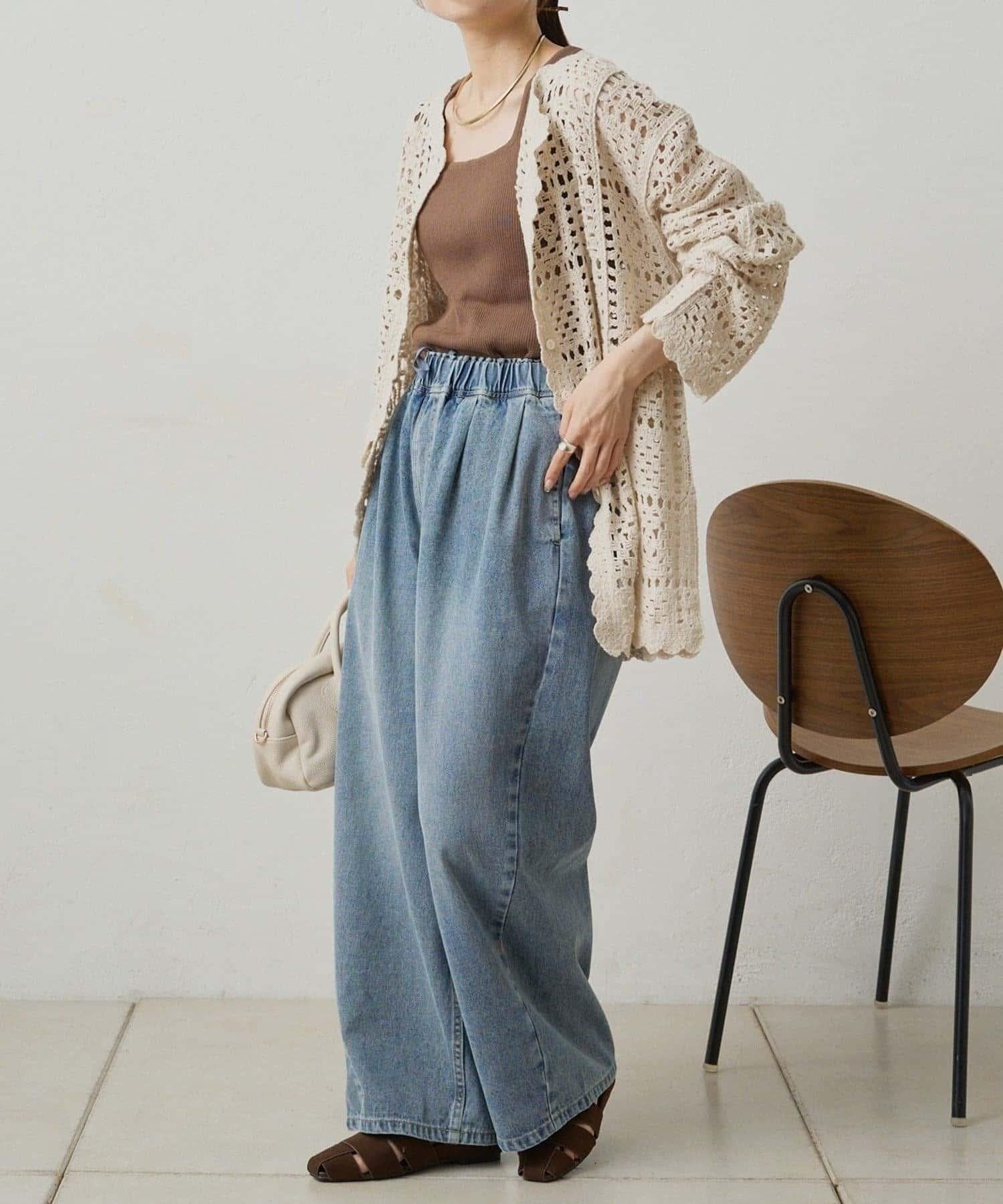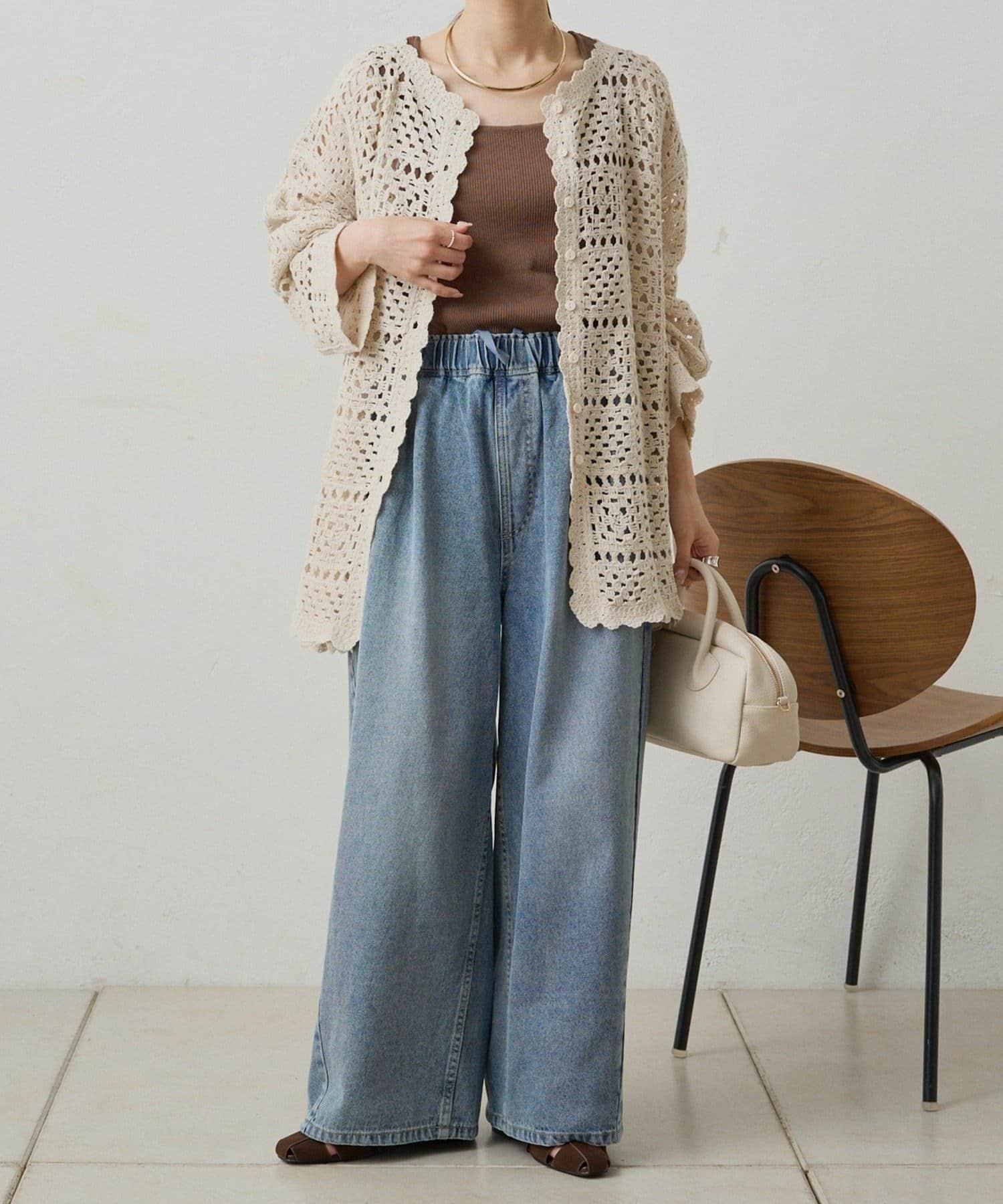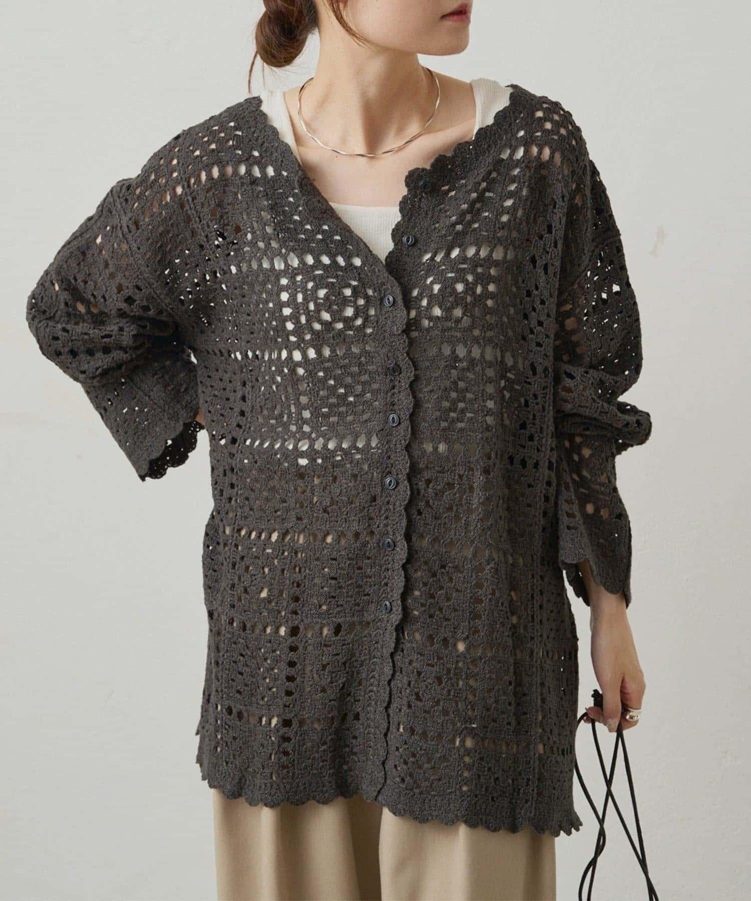 針織物的適度透明感賦予了它自然放鬆的感覺,使其成為一件可以輕鬆穿著的單品。