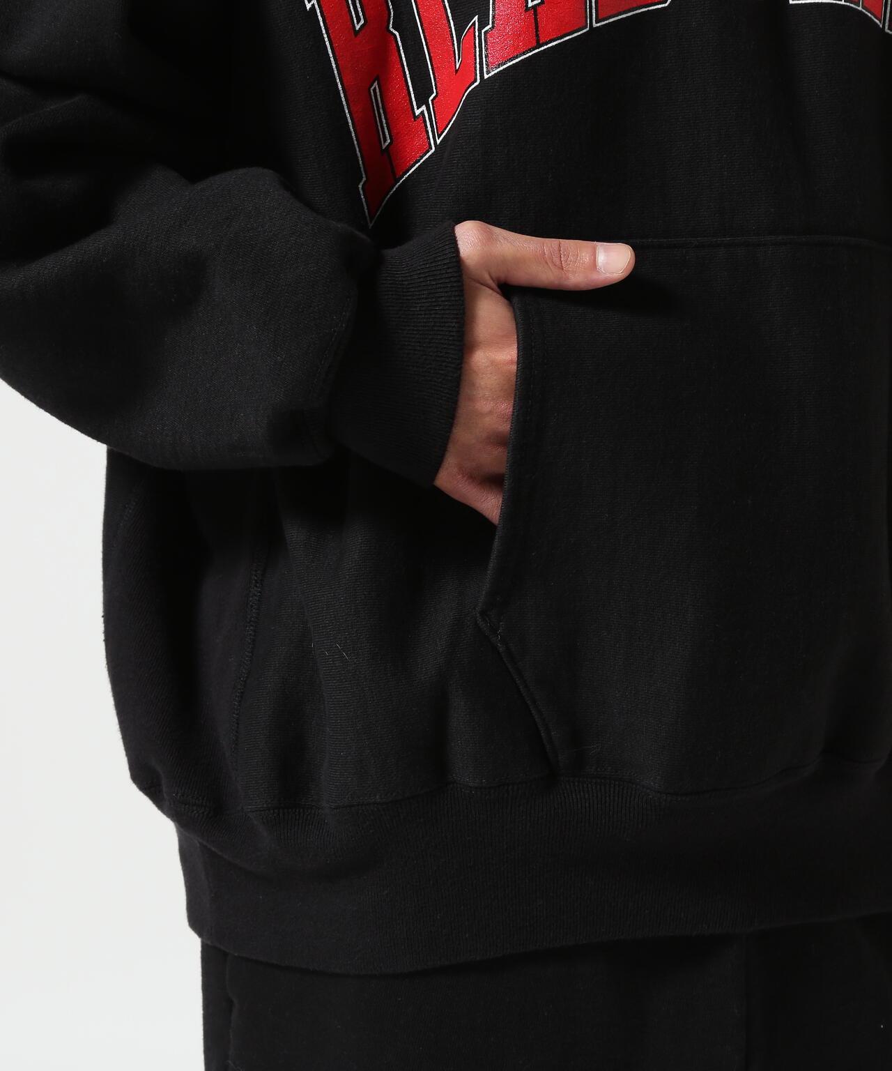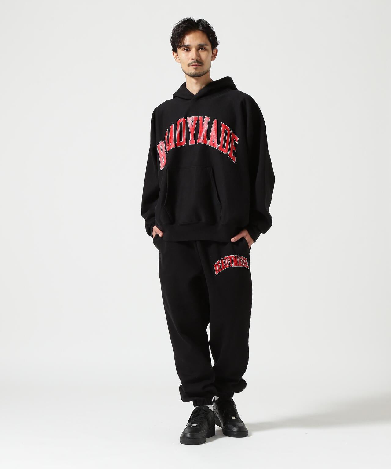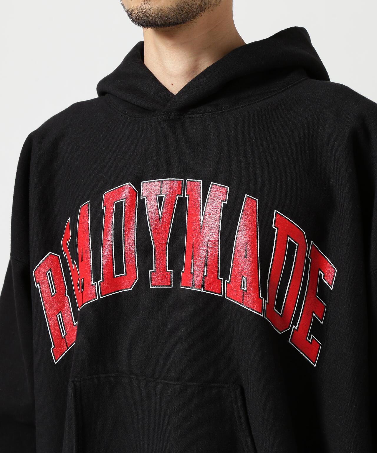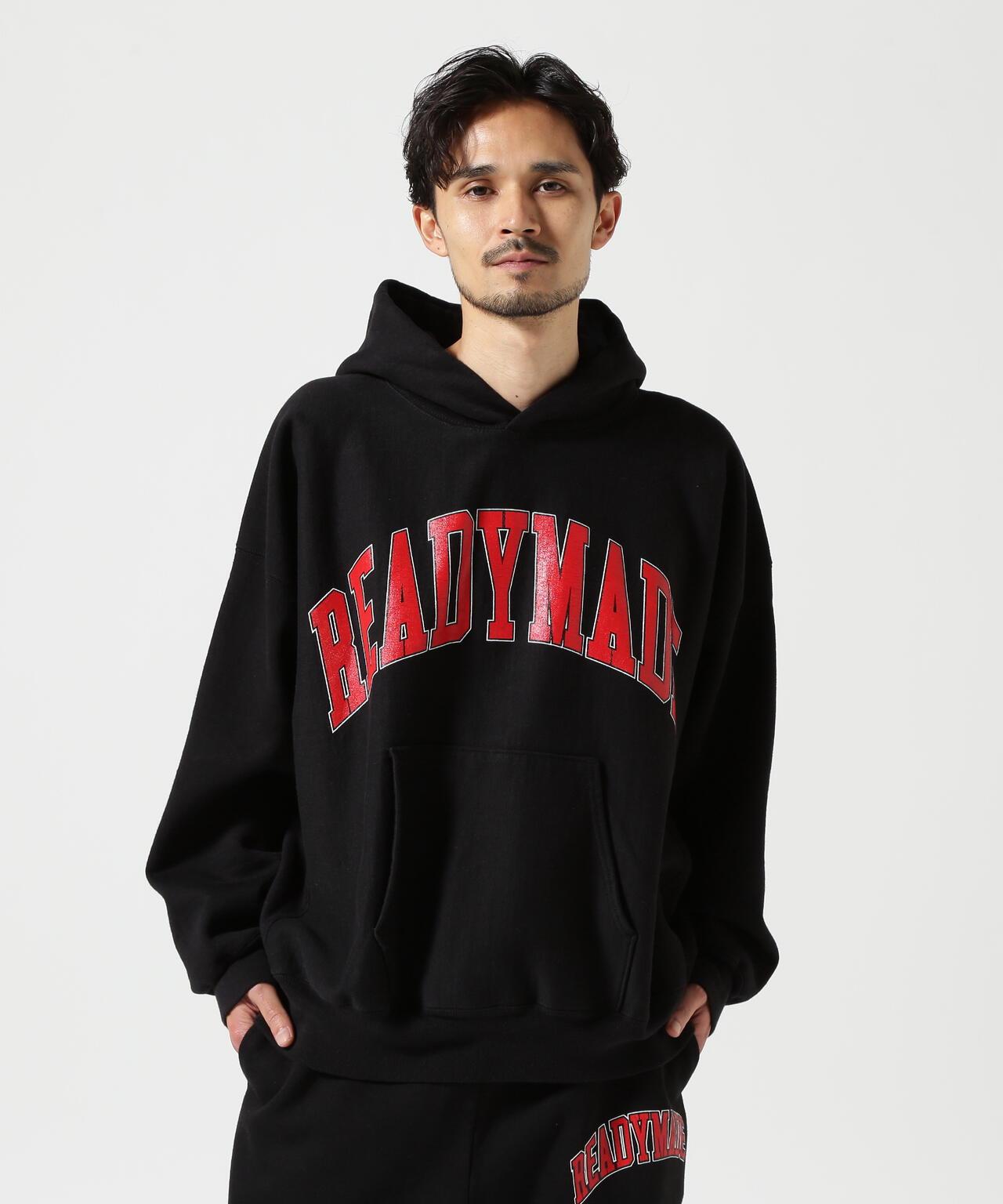 READYMADE/HOODIE ARCH LOGO/BLACK/RE-CO-BK0000286 這款運動衫連帽衫背部隆起。正面的拱形徽標與主體顏色相映成趣。也可與同材質運動褲(貨號:7874910268)搭配穿著。