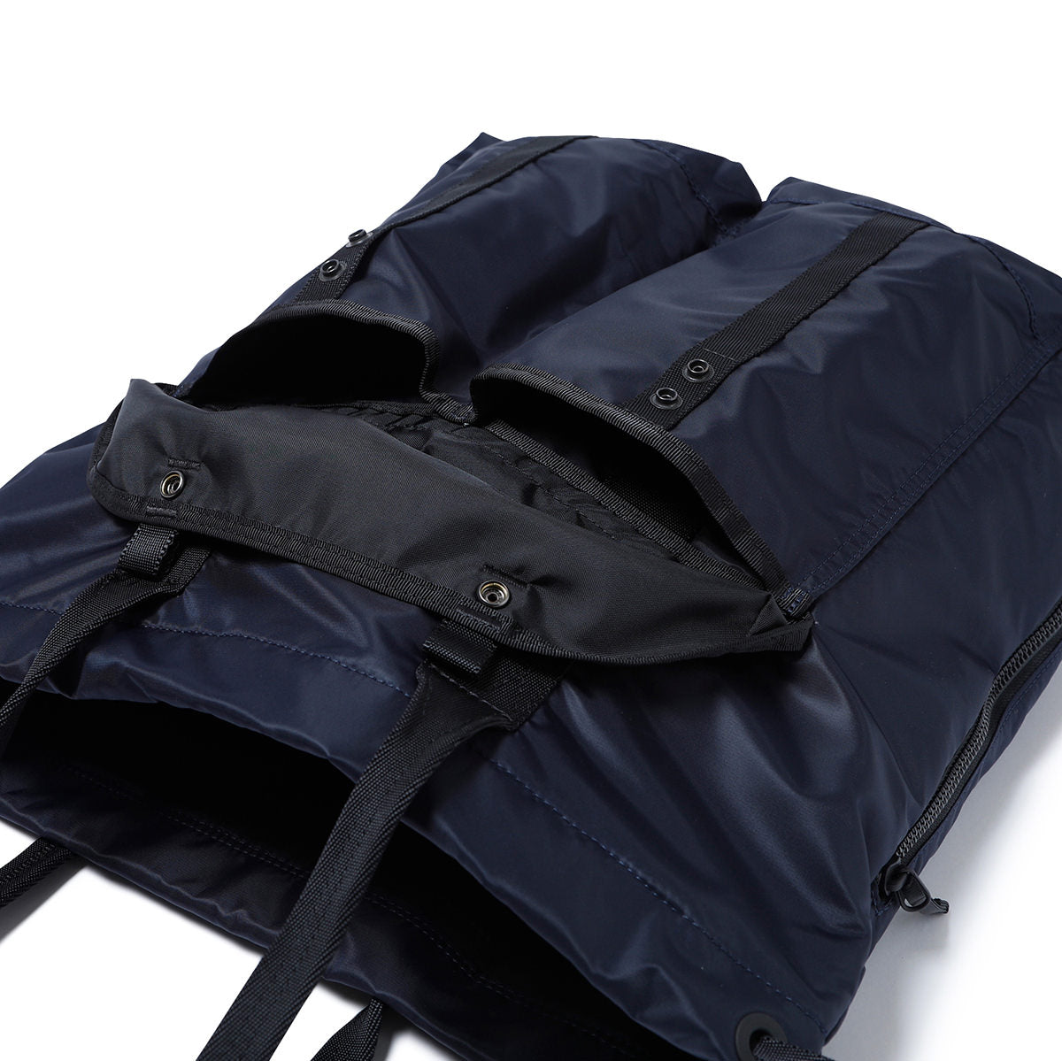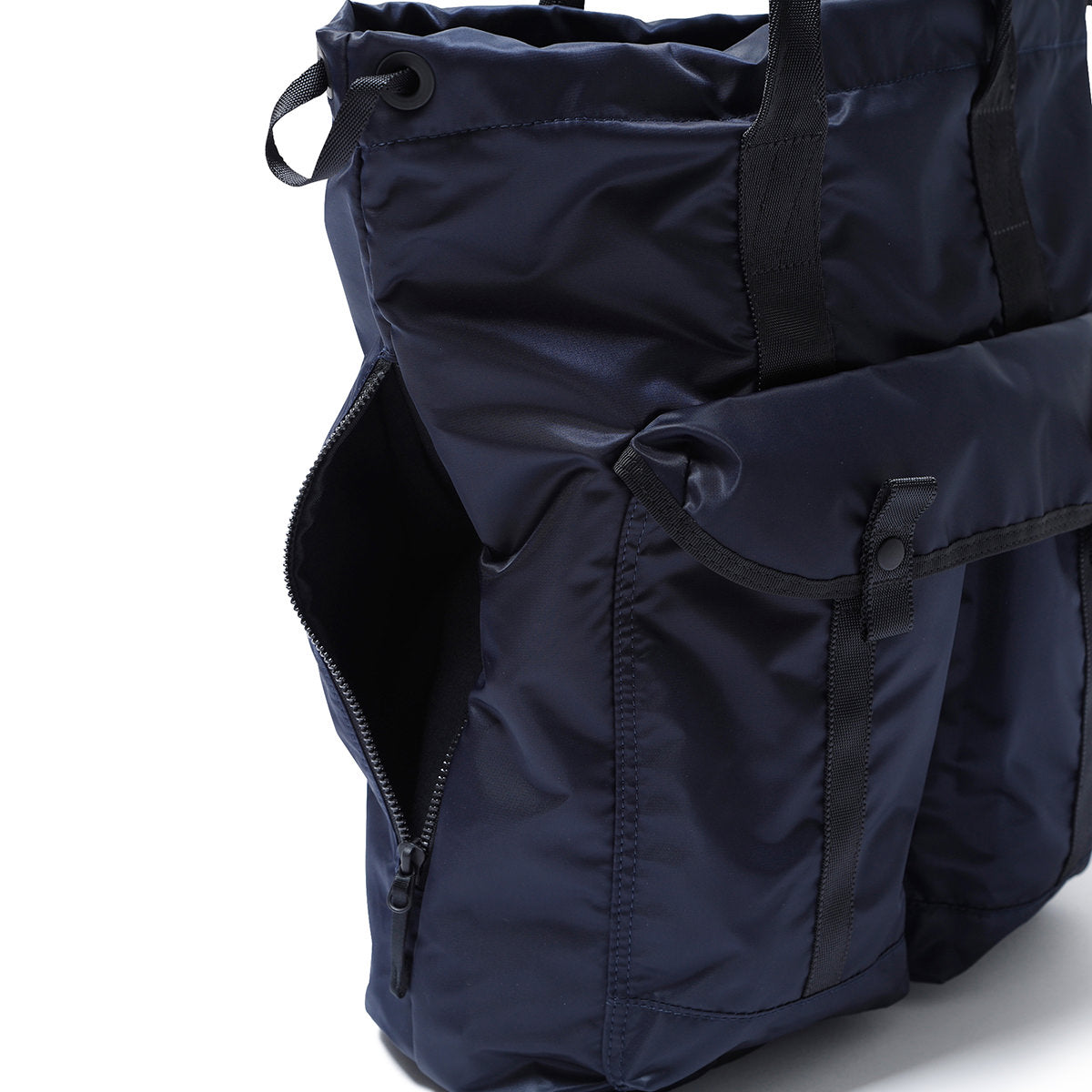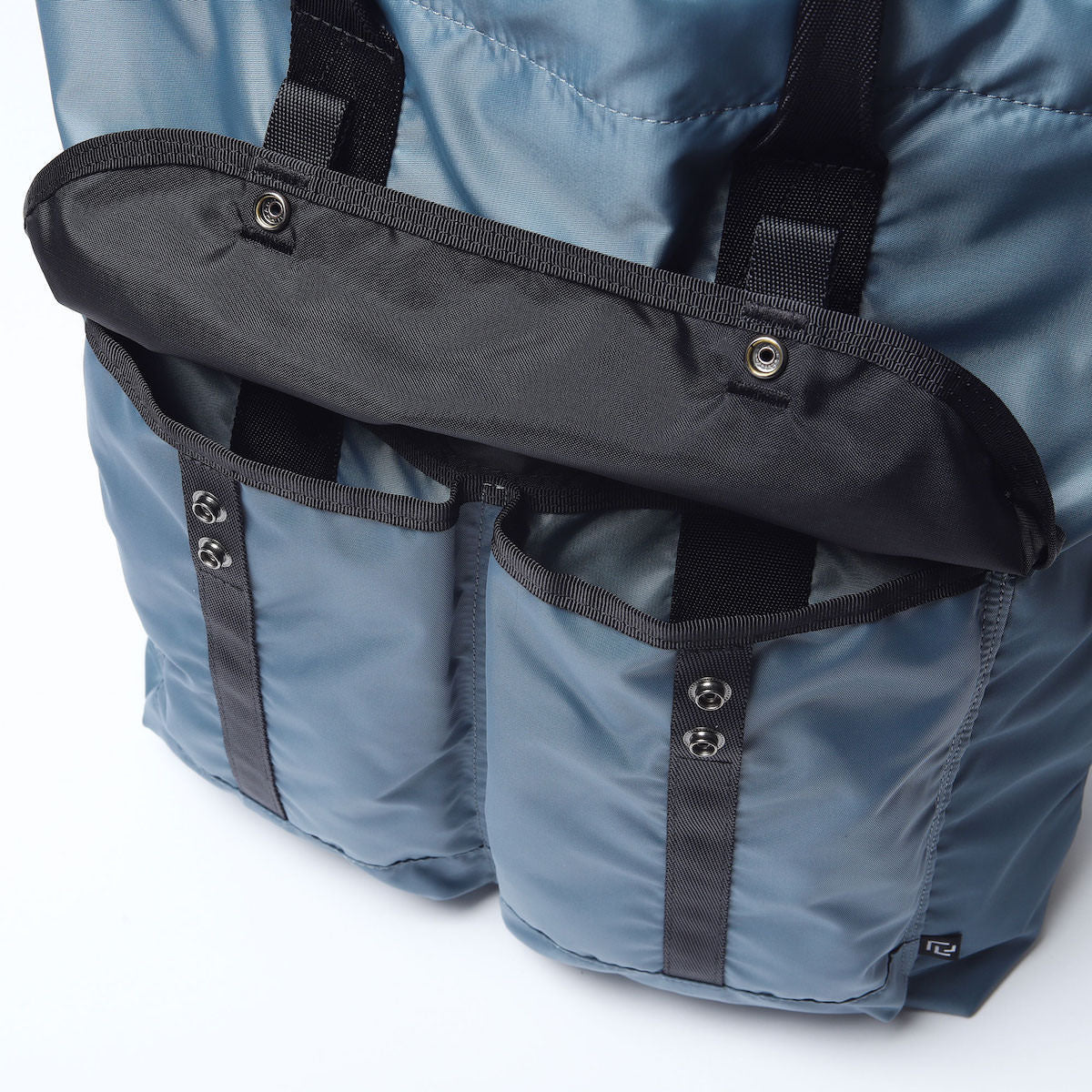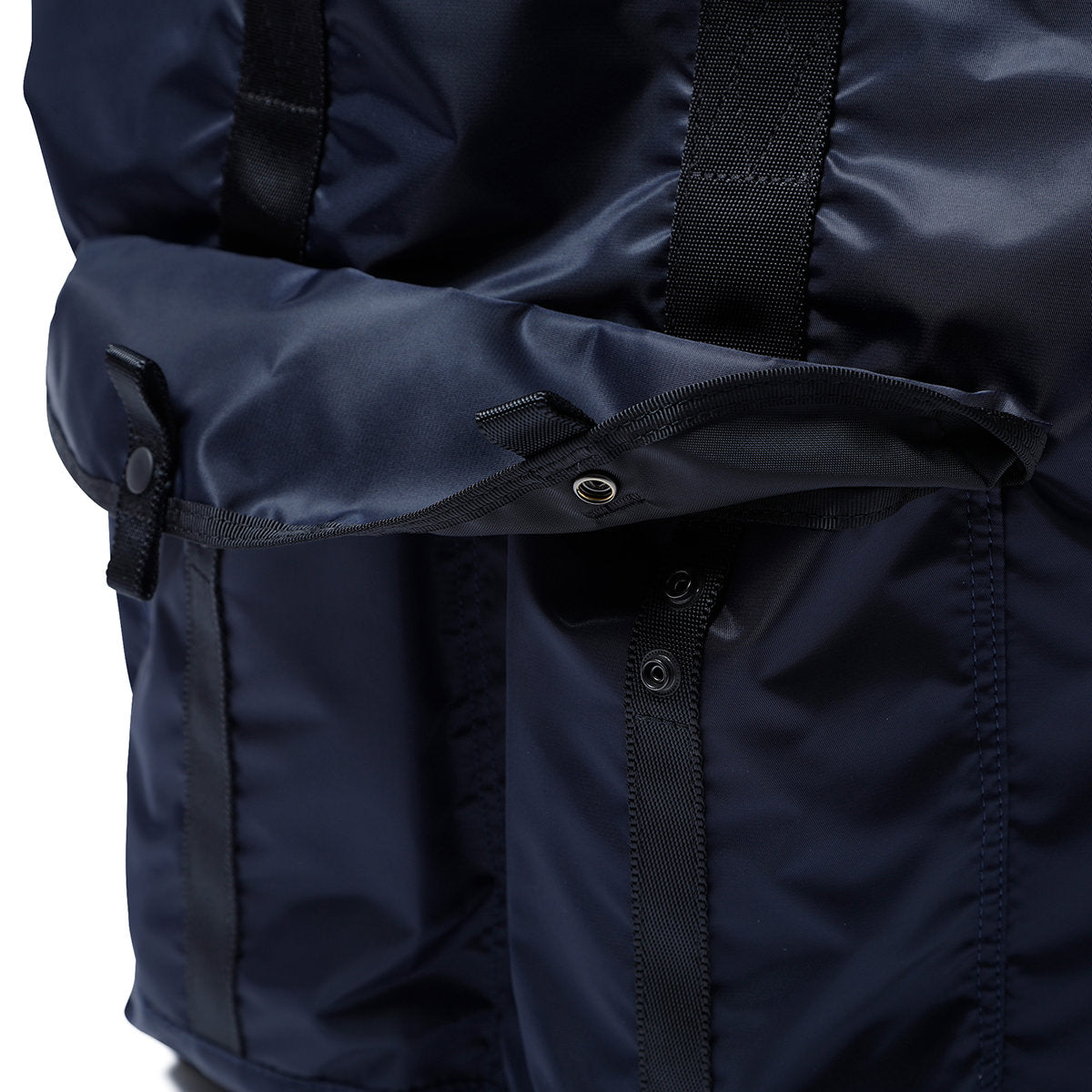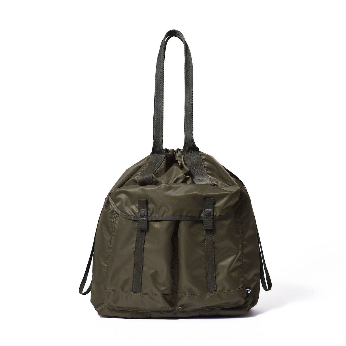 單色調的彩色但富有表現力的手提包。前面的大按扣口袋具有經典的軍事細節設計。口部的帶子聚攏閉合,可以方便地取用你的物品。