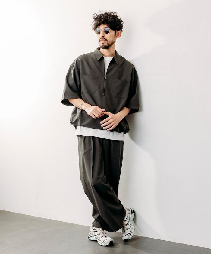 1007248900245: Reflax 功能性面料 寬鬆版型半拉鍊襯衫 短袖