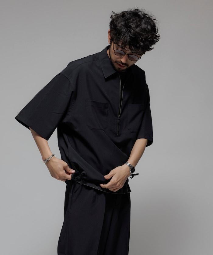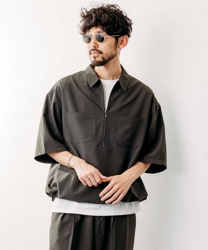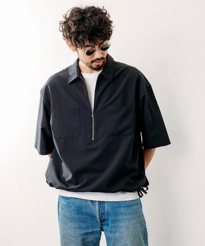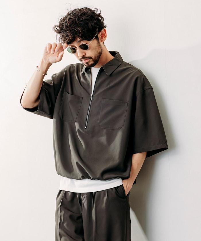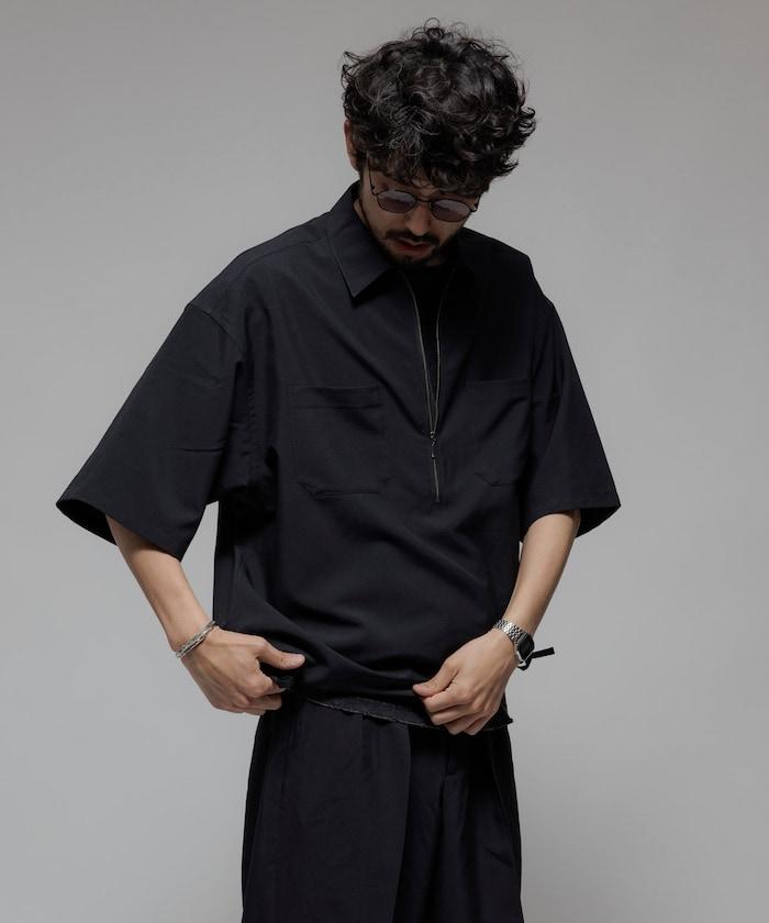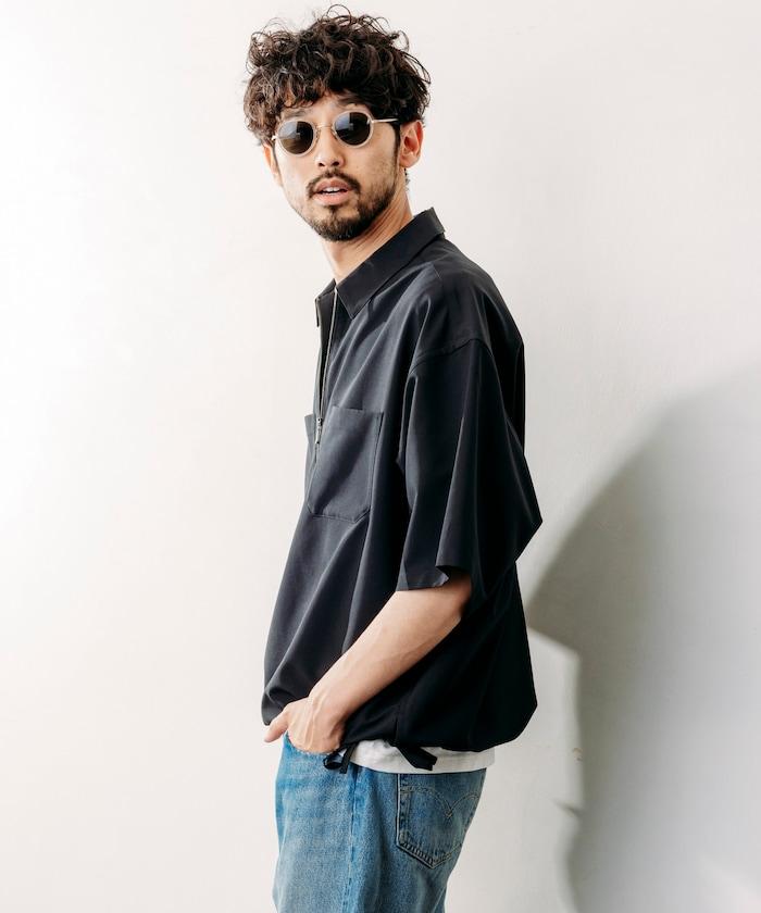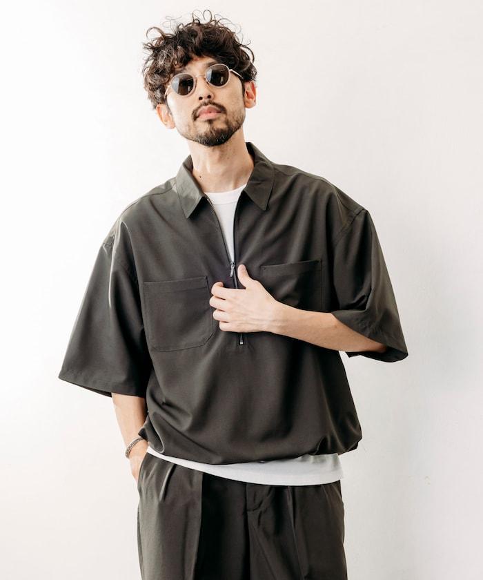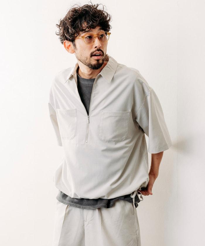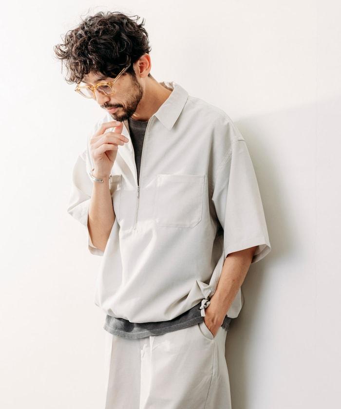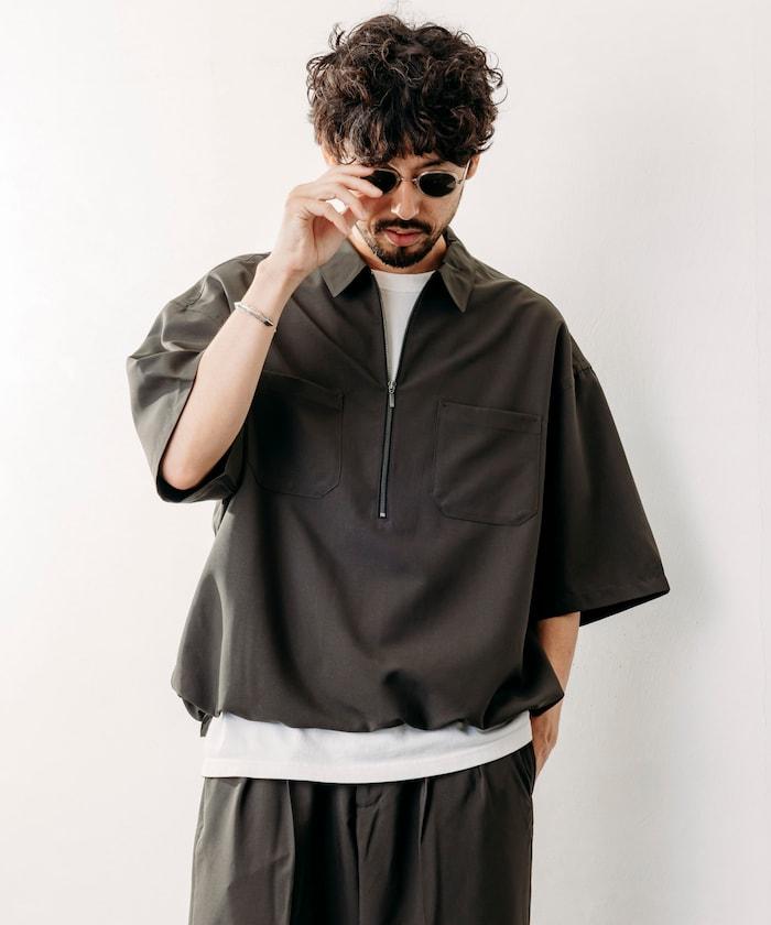寬鬆版型半拉鍊短袖襯衫