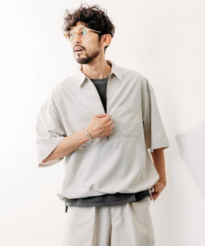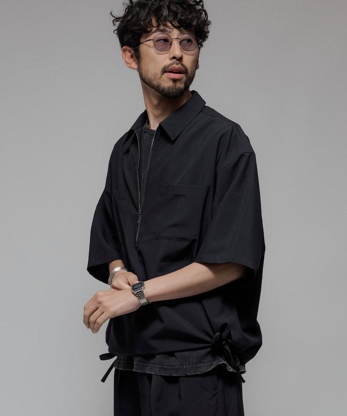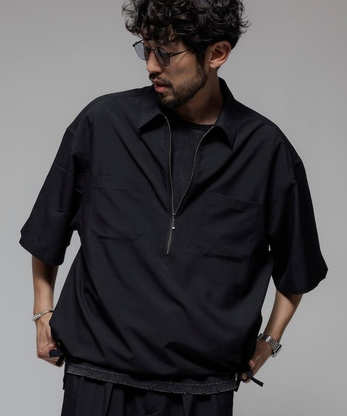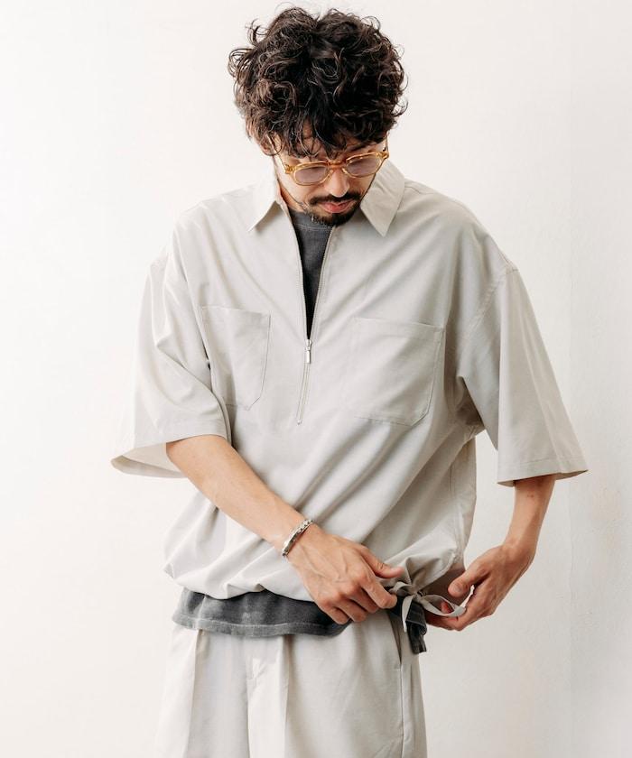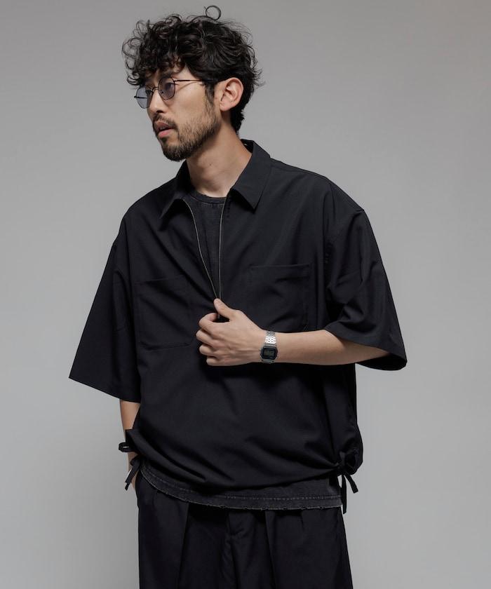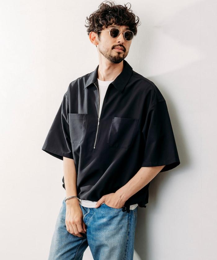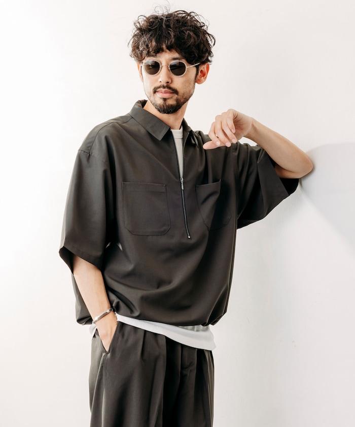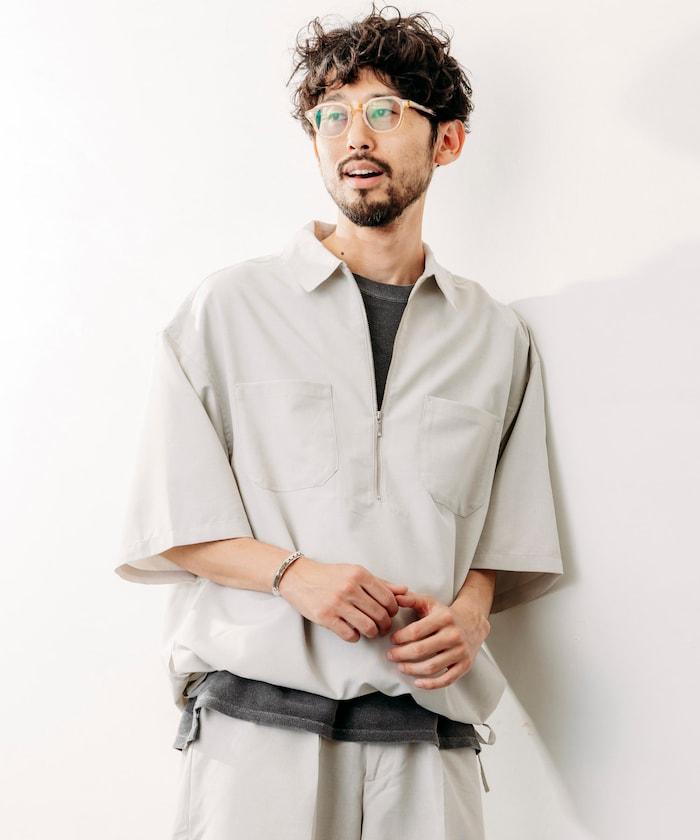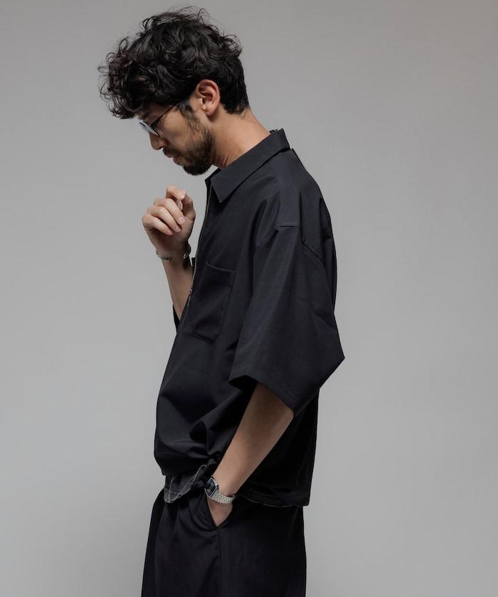 寬鬆版型半拉鍊短袖襯衫