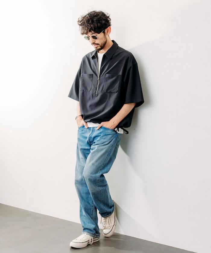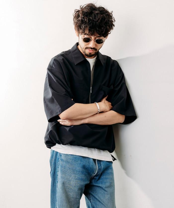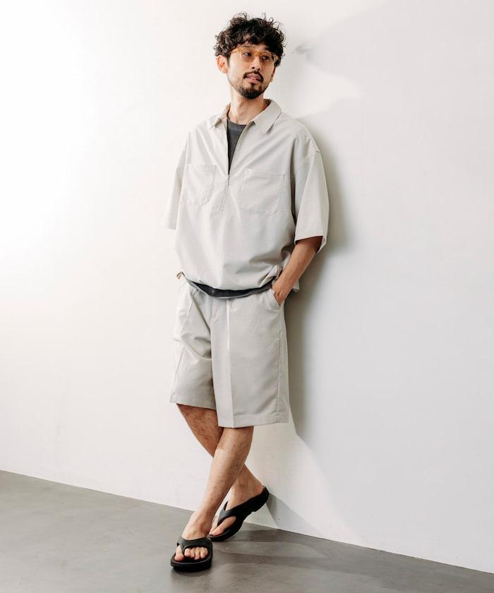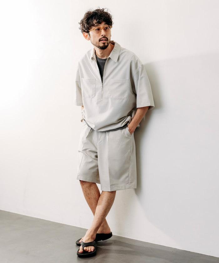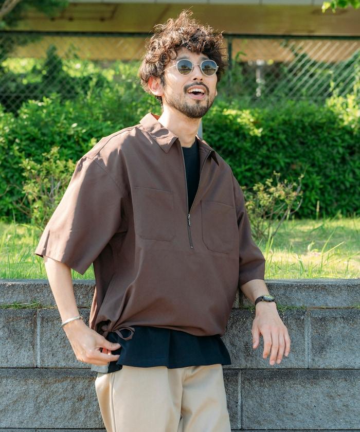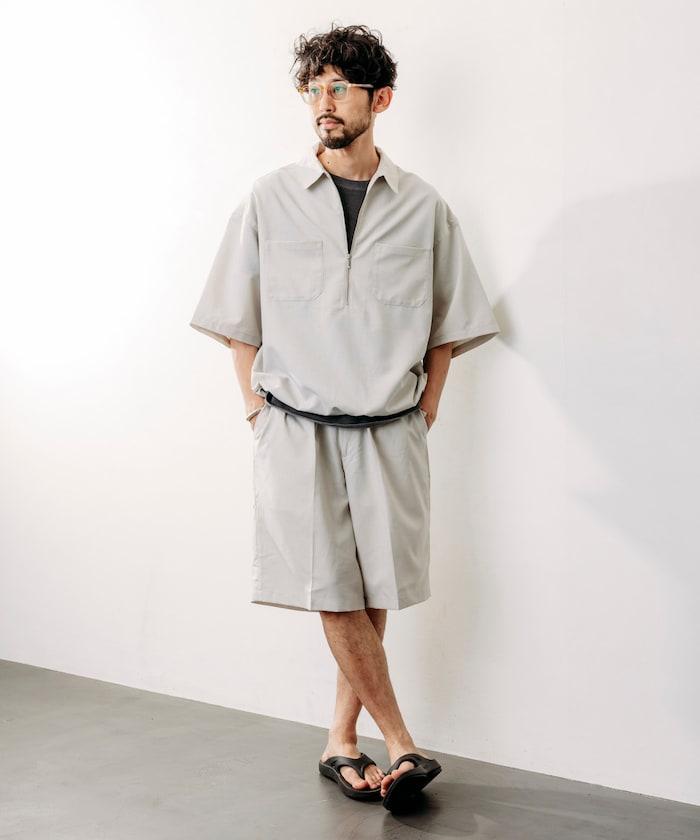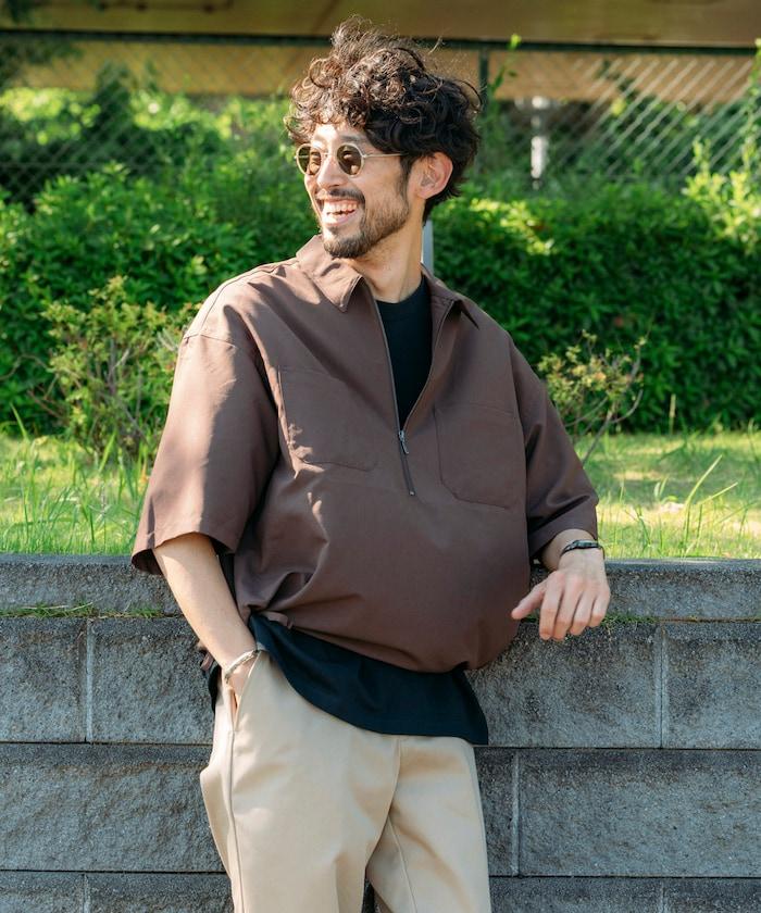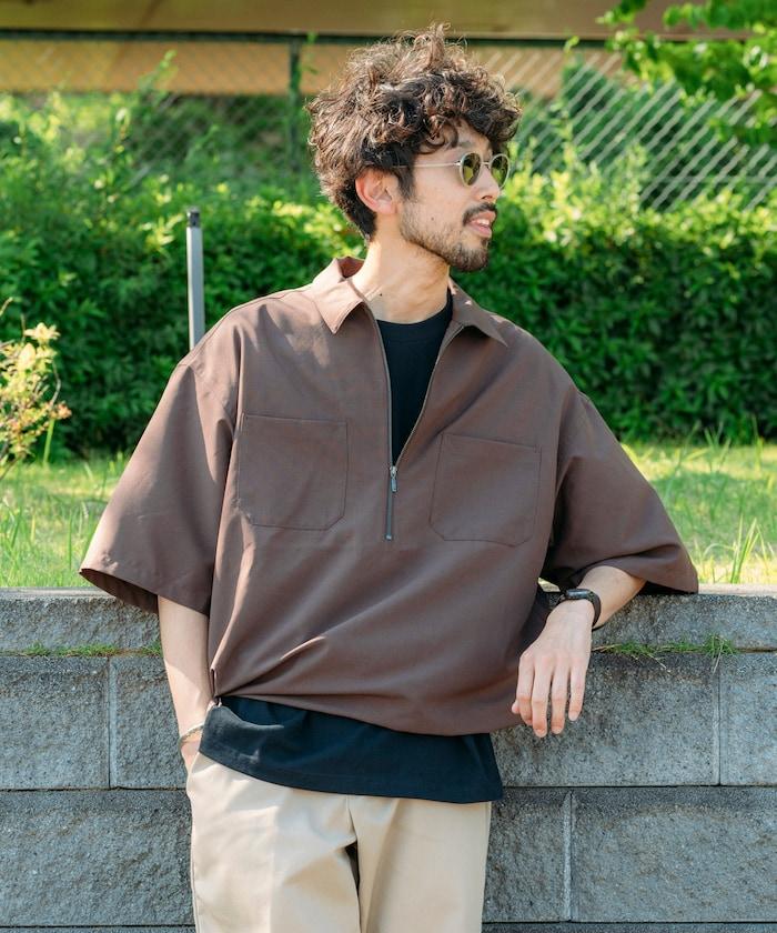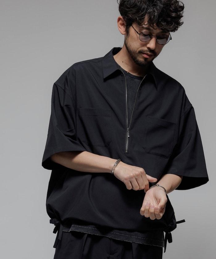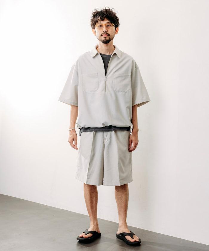 寬鬆版型半拉鍊短袖襯衫
