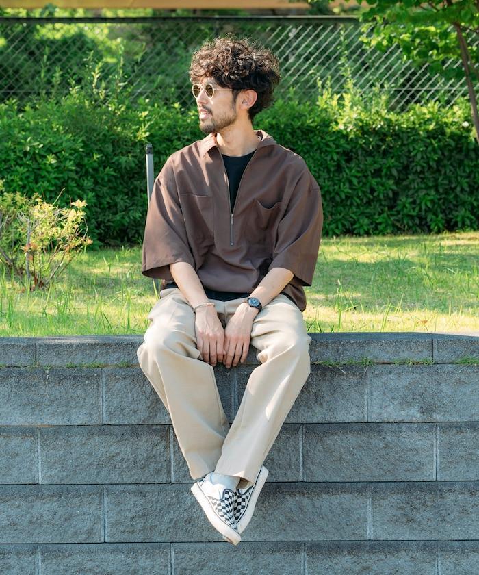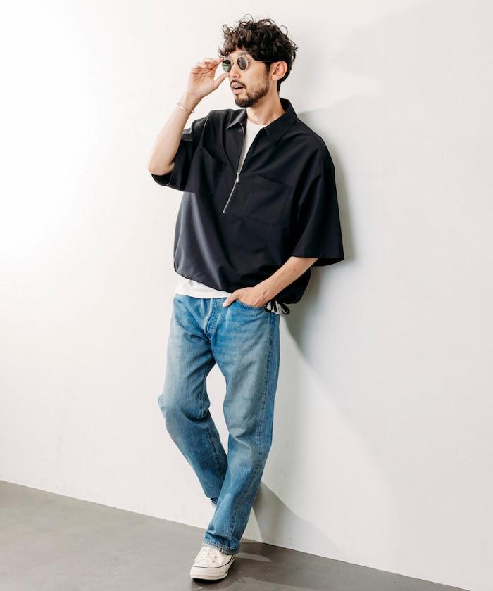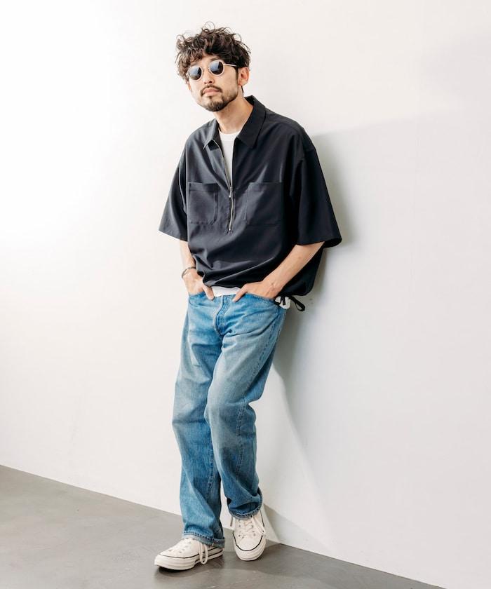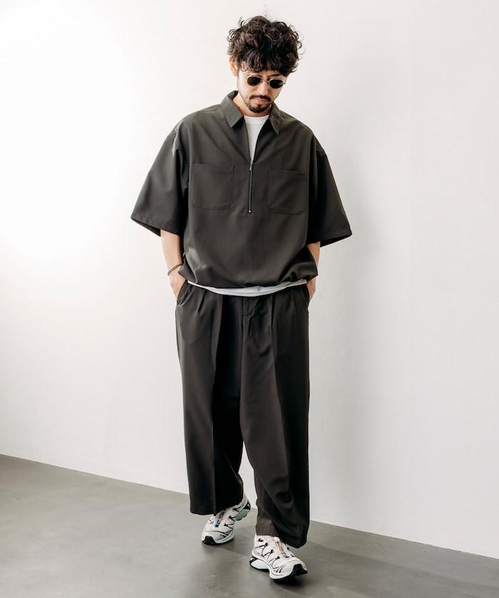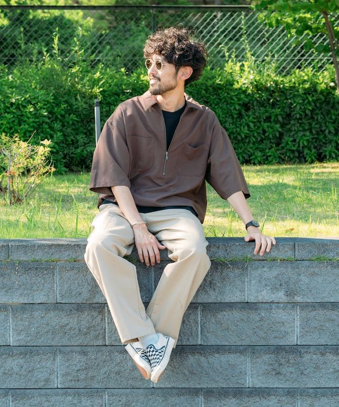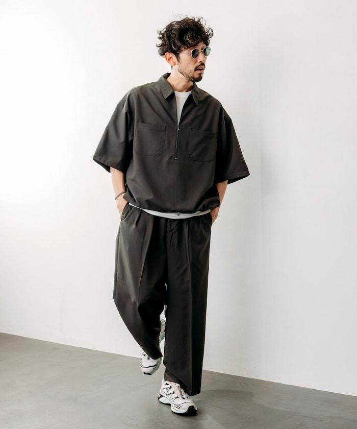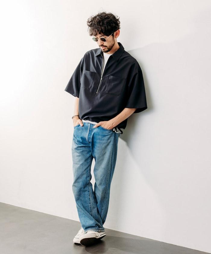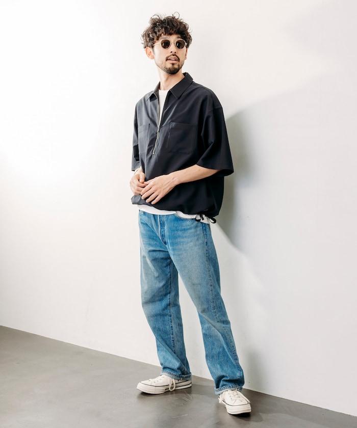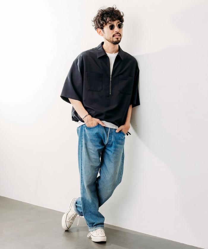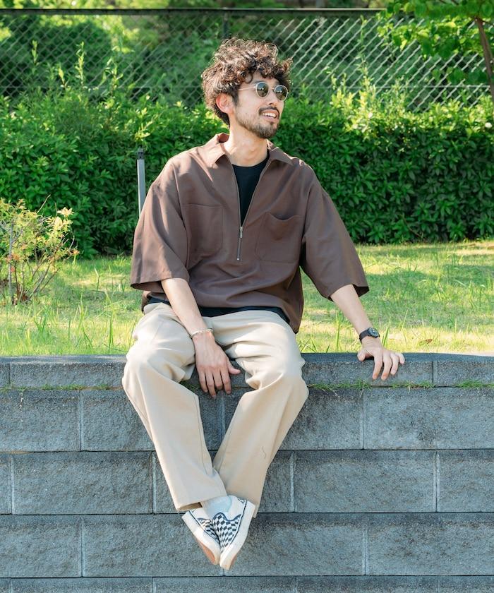 寬鬆版型半拉鍊短袖襯衫