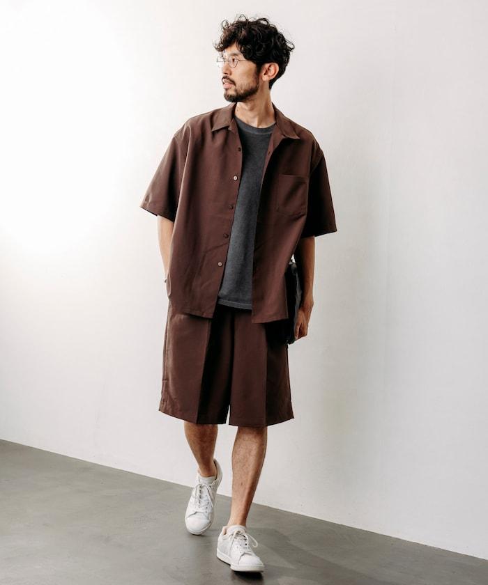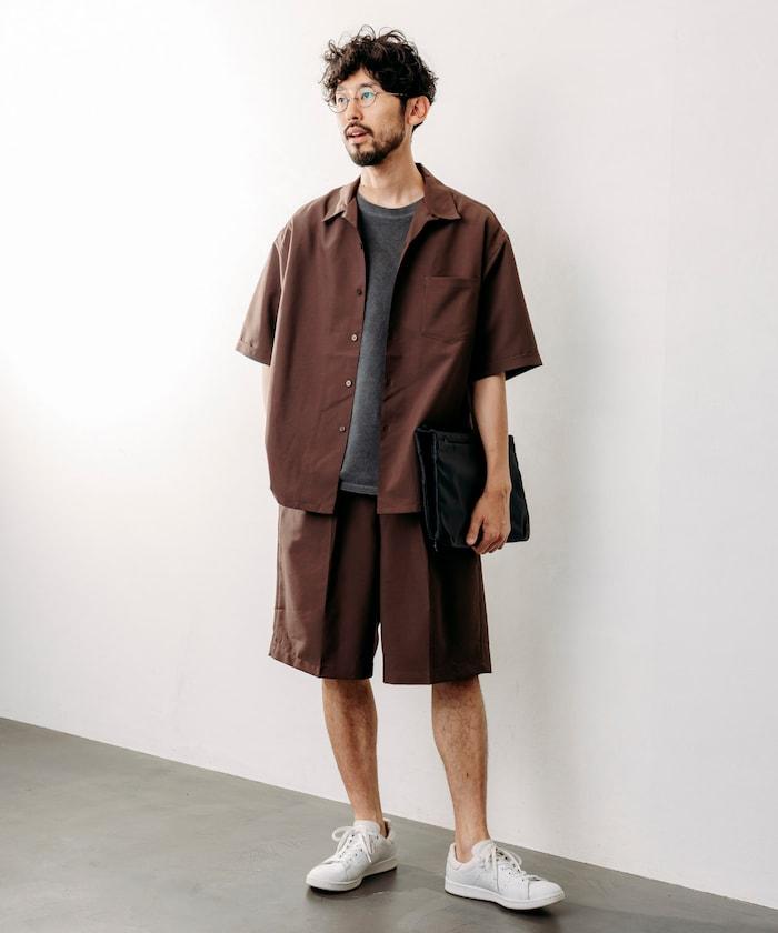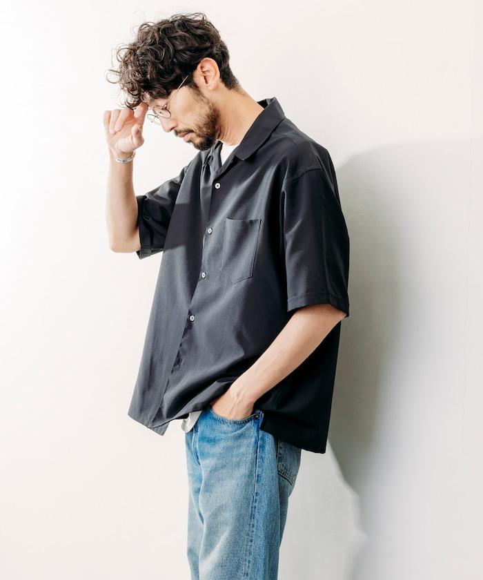 採用 Reflax 面料製成的短袖襯衫,外觀寬鬆,手感乾爽,採用別緻輕薄的滌綸紗製成,具有類似大麻的結節感。