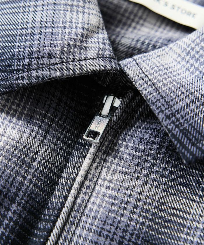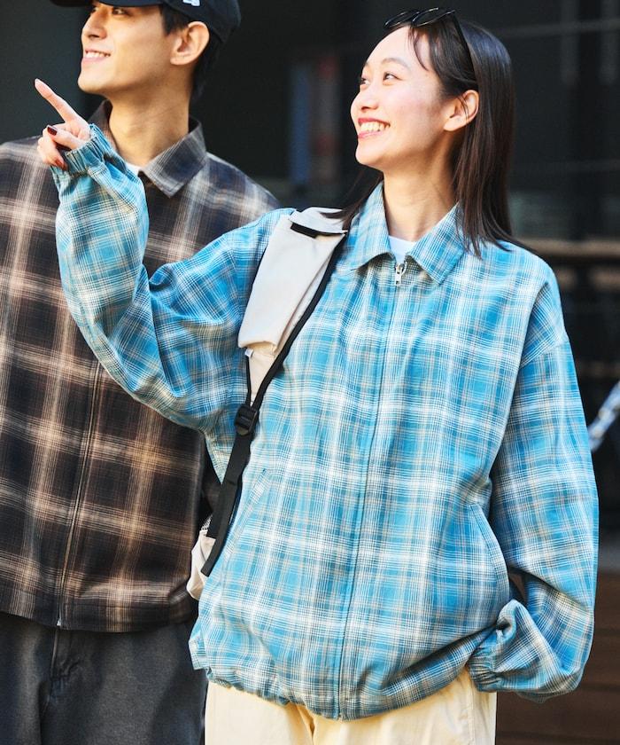 寬鬆版型混色格紋拉鍊襯衫外套