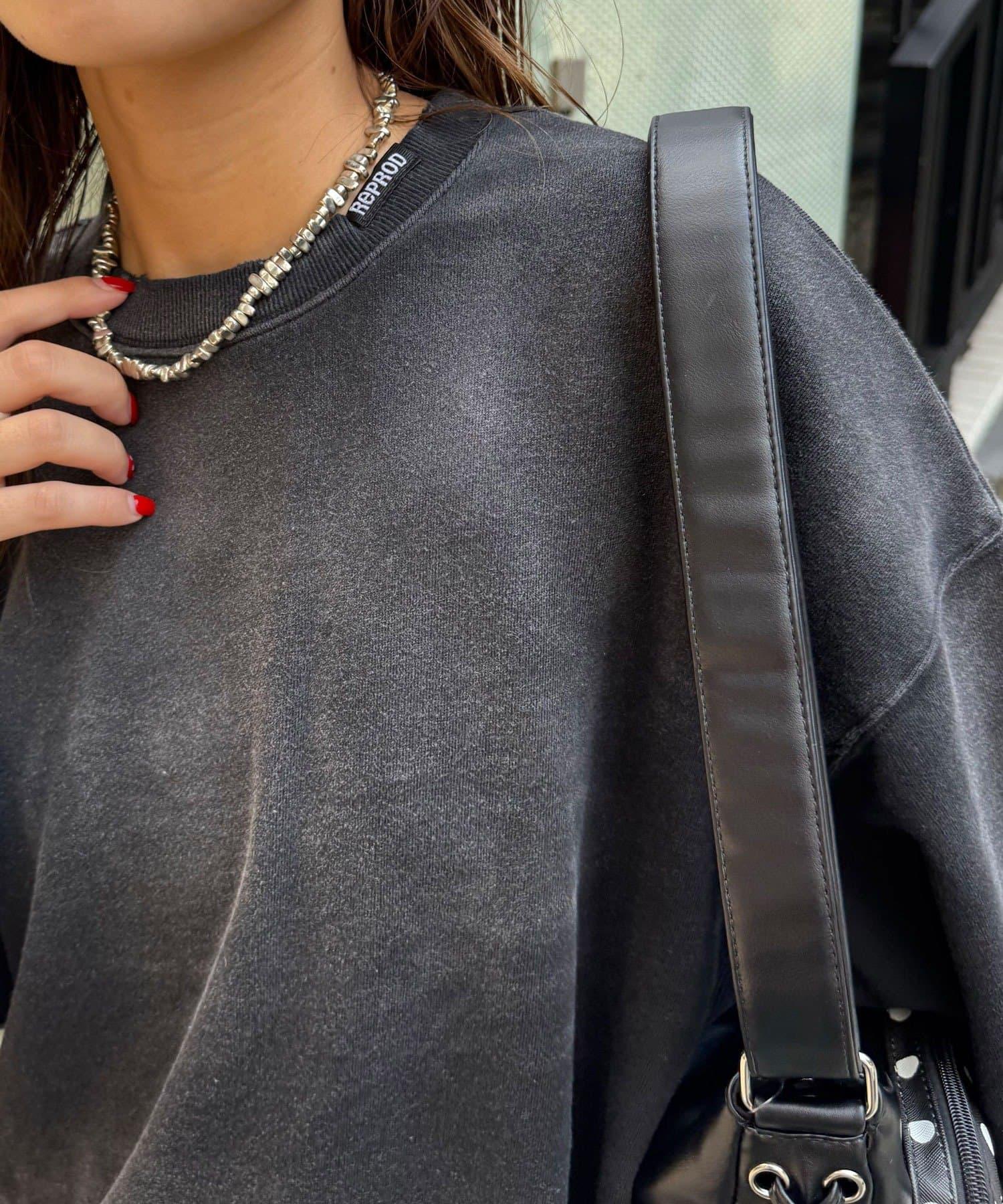 寬鬆感運動衫,頸部有細節設計,極具吸引力