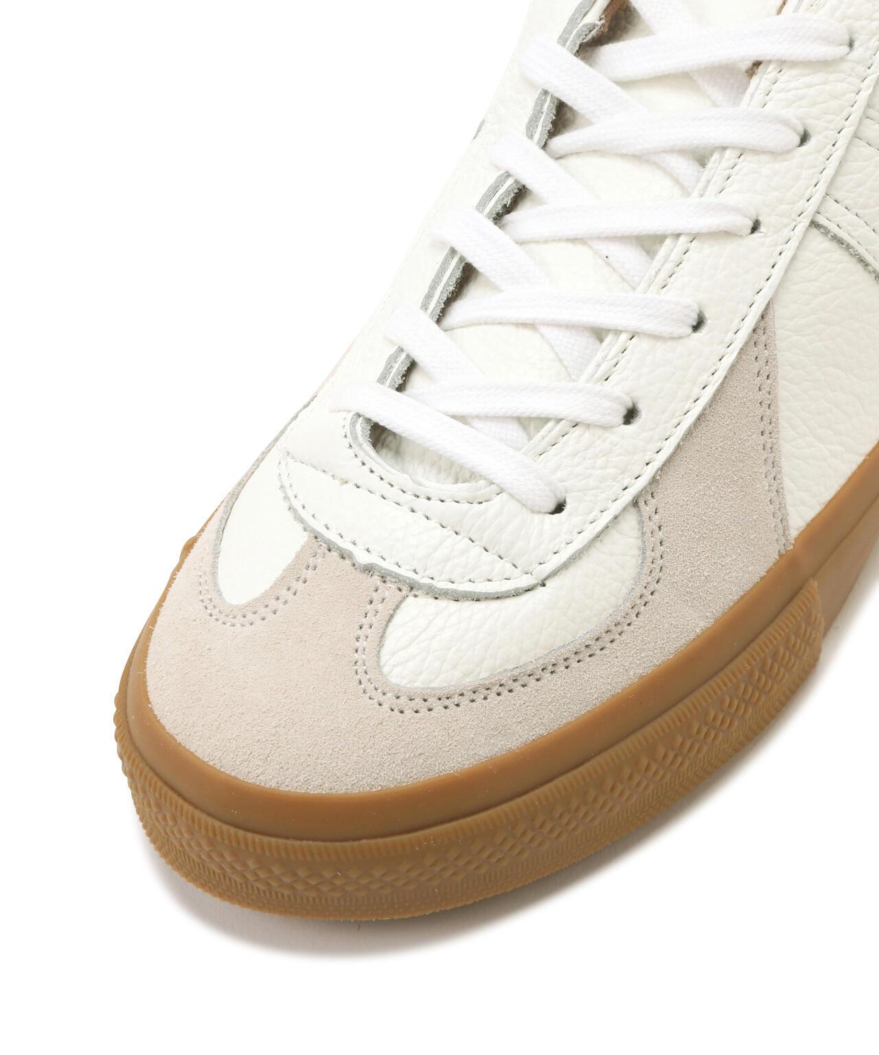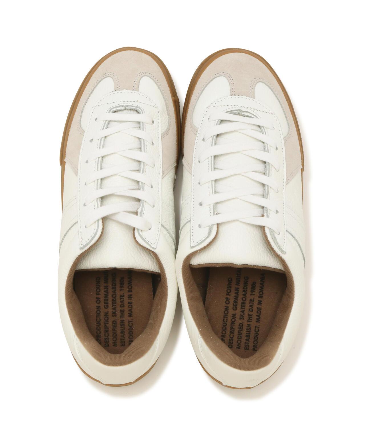 復古運動鞋,在 20 世紀 80 年代被德國軍隊用作訓練鞋,也被稱為經典運動鞋 [German Trainer]。鞋面採用優質意大利收縮皮製成。硫化鞋底和 EVA 內襯柔性橡膠,天然橡膠含量達 95% 以上,可增強抓地力和緩衝性。內襯和鞋墊採用尼龍-聚酯混紡高性能織物 "Dryvest",抗菌/透氣/吸溼/快乾/耐用。鞋舌和鞋口的厚襯墊提高了這款滑板鞋的固定性和性能。複製