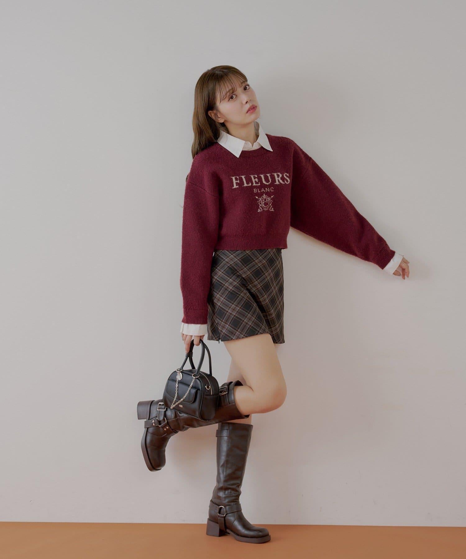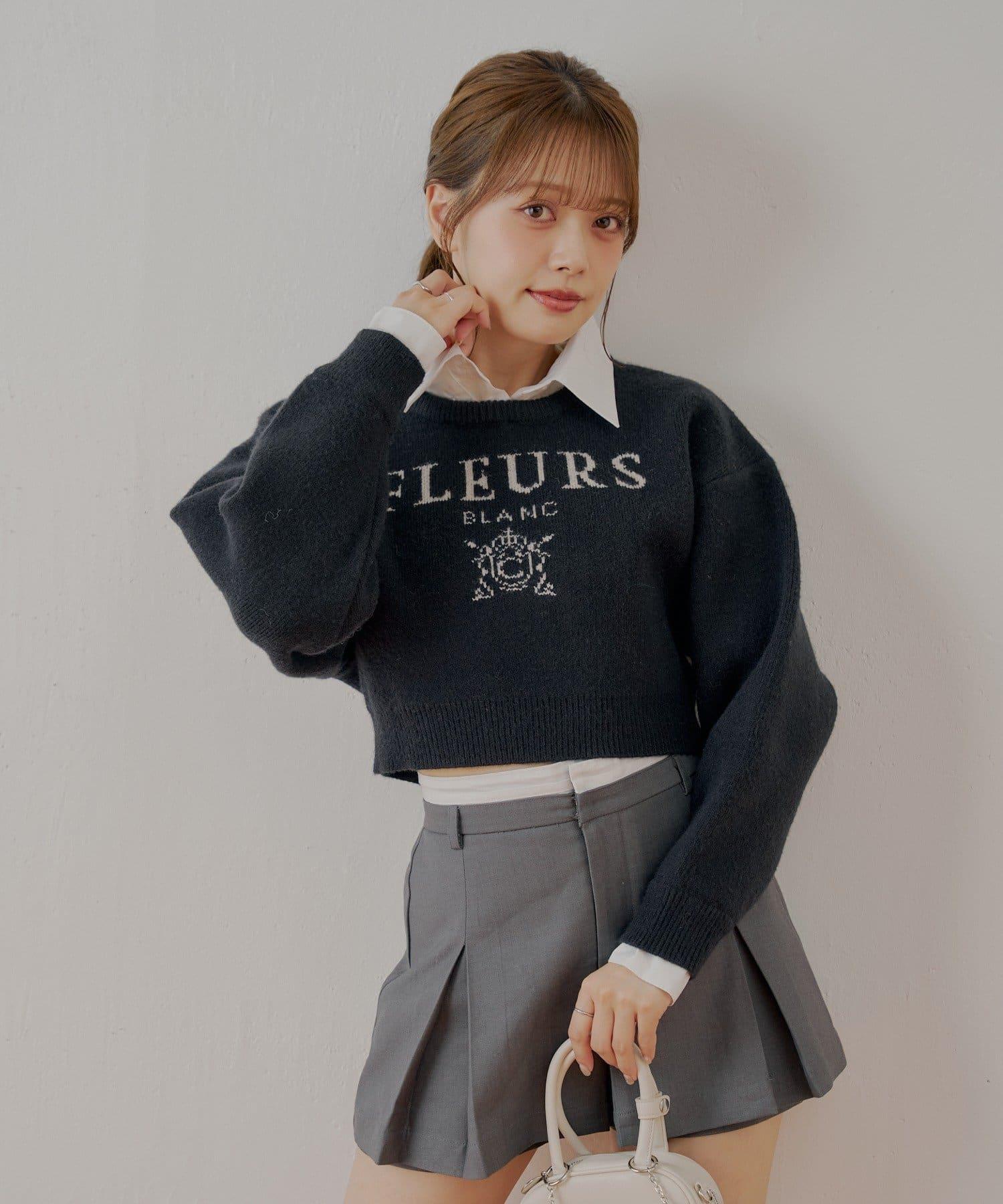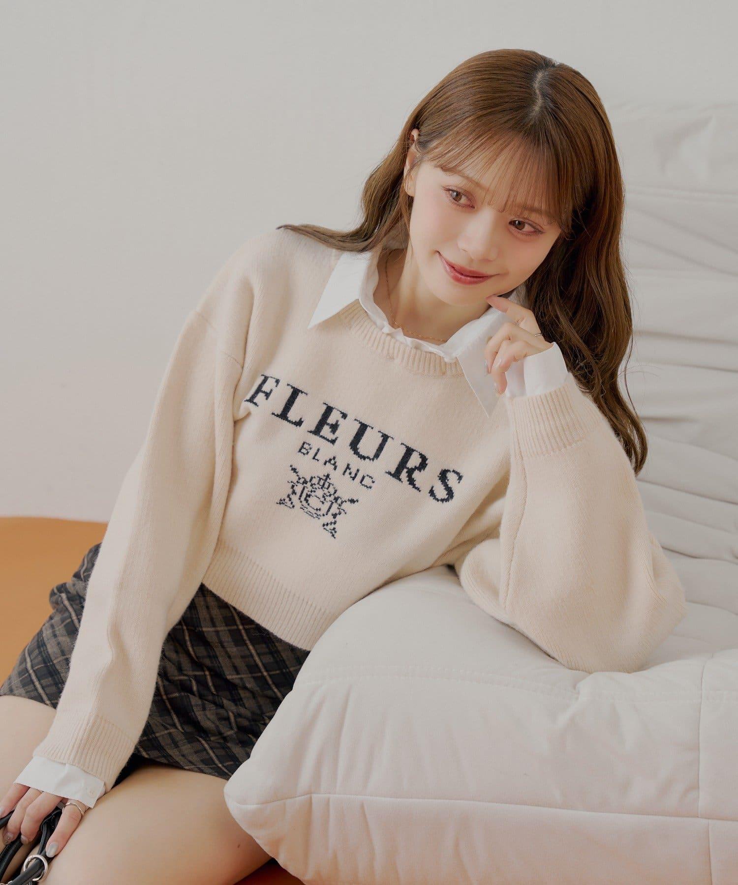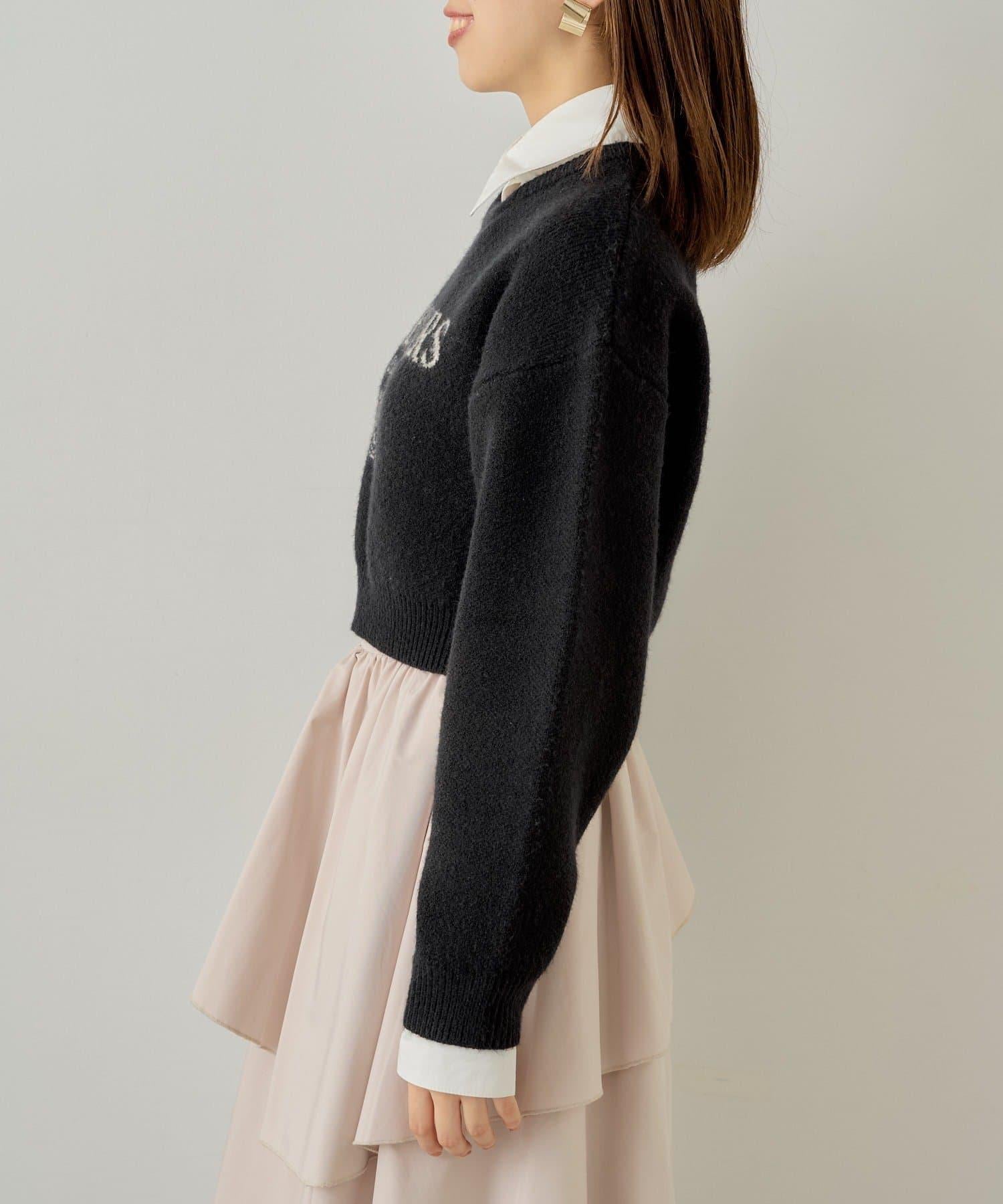 【REVIVAL/】可拆卸領口Logo提花短款針織衫