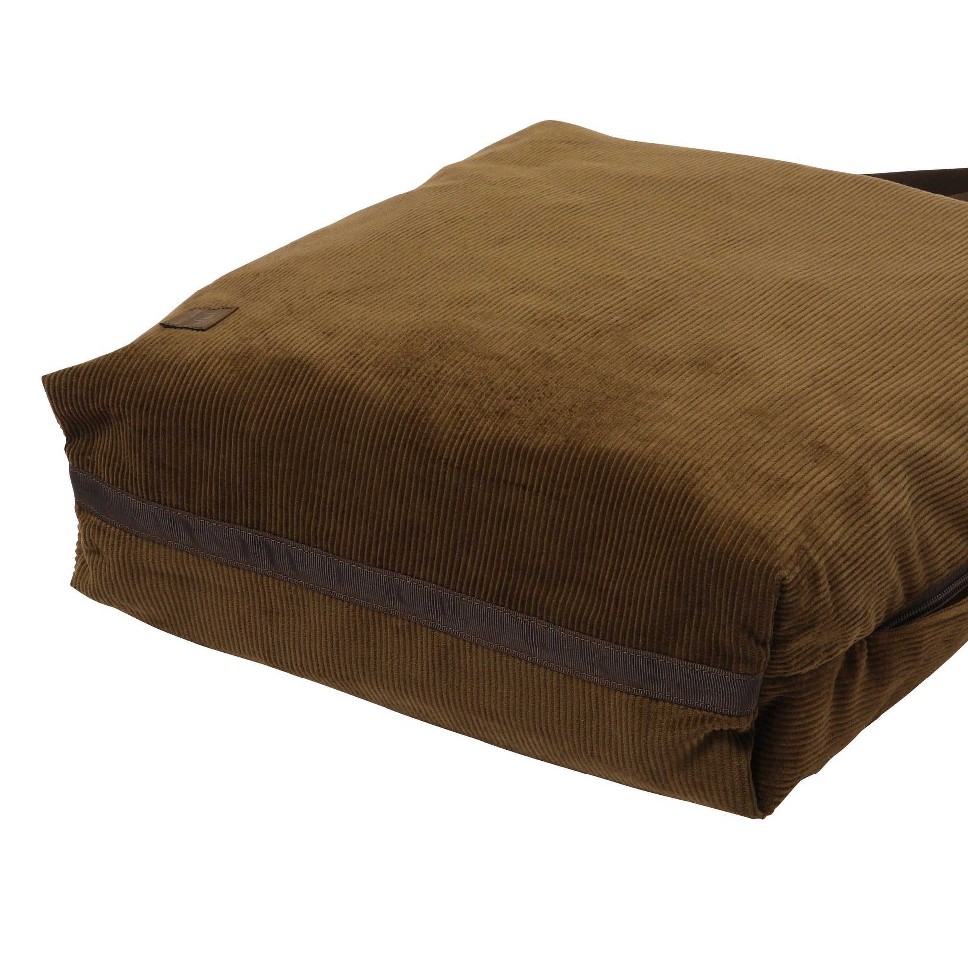 雙肩包由有機棉燈芯絨編織而成。主拉鍊採用 YKK 對稱拉鍊,非常順滑,即使單手也能輕鬆開合。包身選用金屬部件,消除了圓潤的輪廓,使包包看起來更加前衛。L 尺寸可容納 13 英寸電腦,放東西時包身可自然向下彎曲。特點