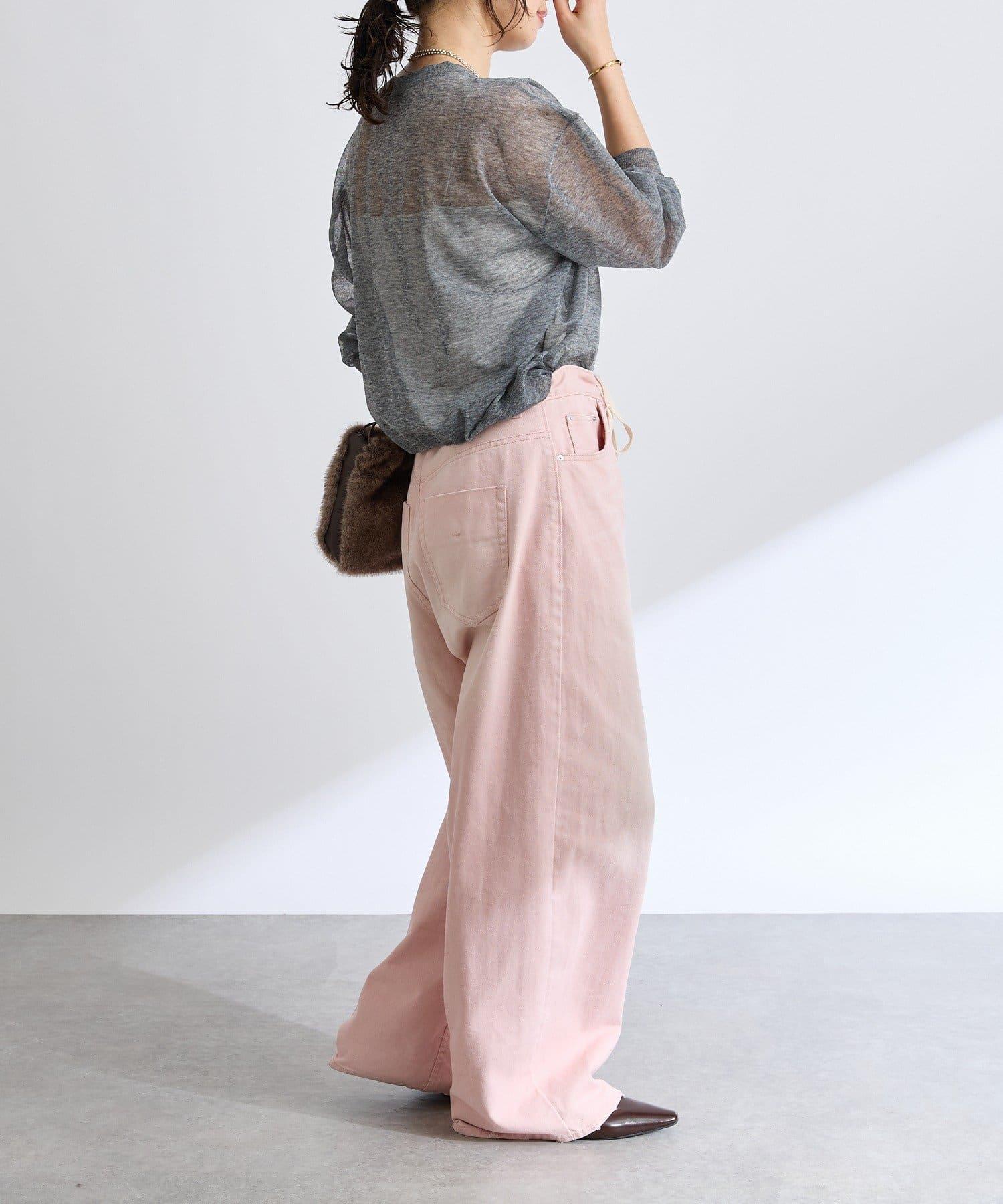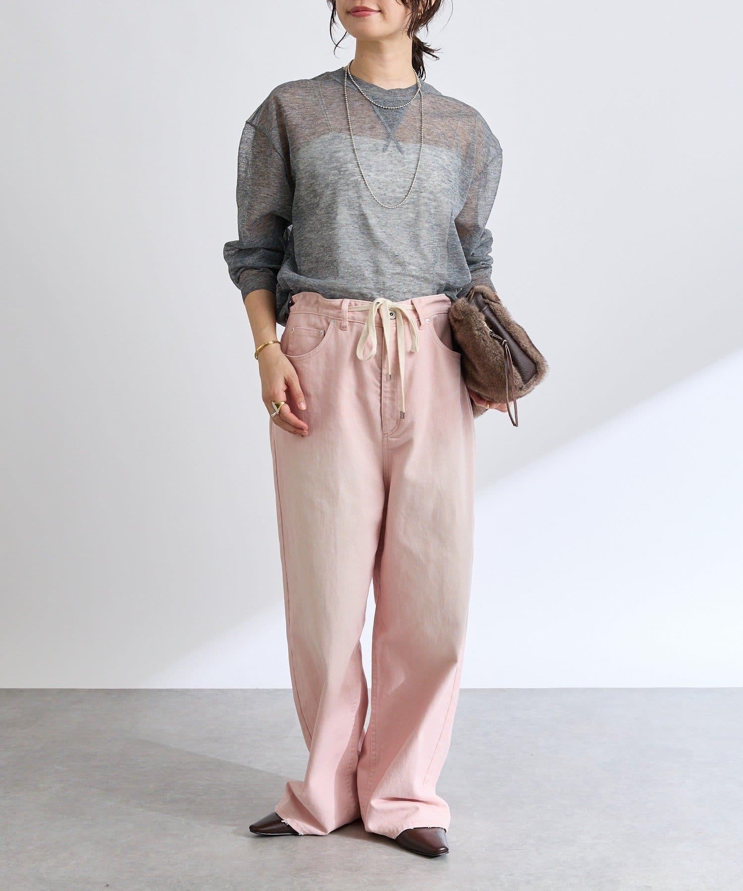 使用的面料比抽繩寬鬆牛仔布略厚。