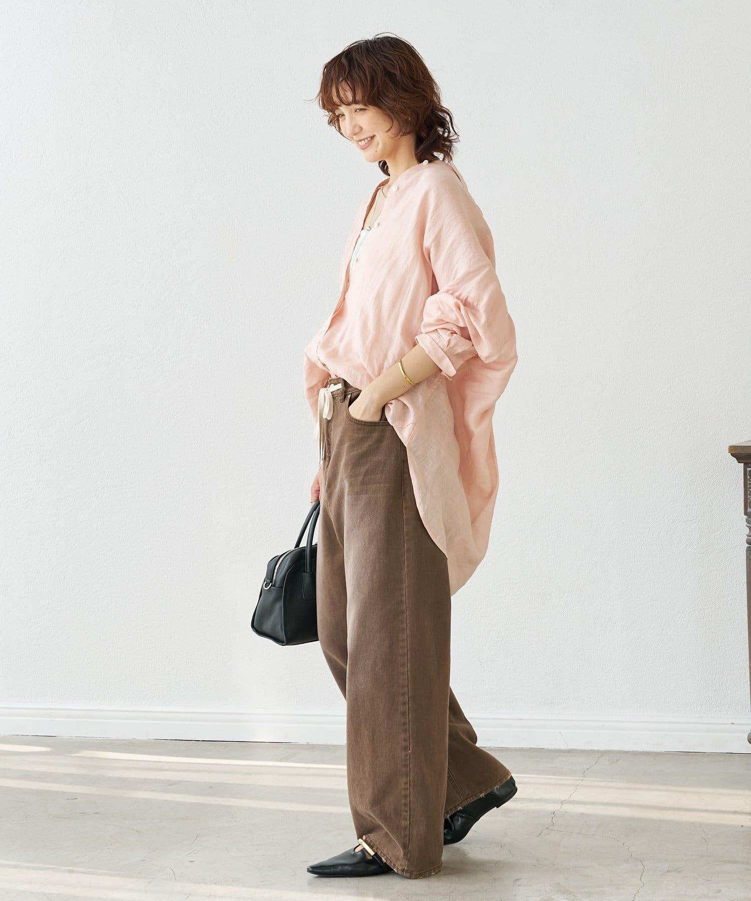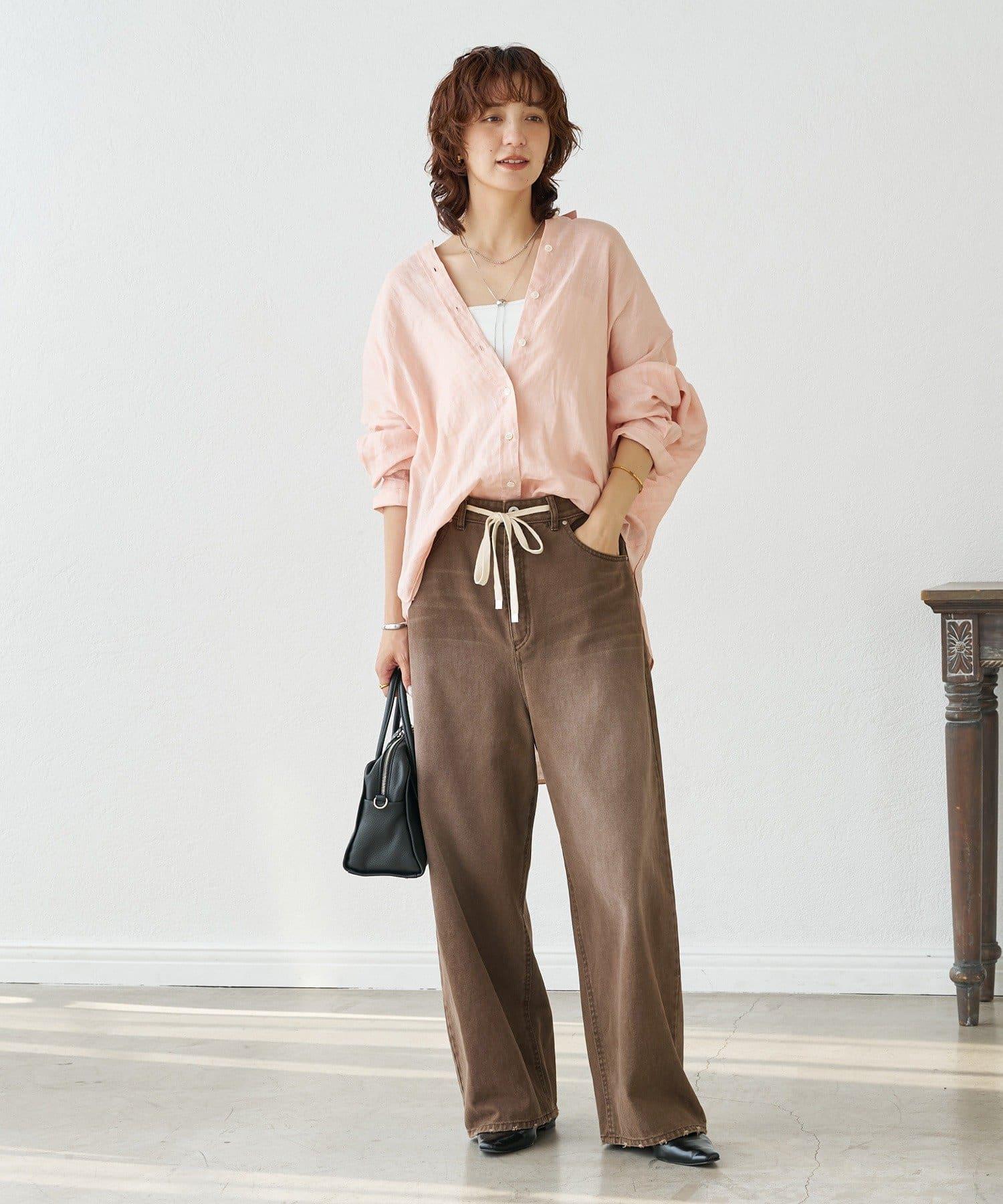 時尚的粉色和棕色讓這條褲子更有情調。