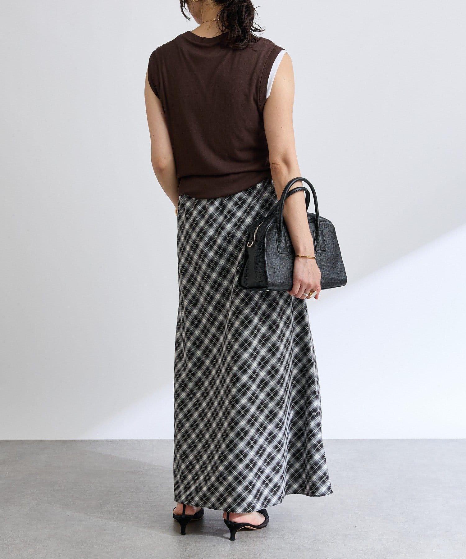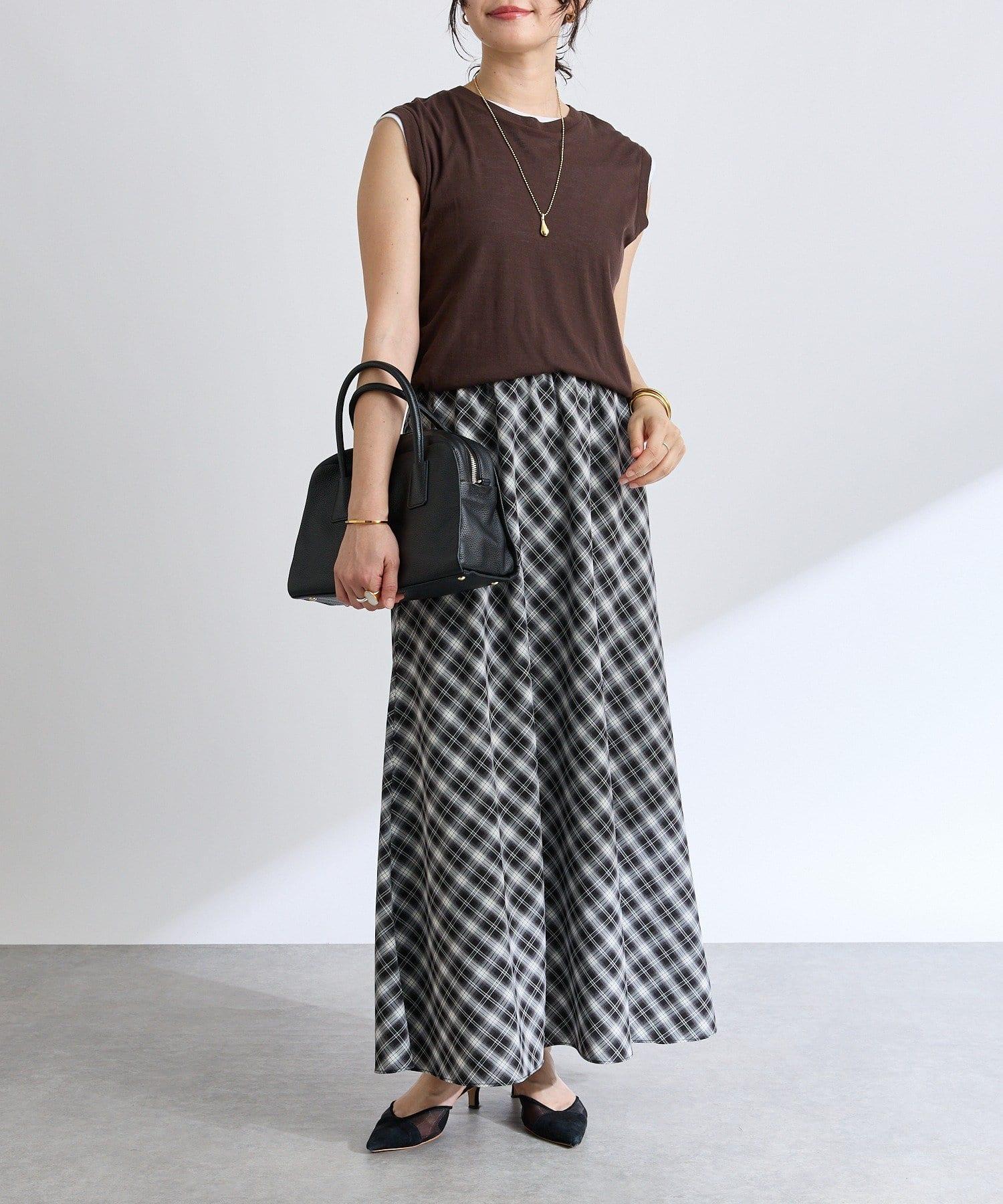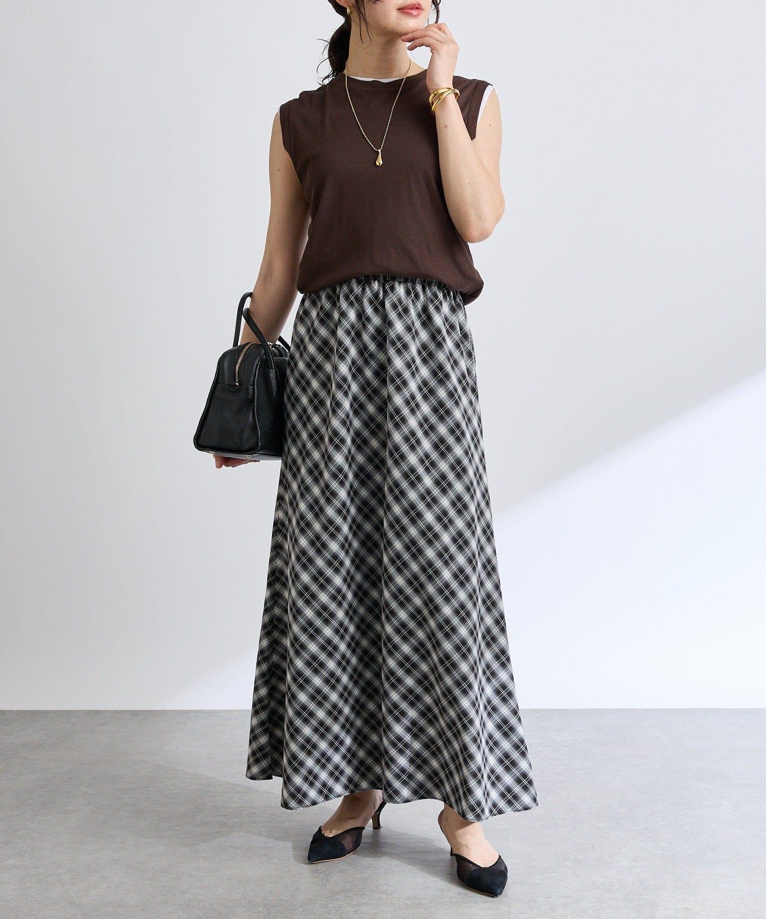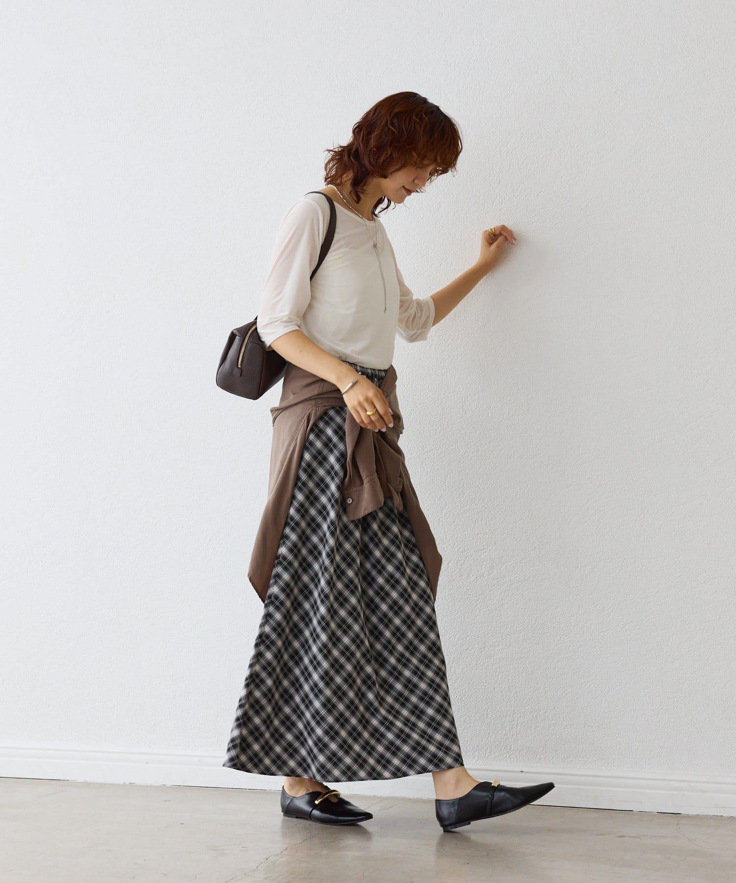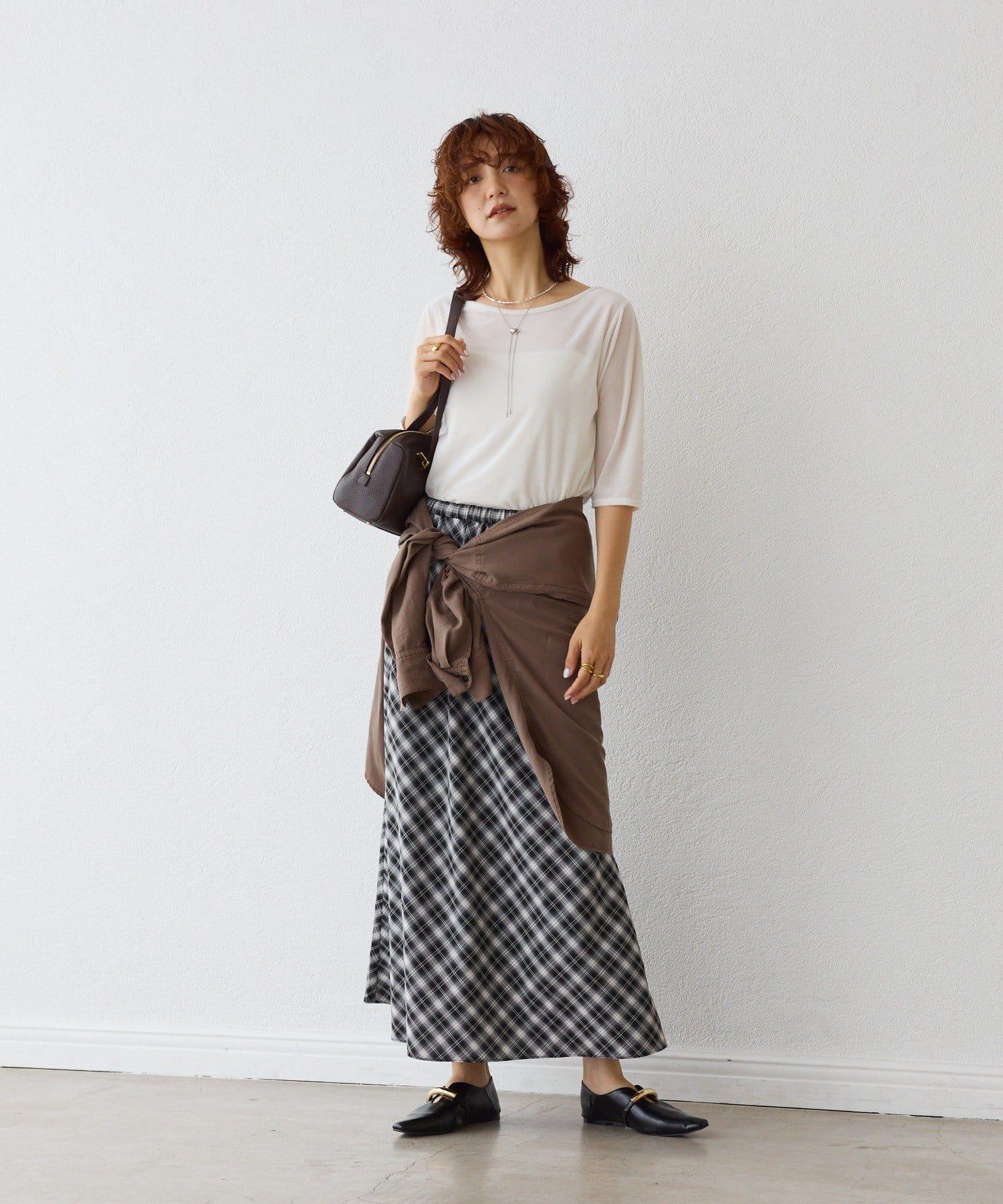 簡潔的喇叭廓形,即使穿著格紋裙也能給人優雅的印象。