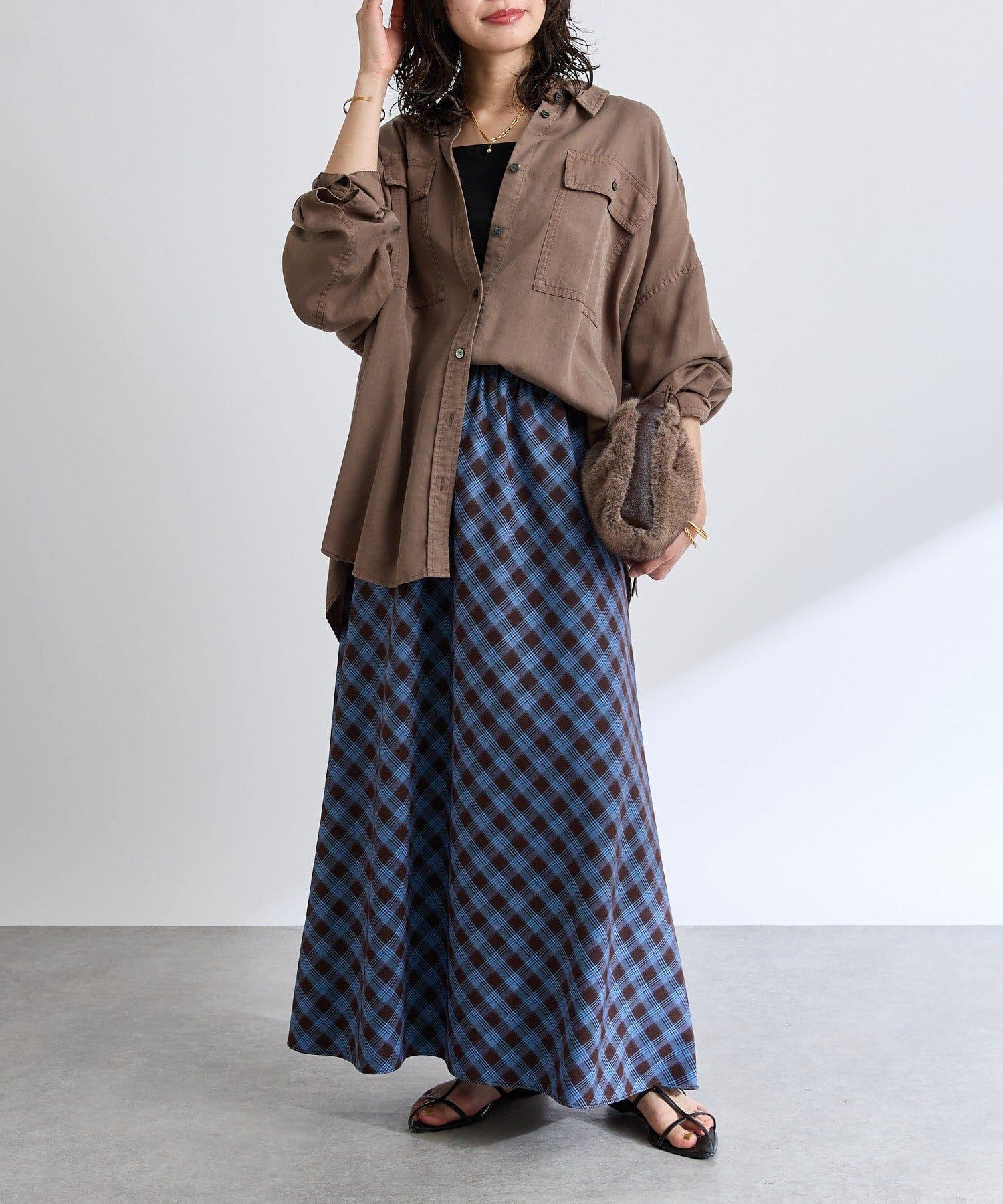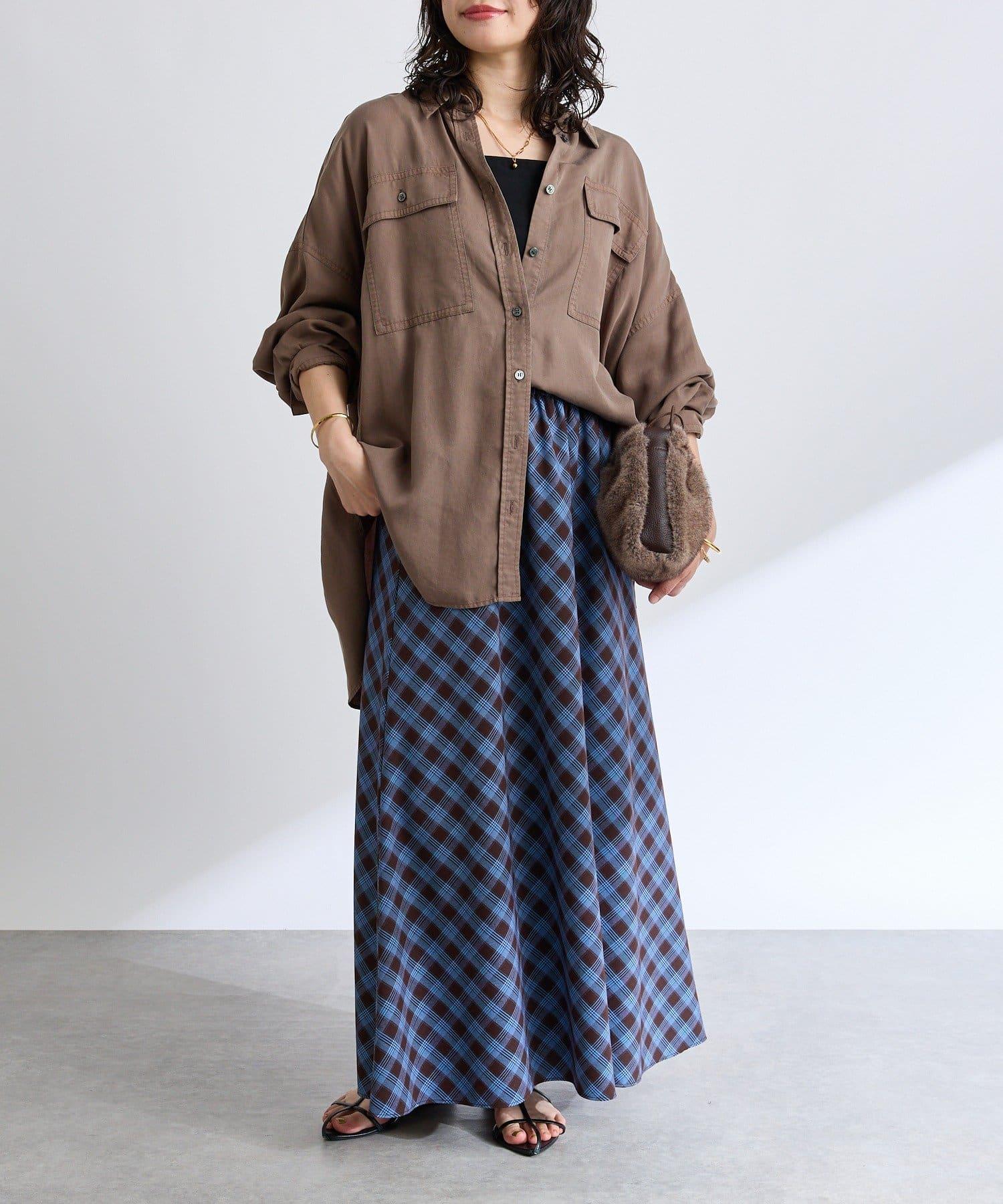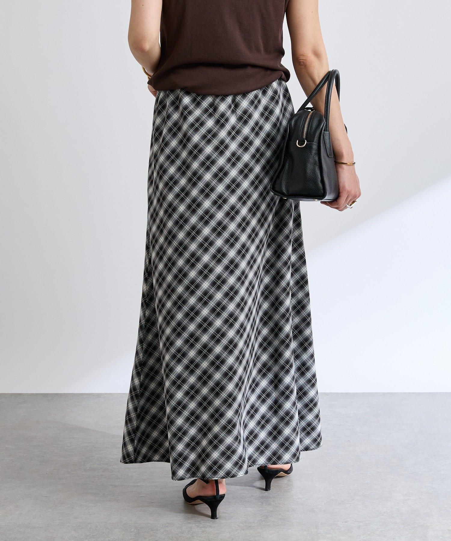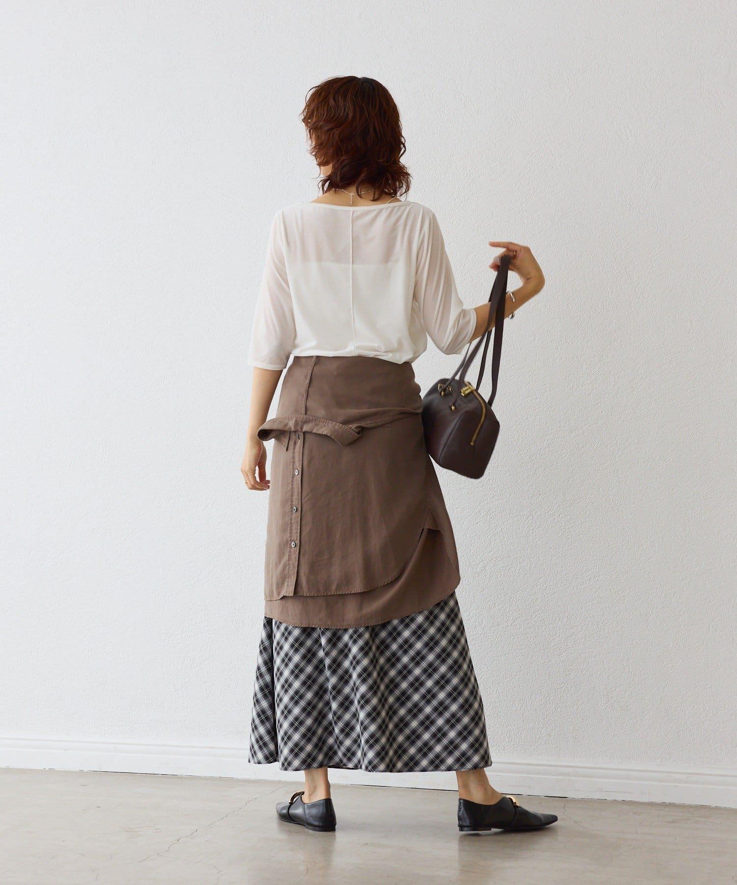 簡潔的喇叭廓形,即使穿著格紋裙也能給人優雅的印象。