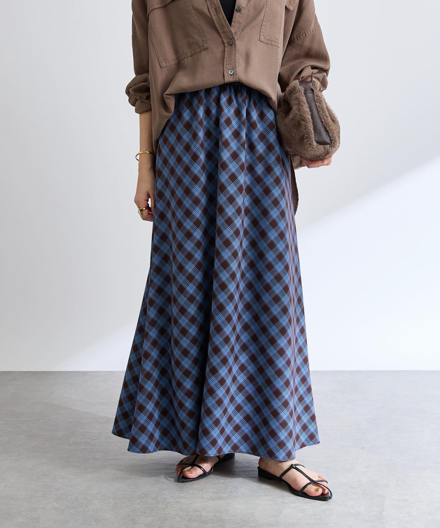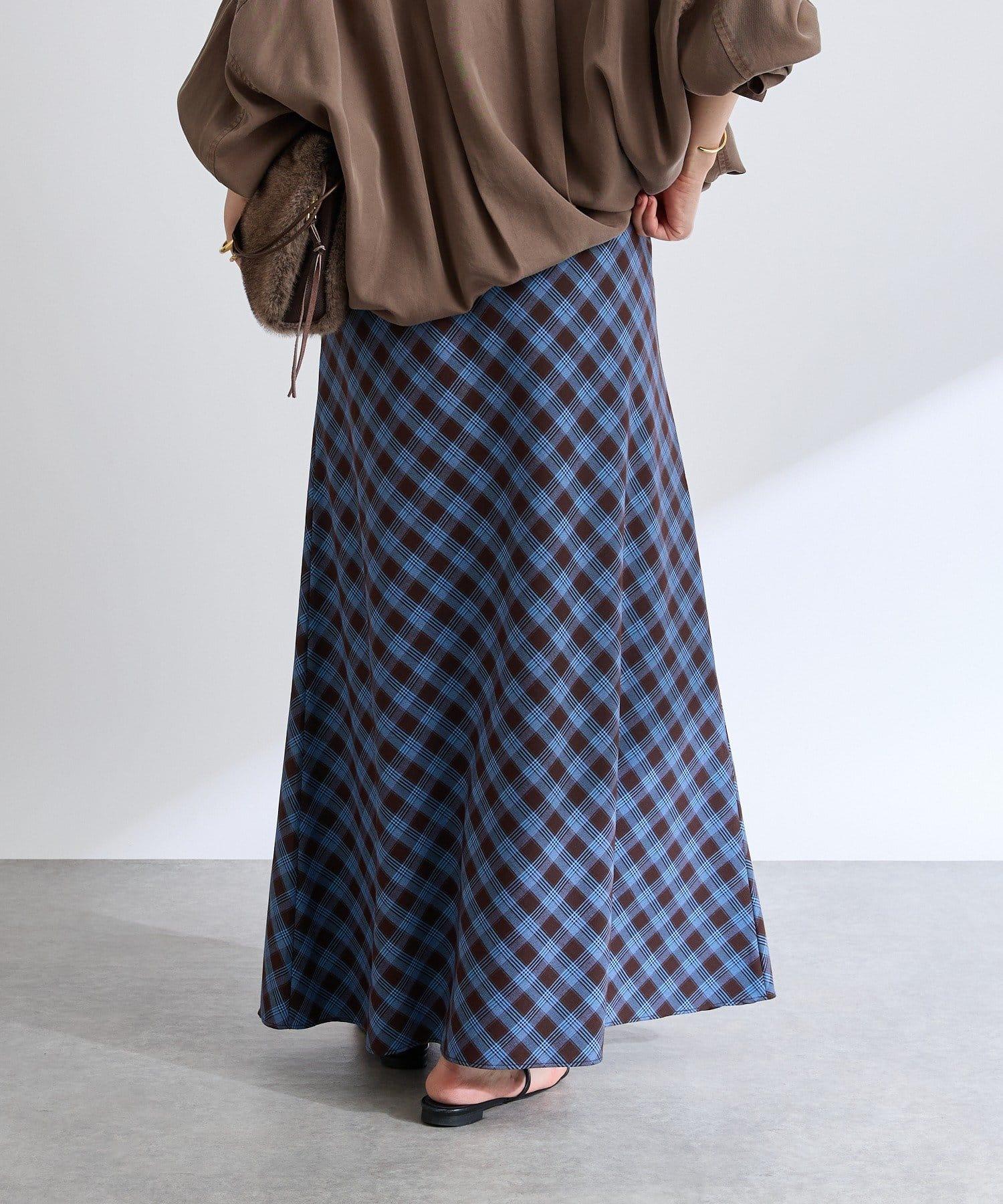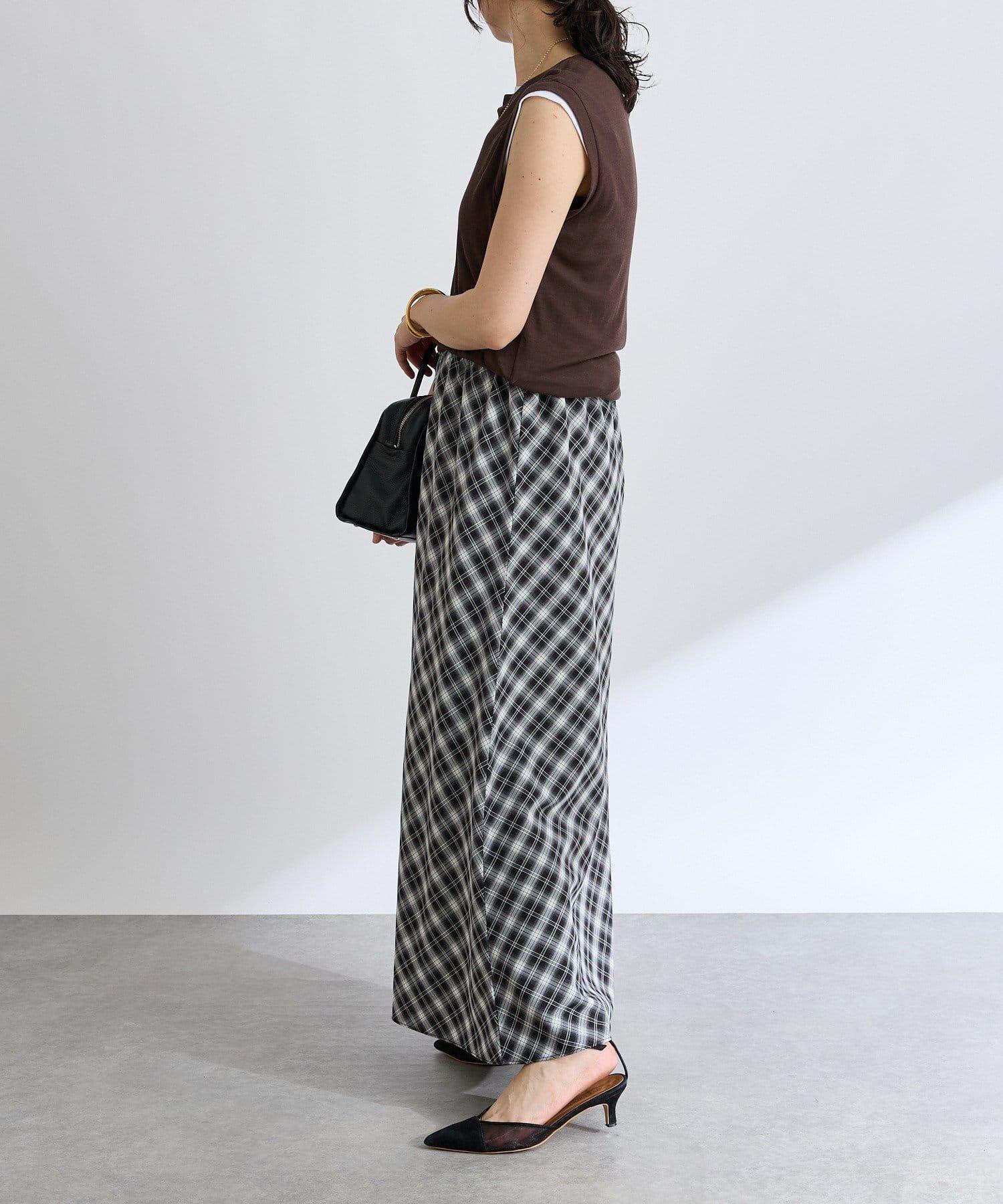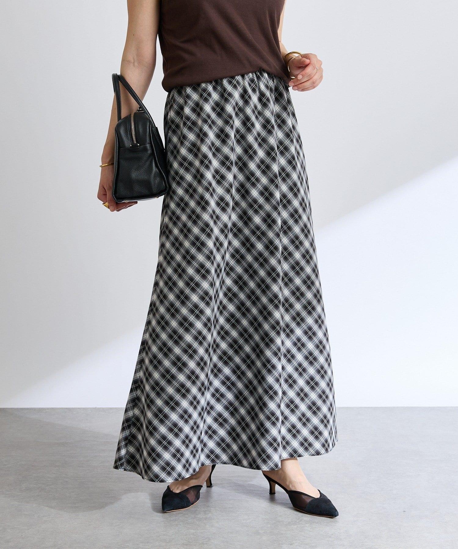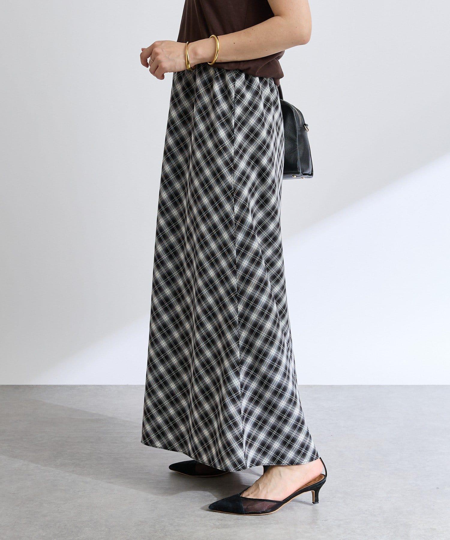 簡潔的喇叭廓形,即使穿著格紋裙也能給人優雅的印象。
