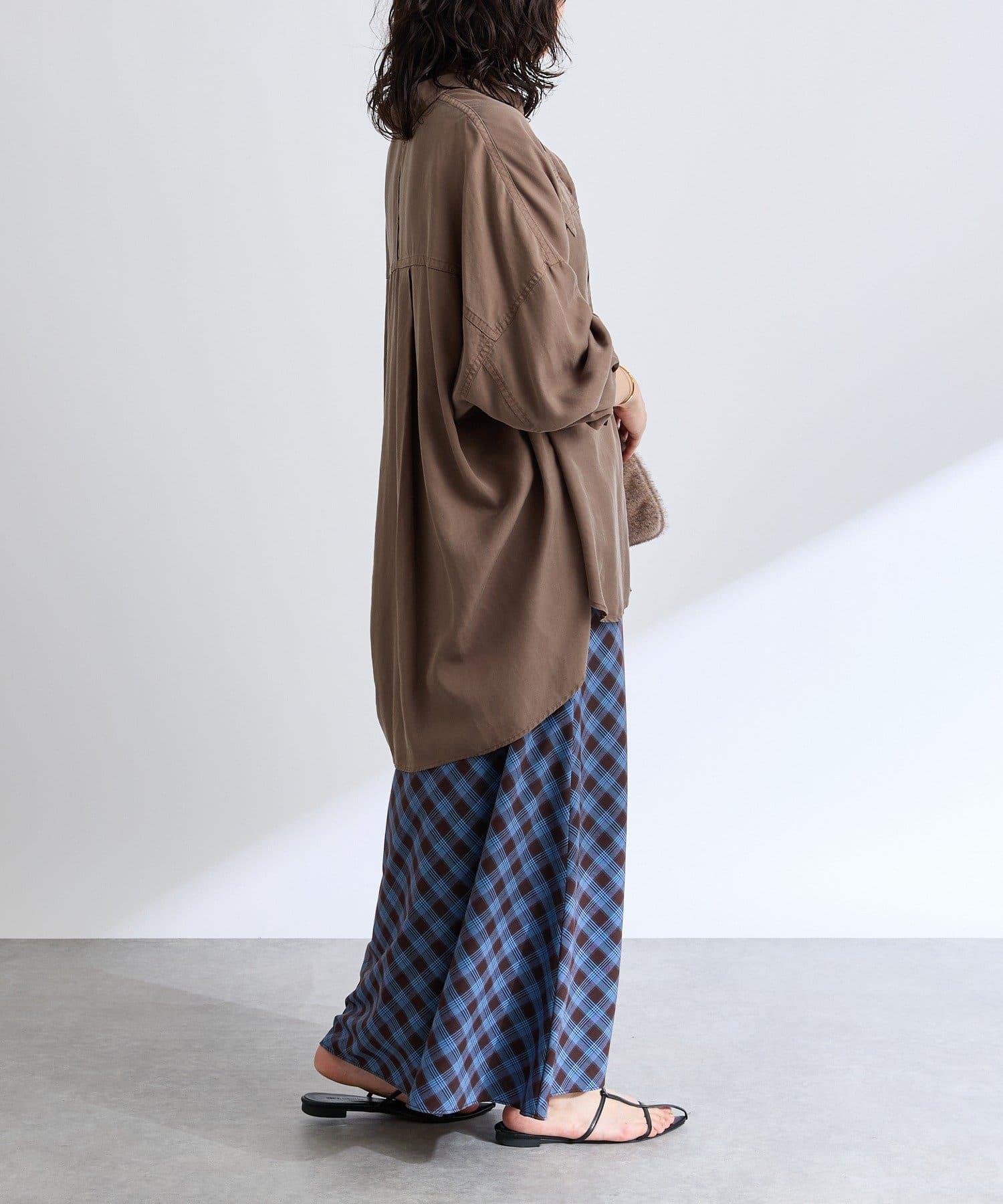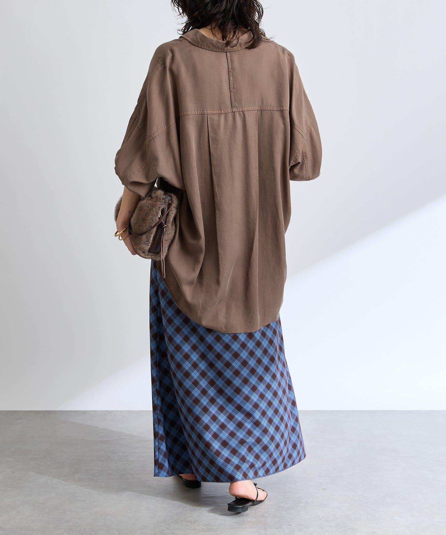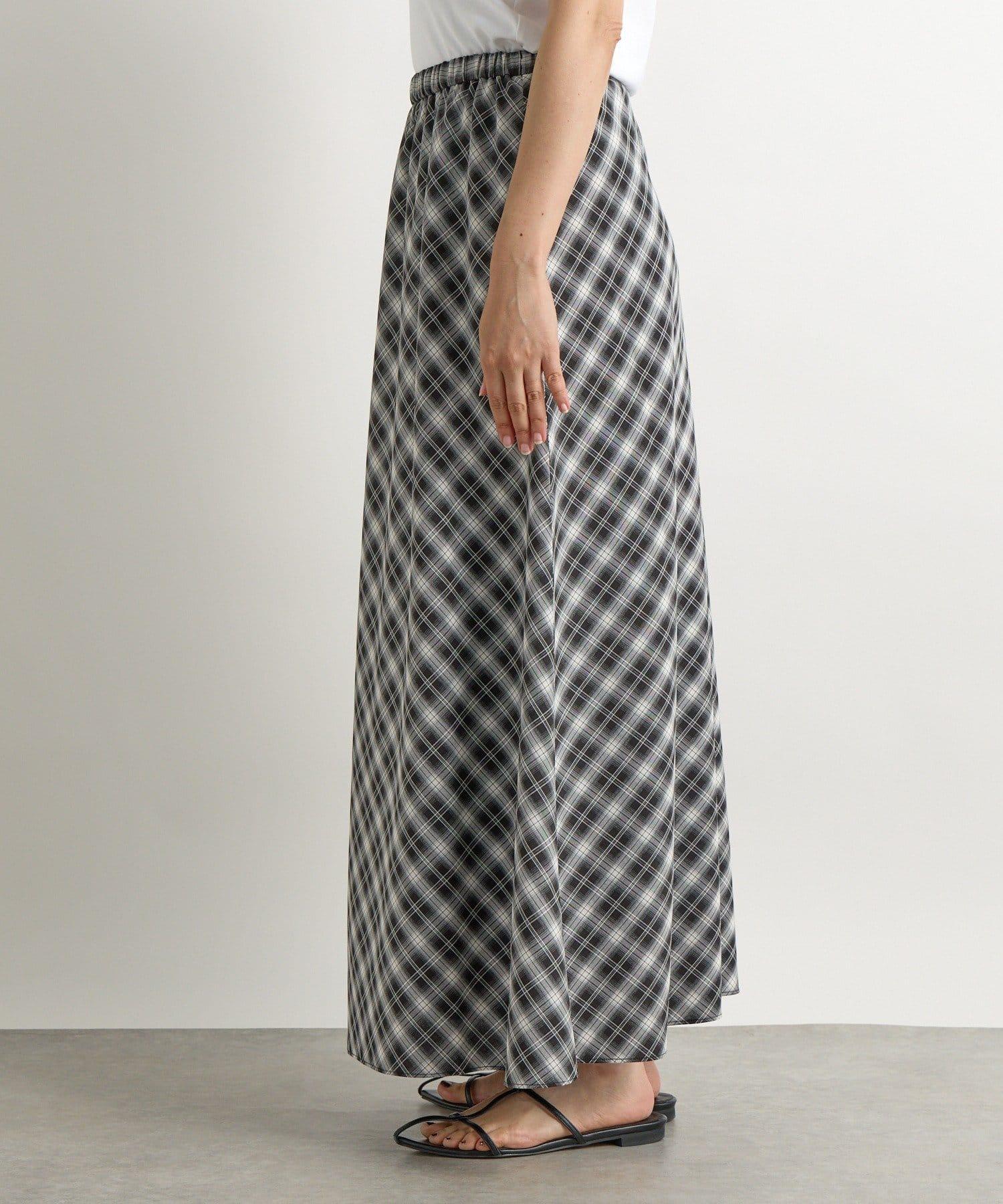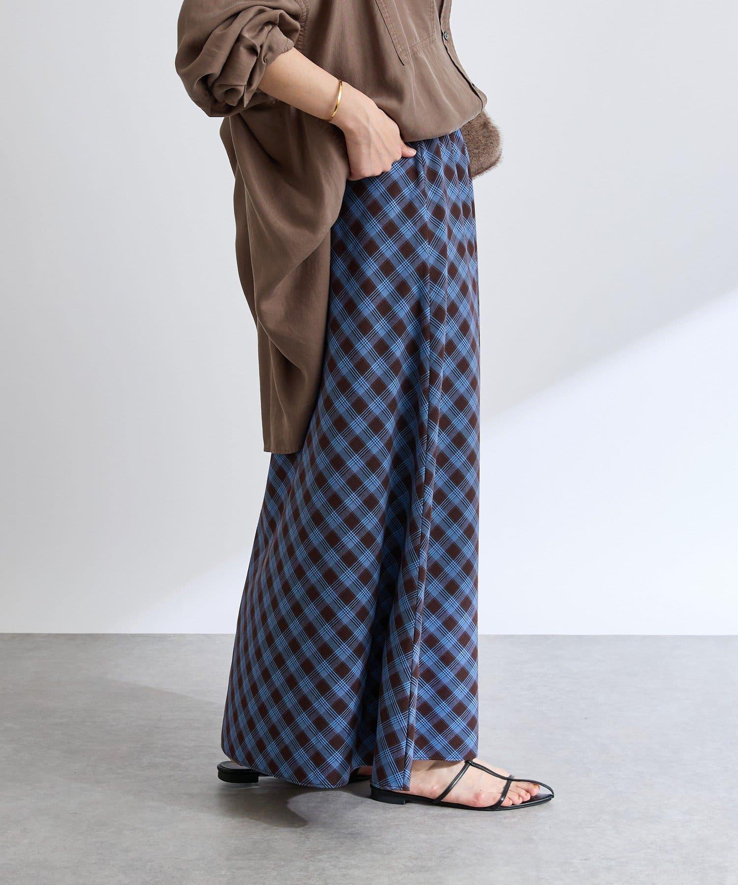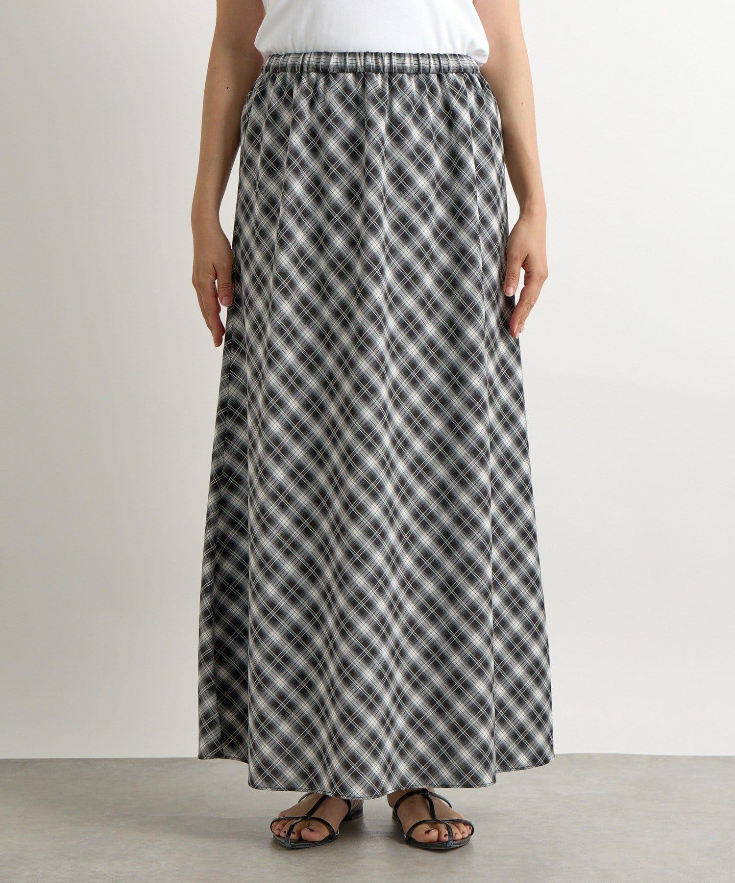 簡潔的喇叭廓形,即使穿著格紋裙也能給人優雅的印象。