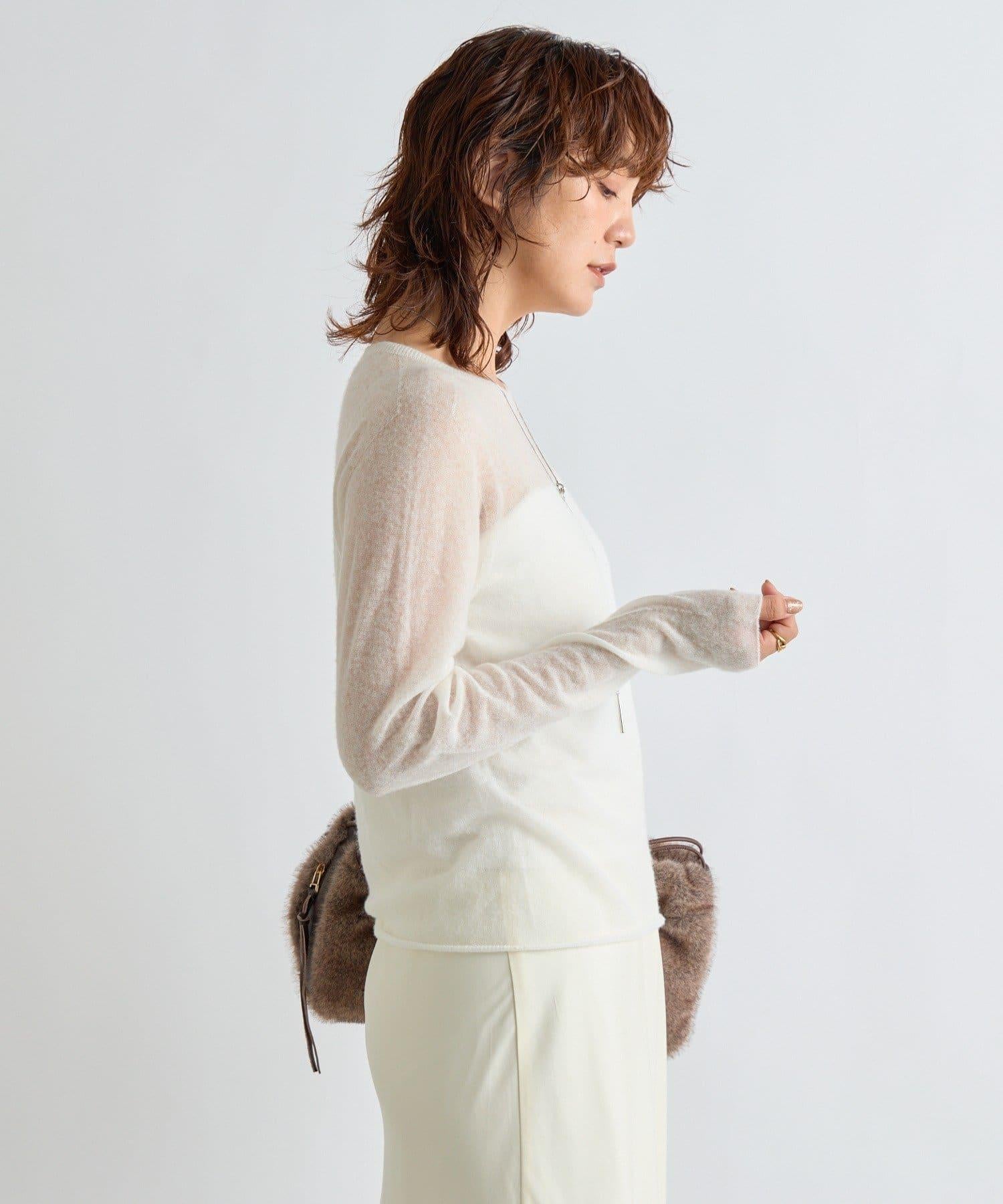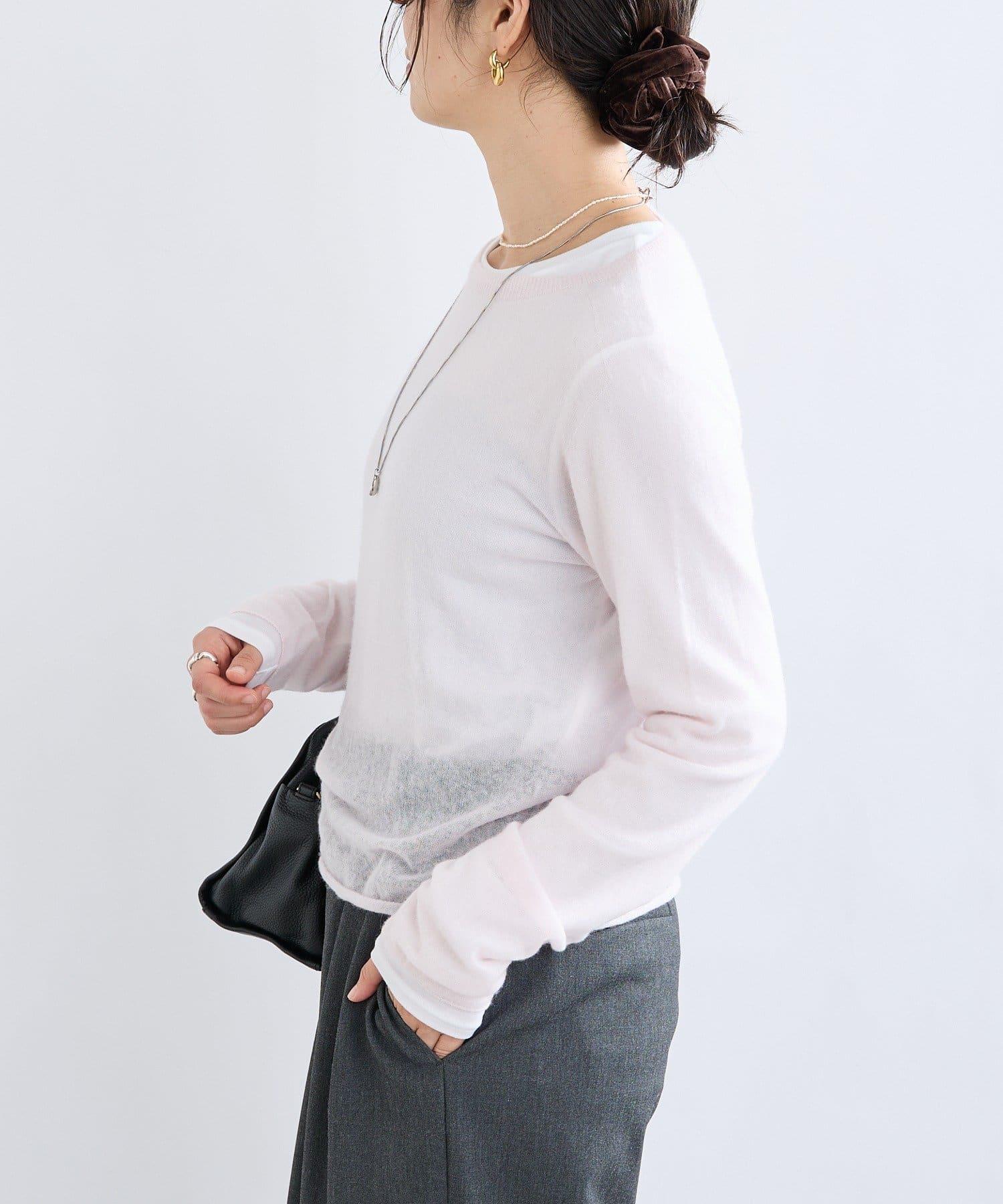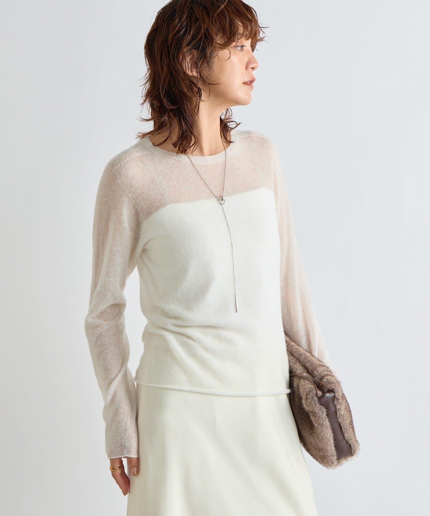 【RIVE DROITE】羊絨混紡羊毛透視圓領針織衫