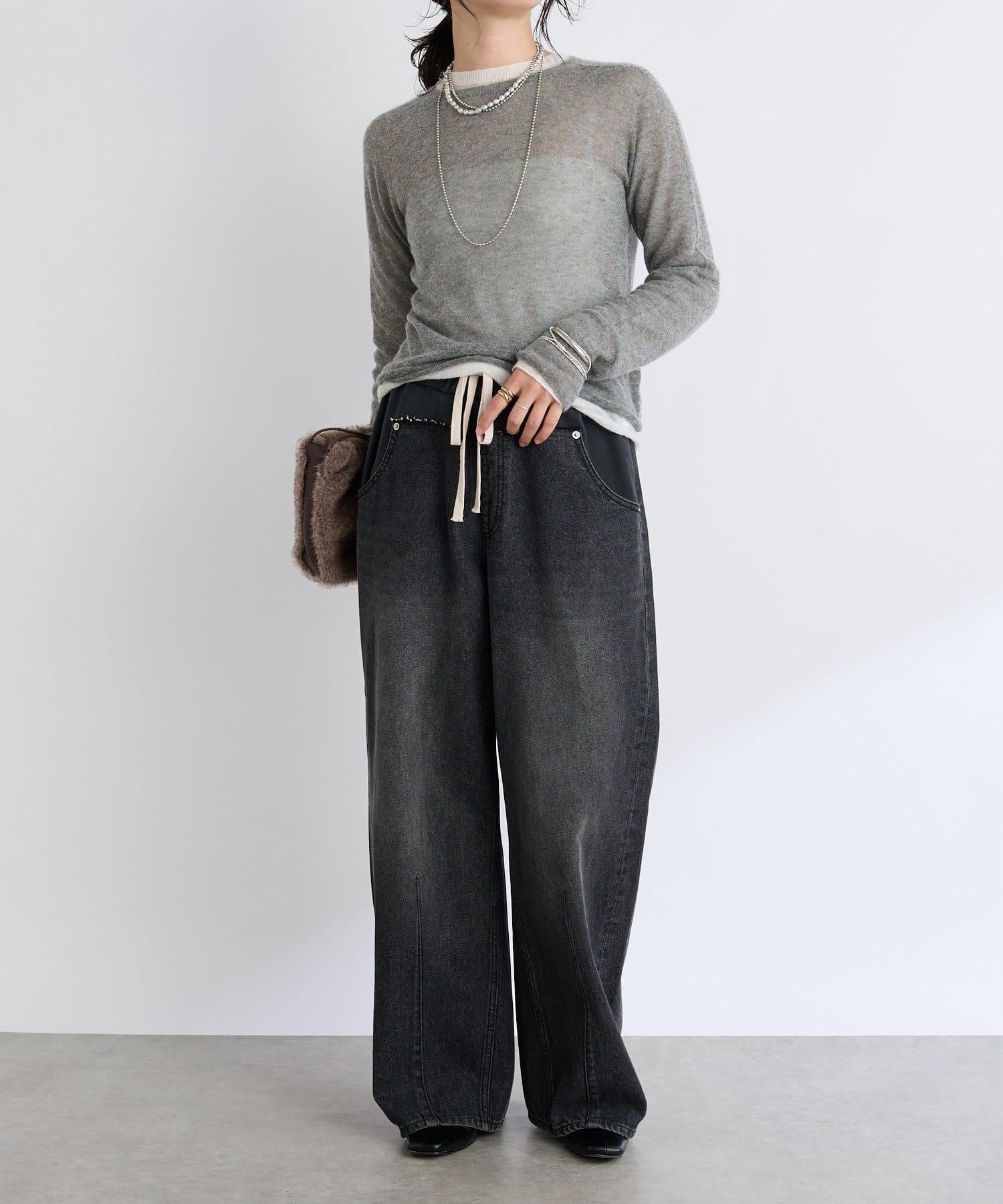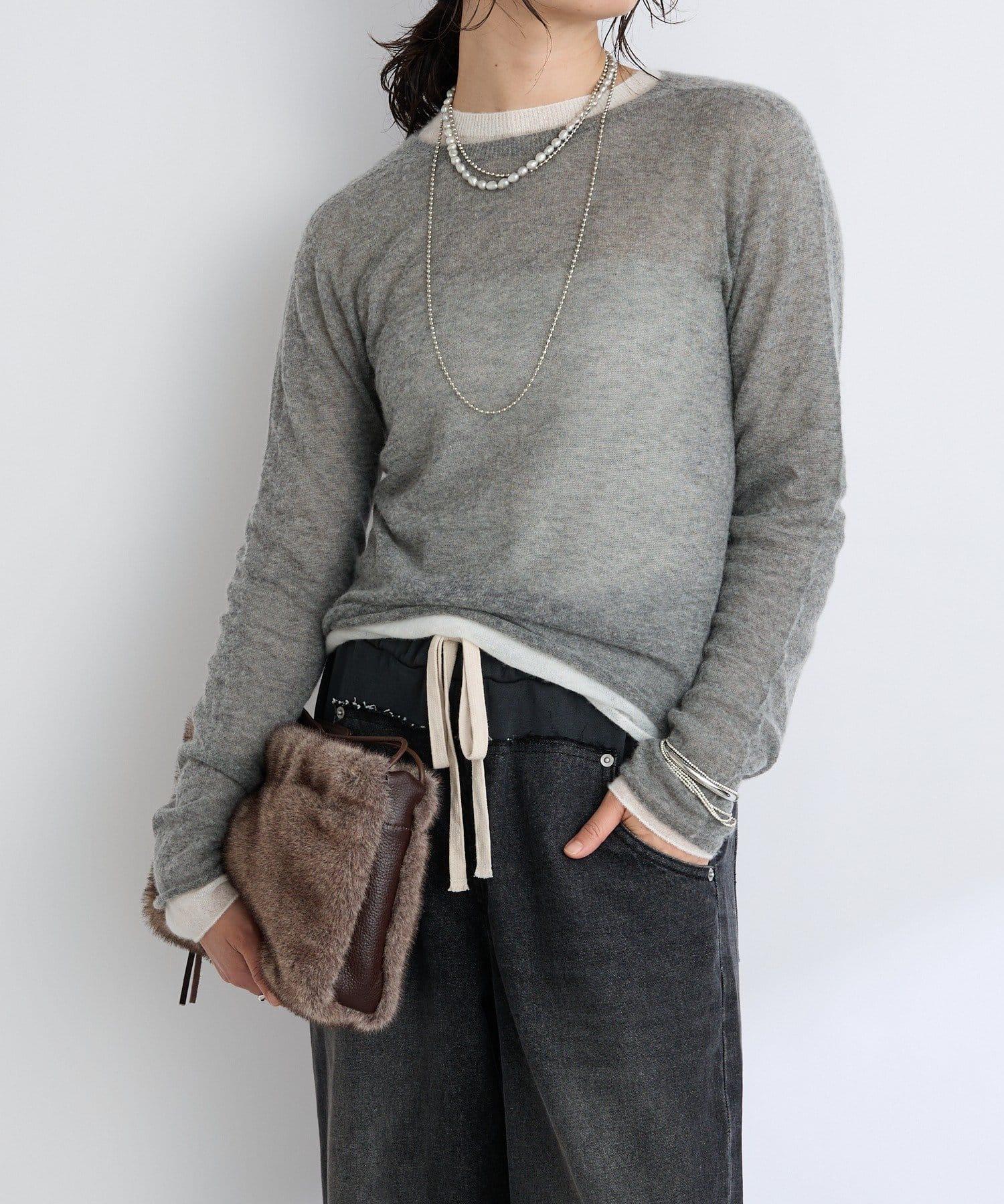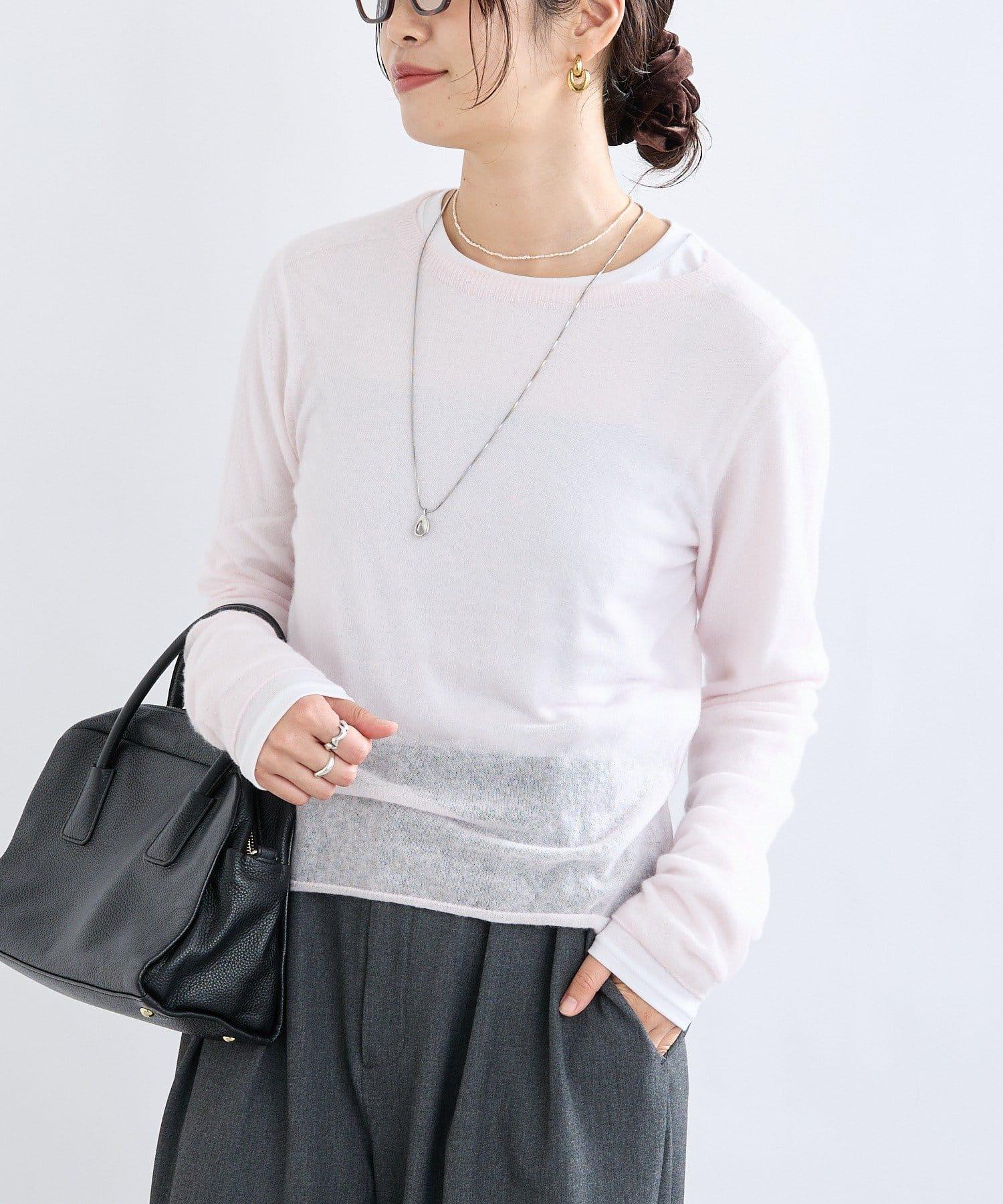 【RIVE DROITE】羊絨混紡羊毛透視圓領針織衫