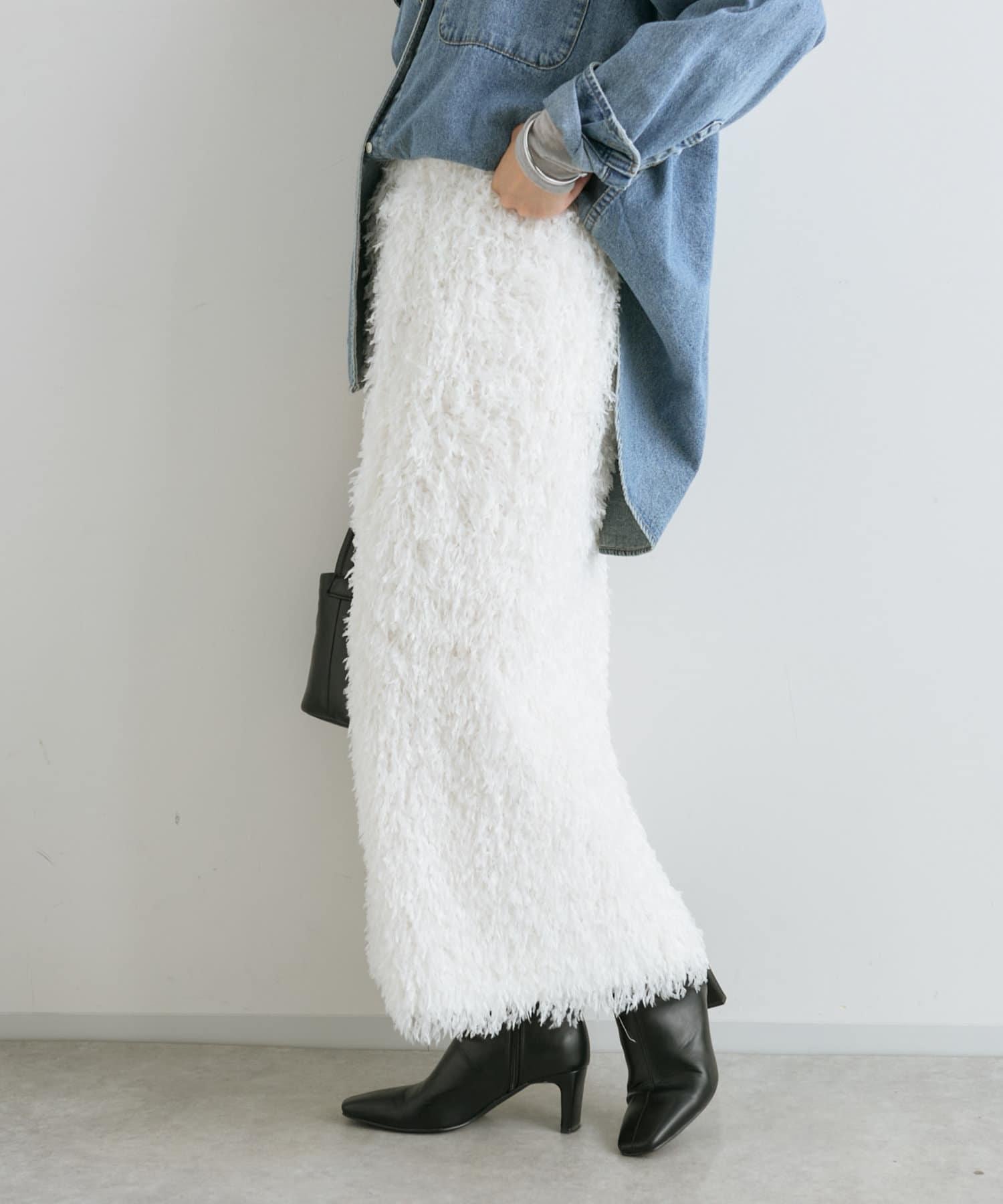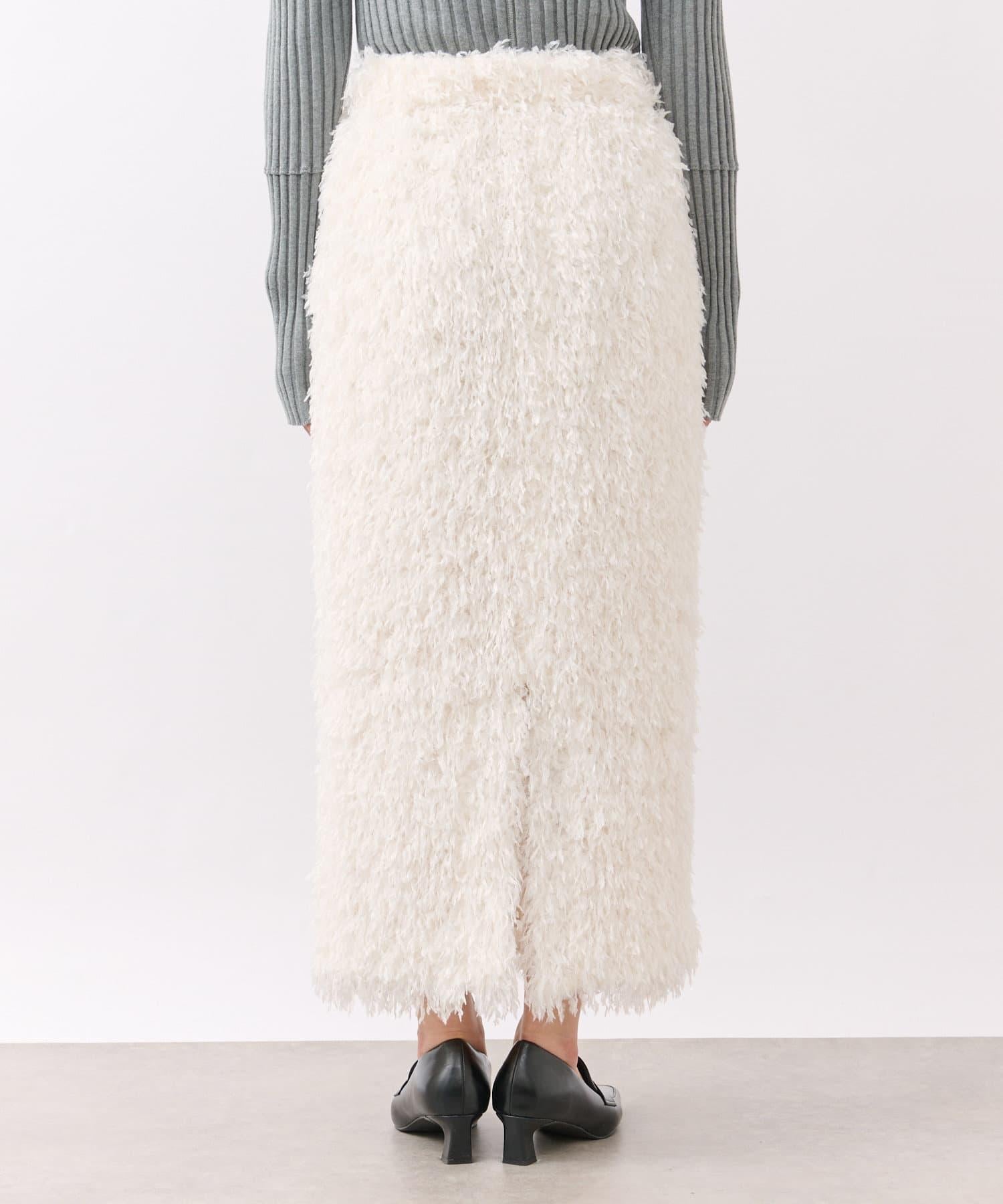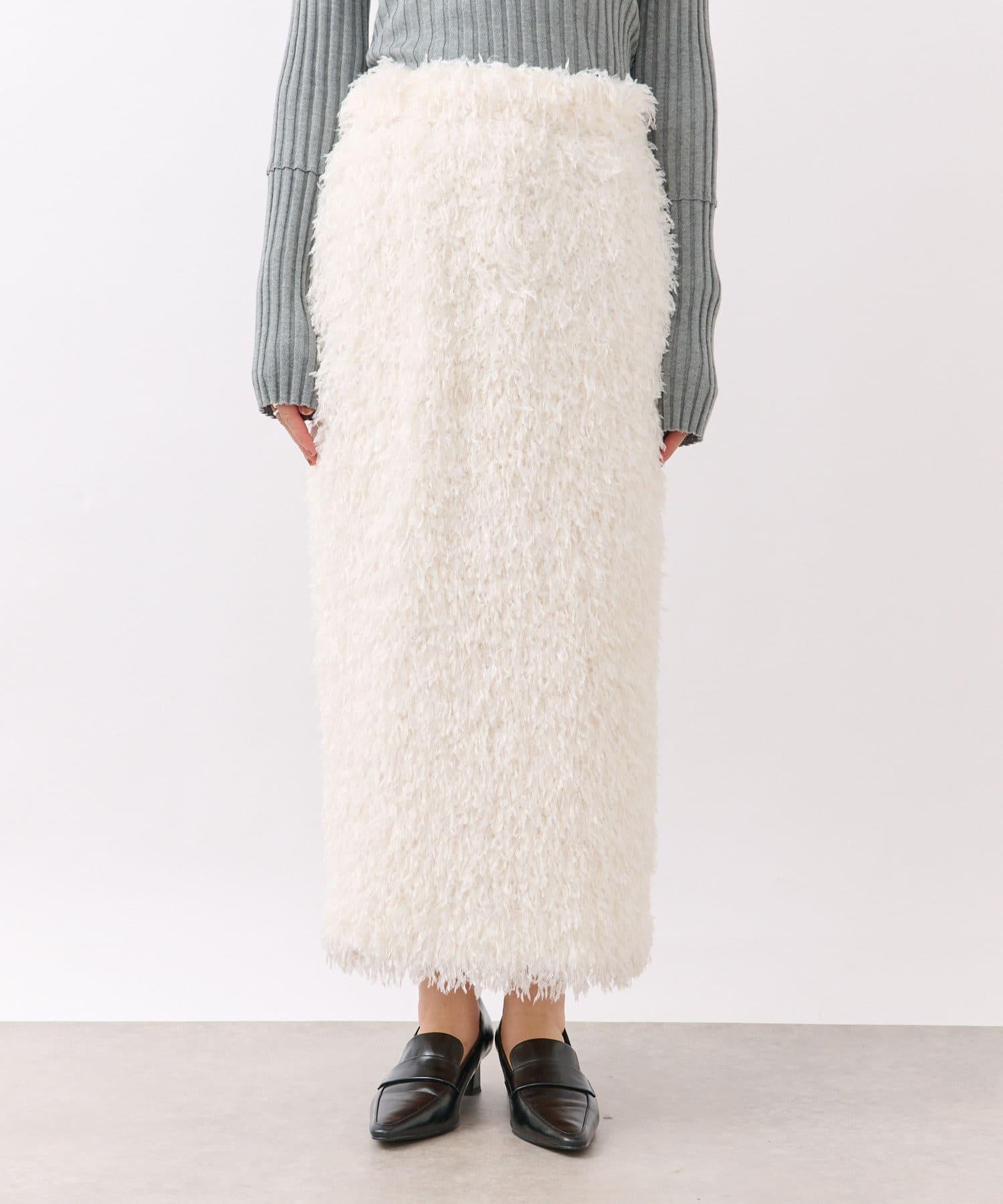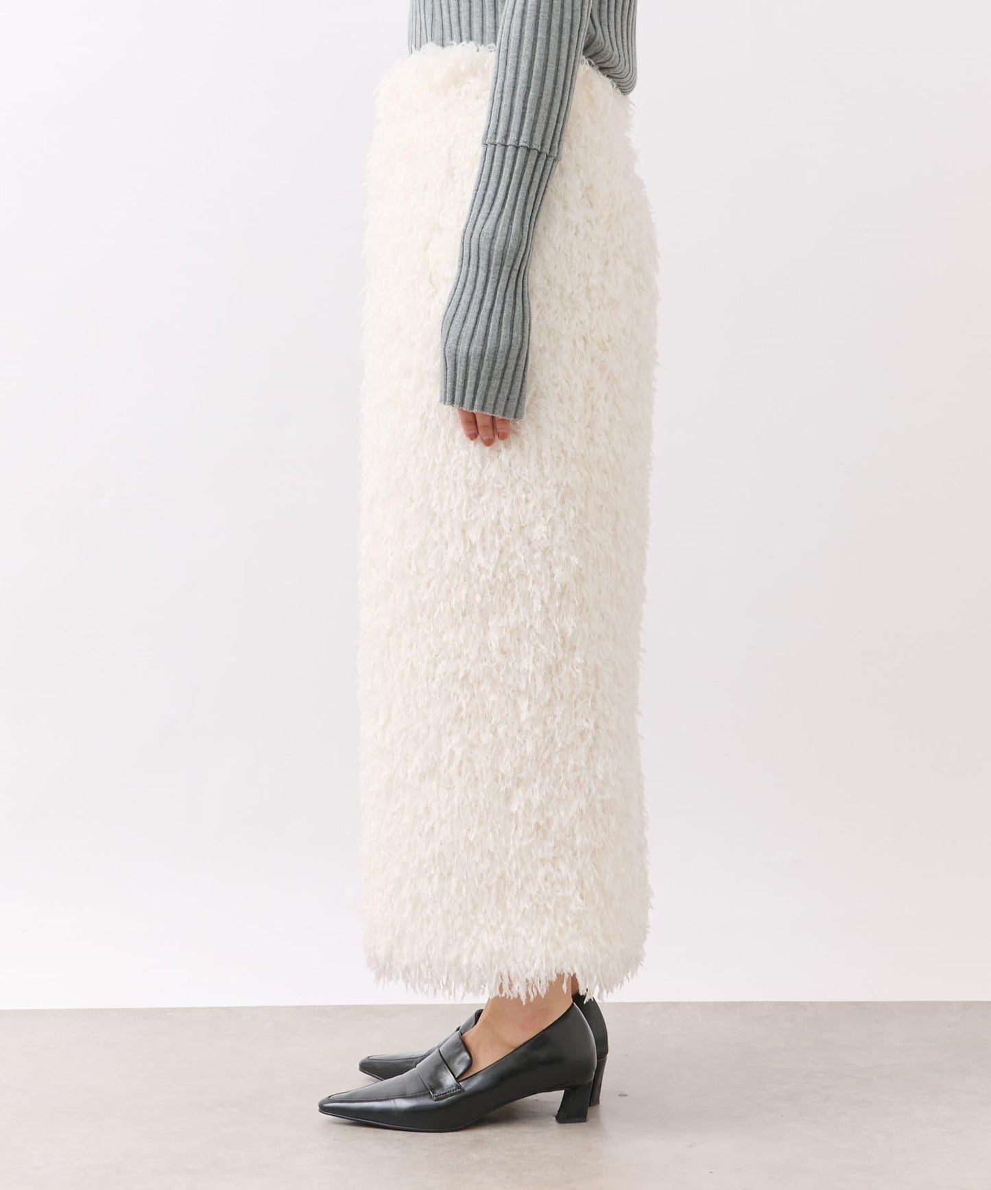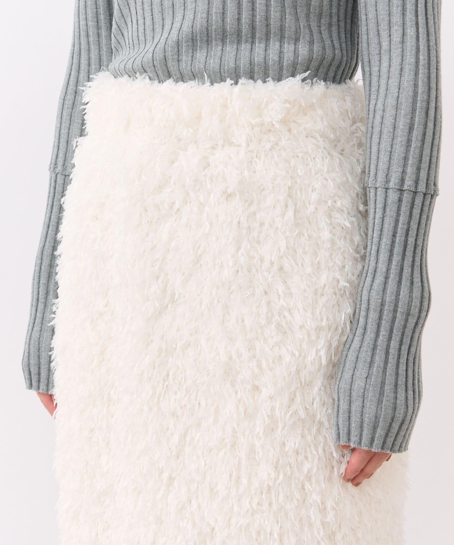 華麗的緊身裙,蓬鬆的毛茸茸面料讓人聯想到羽毛。
