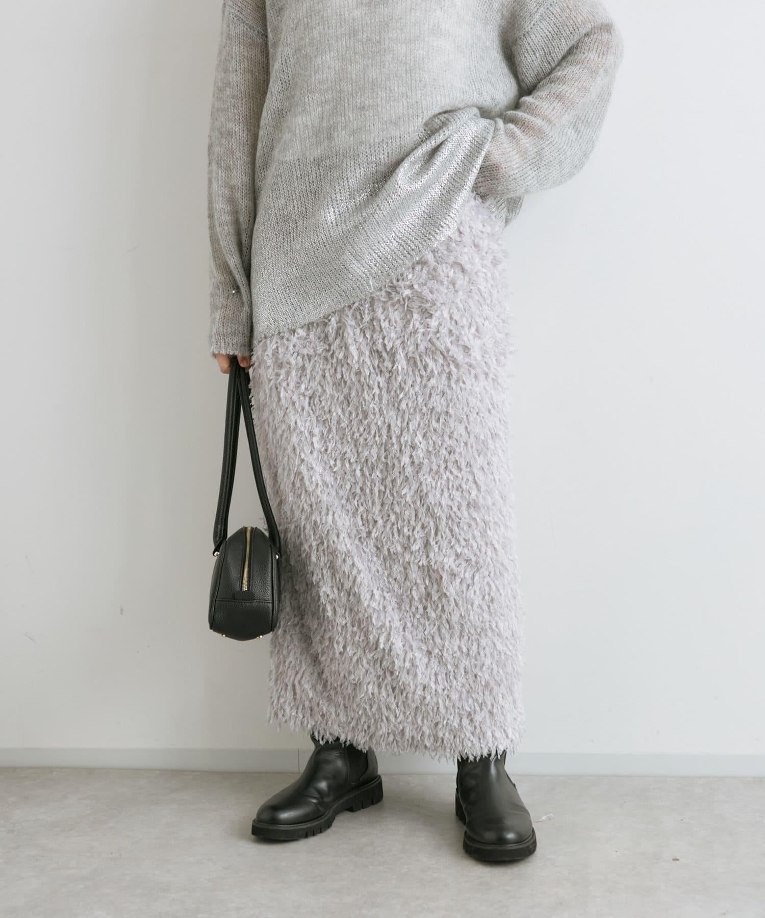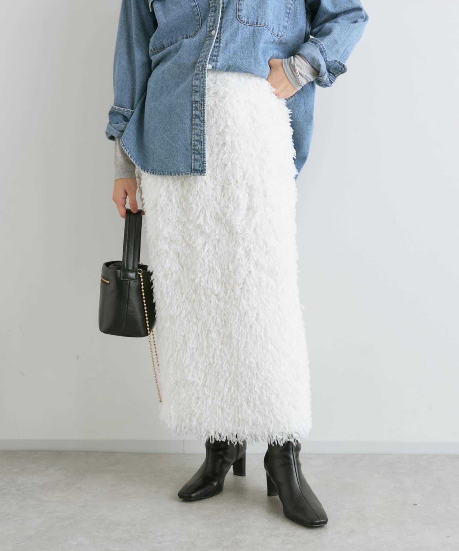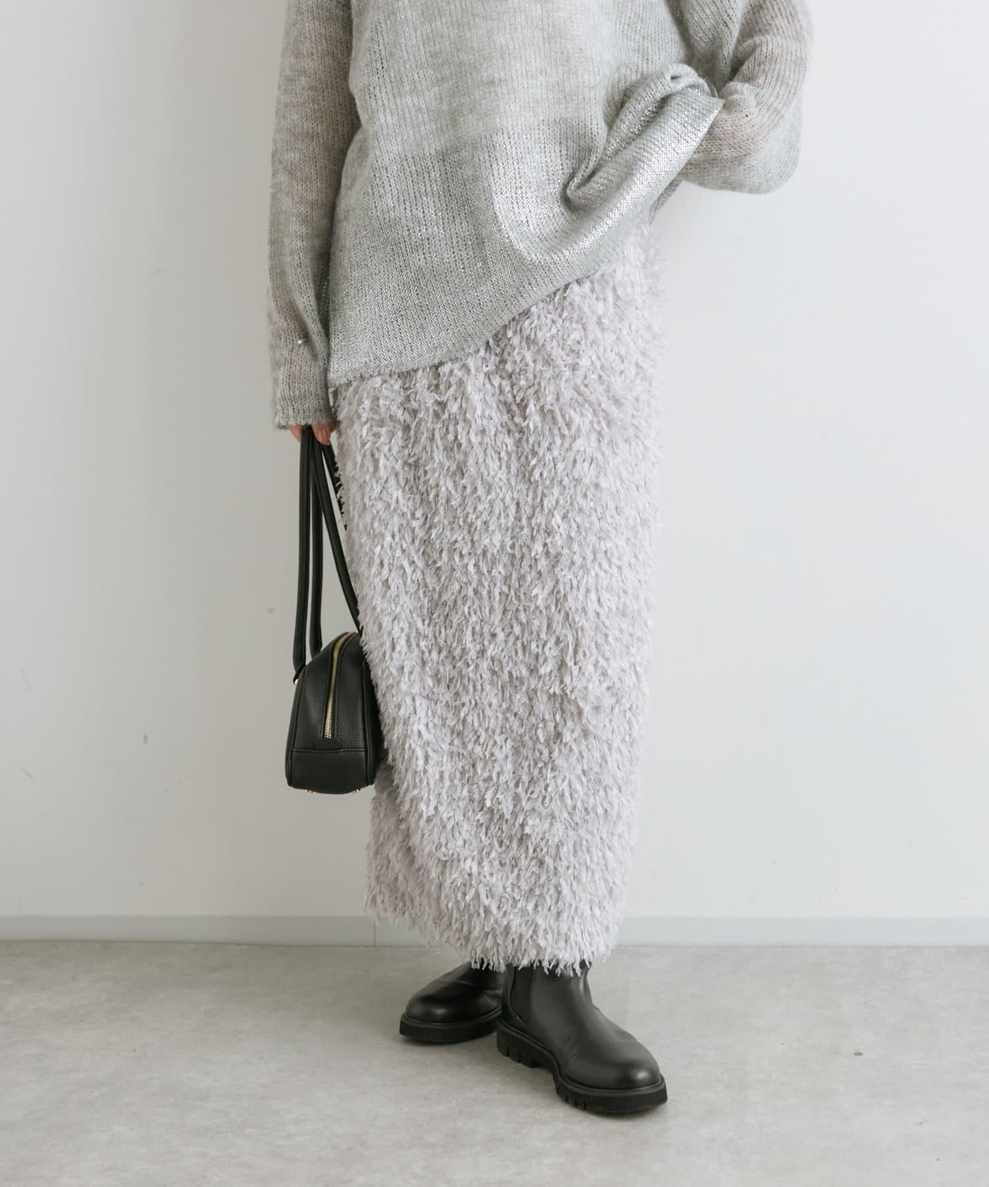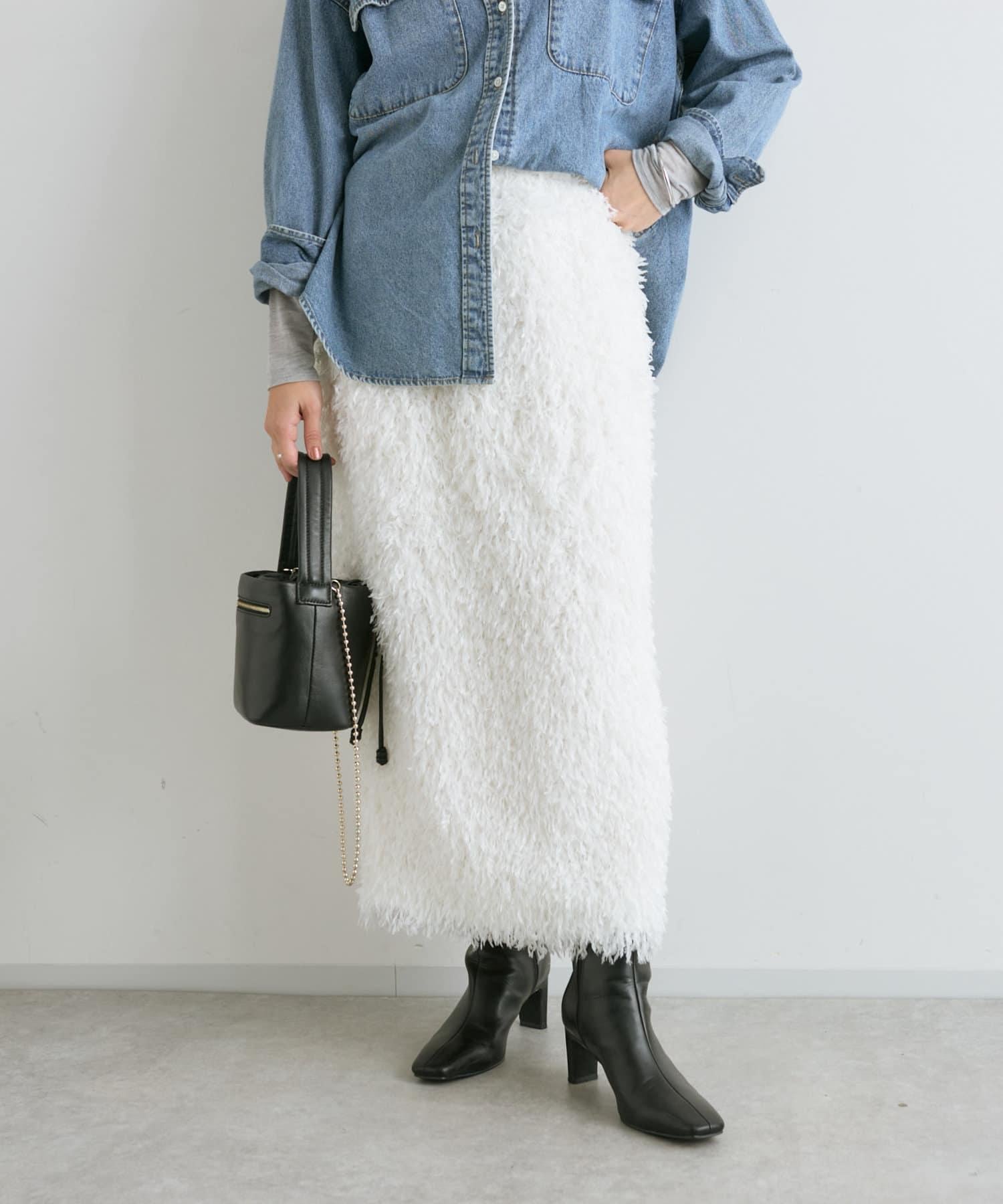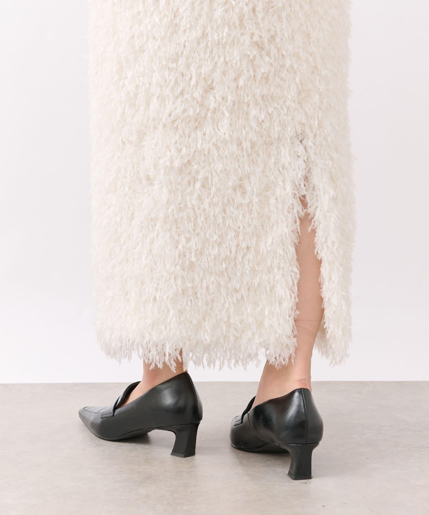 華麗的緊身裙,蓬鬆的毛茸茸面料讓人聯想到羽毛。