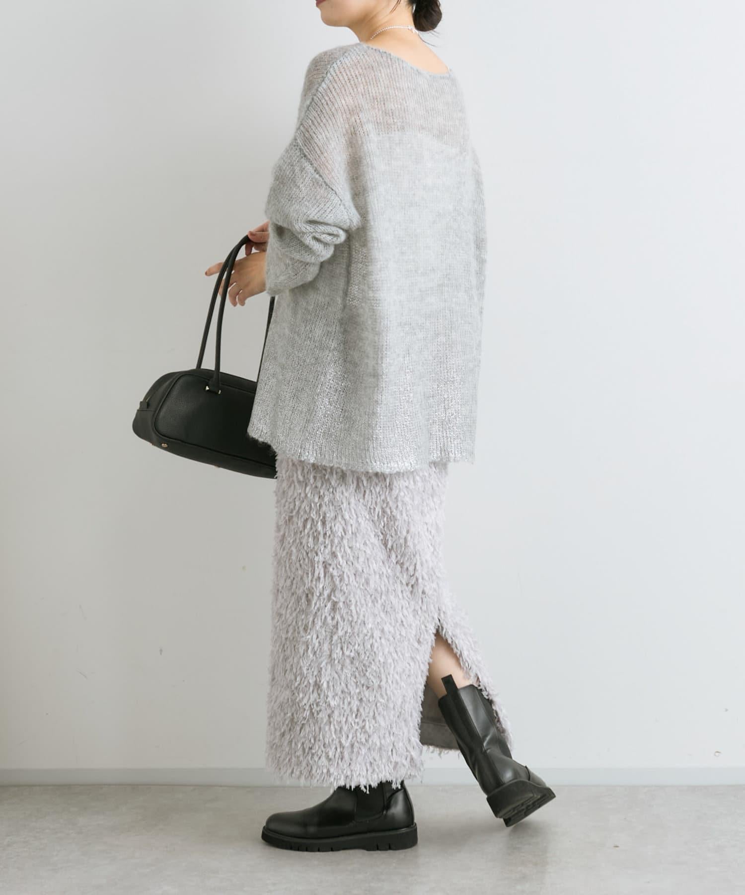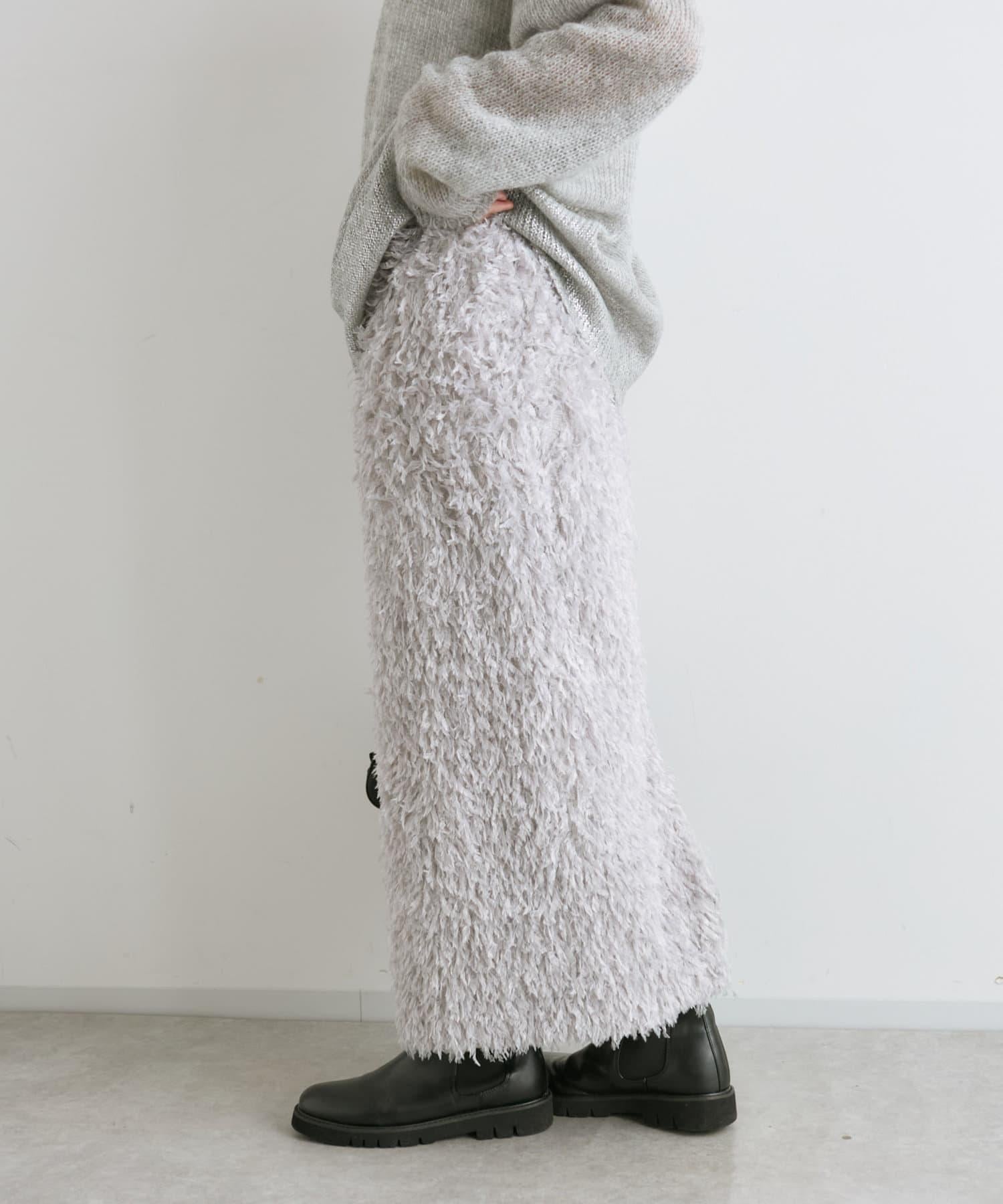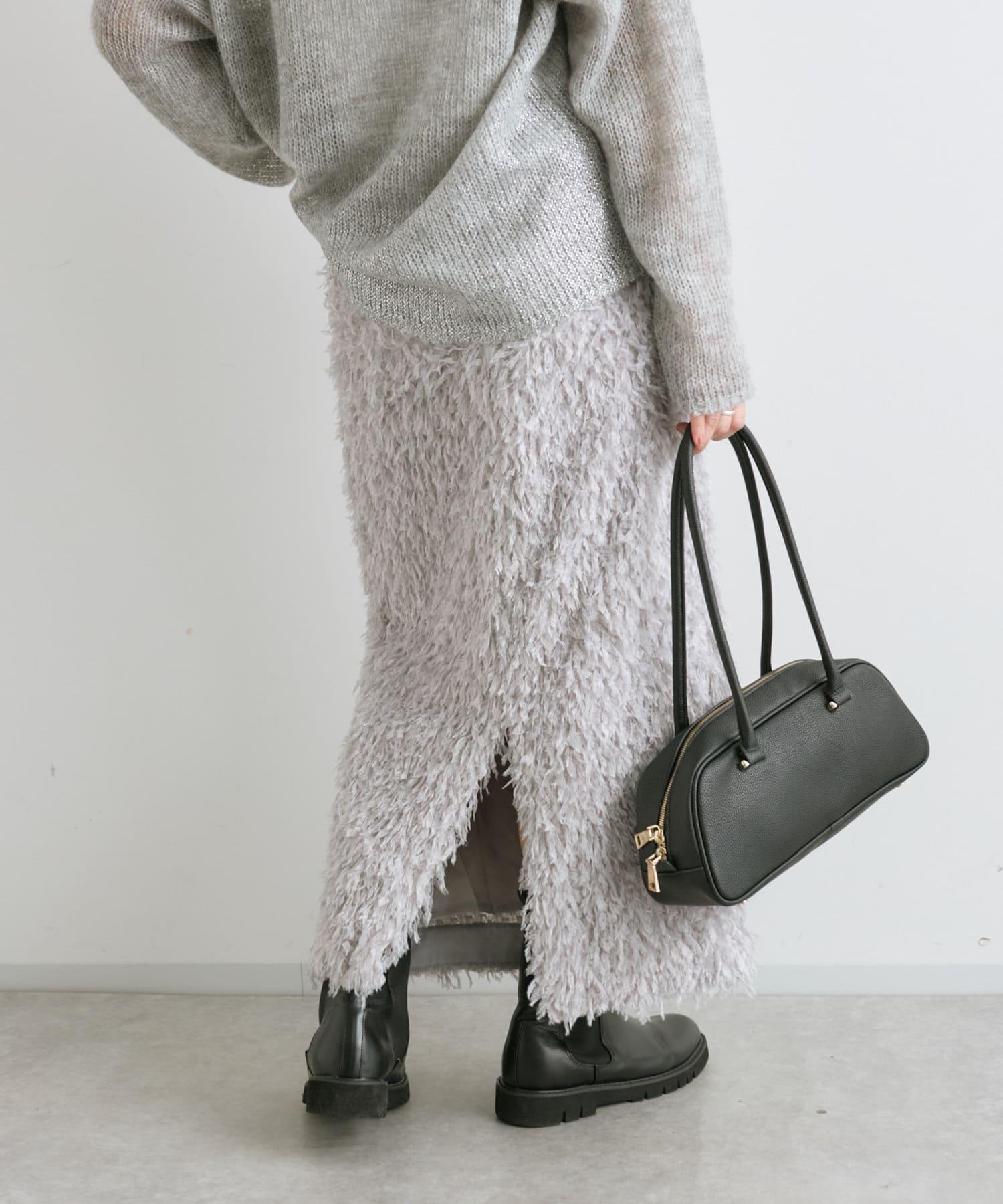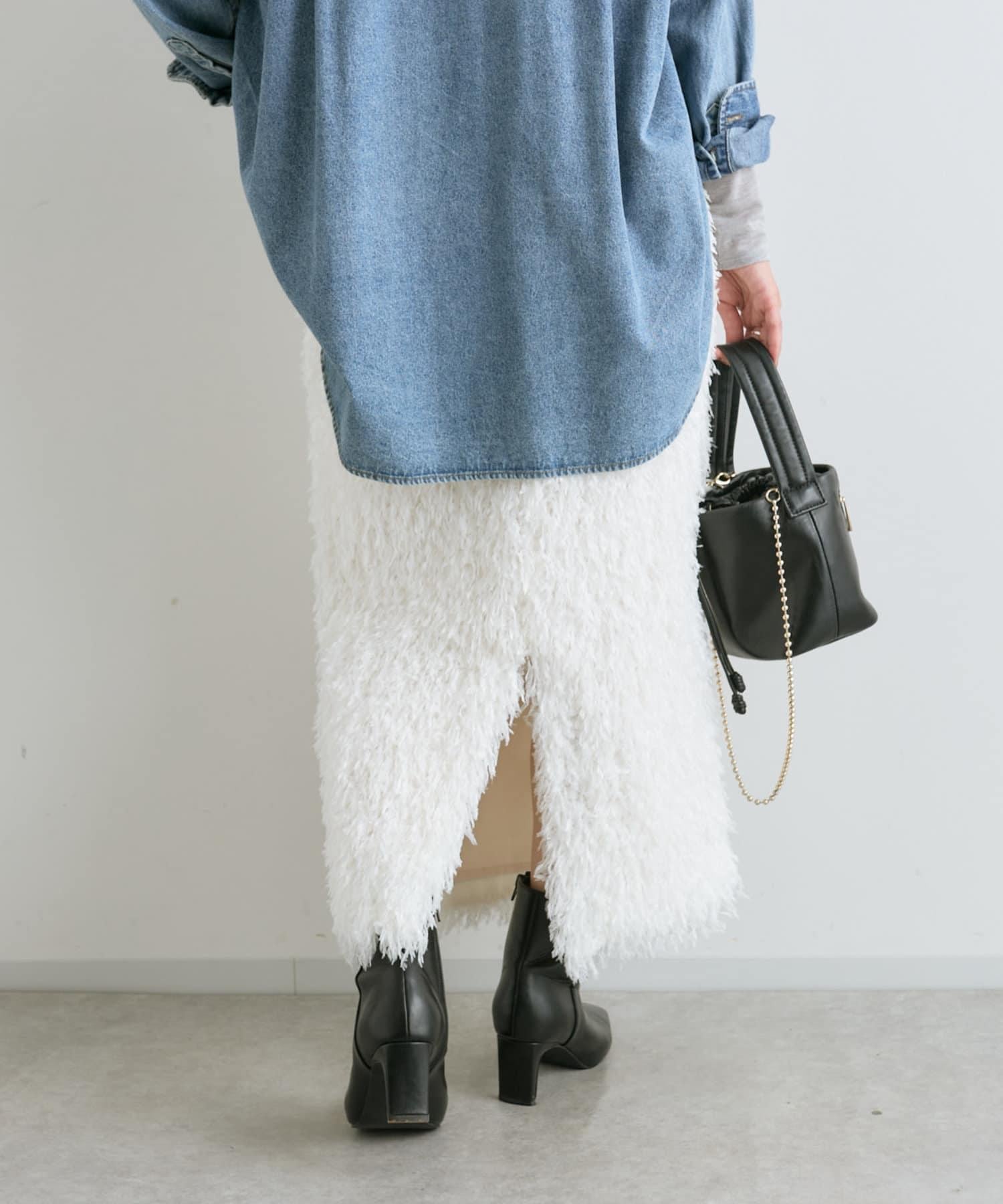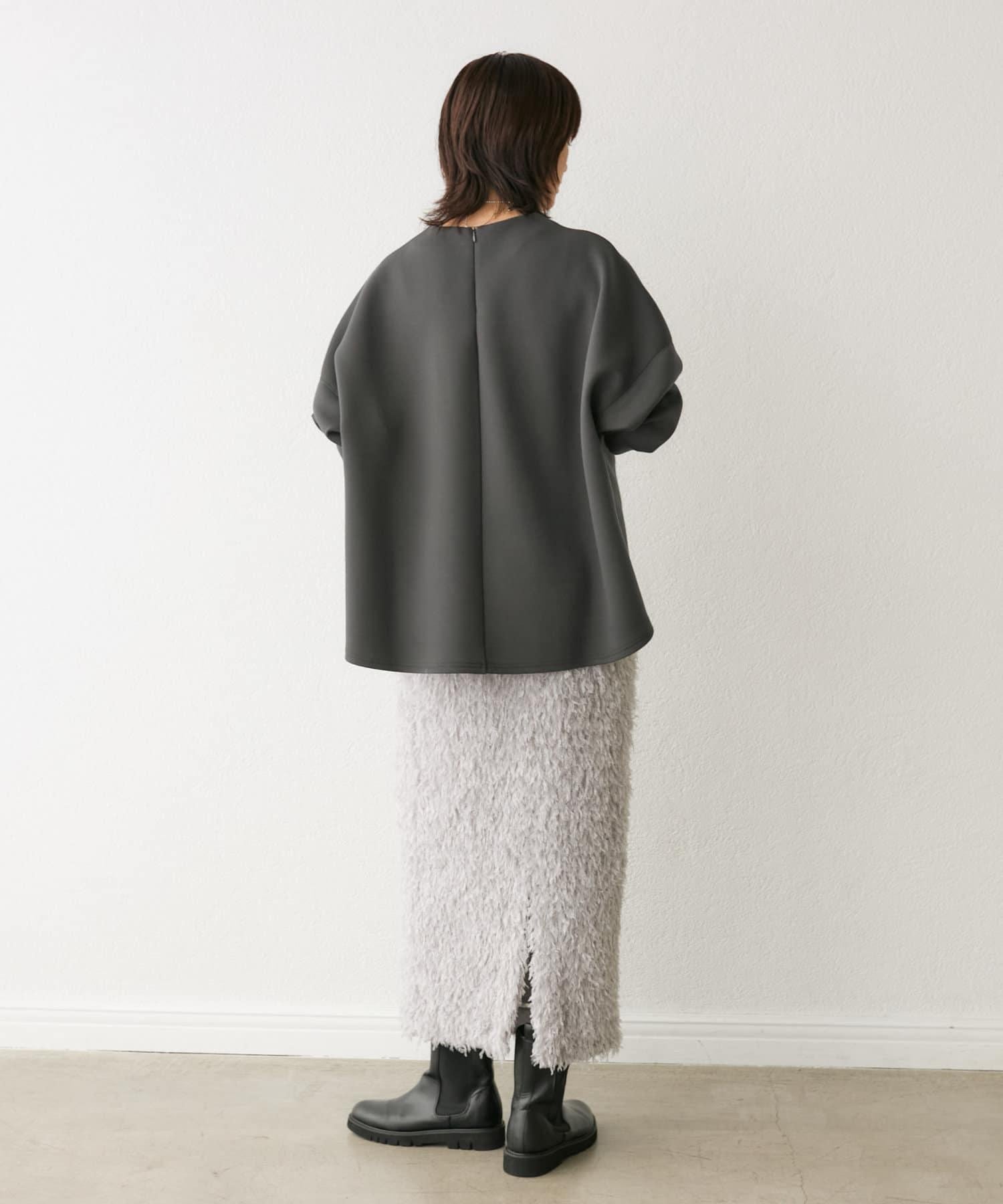 華麗的緊身裙,蓬鬆的毛茸茸面料讓人聯想到羽毛。