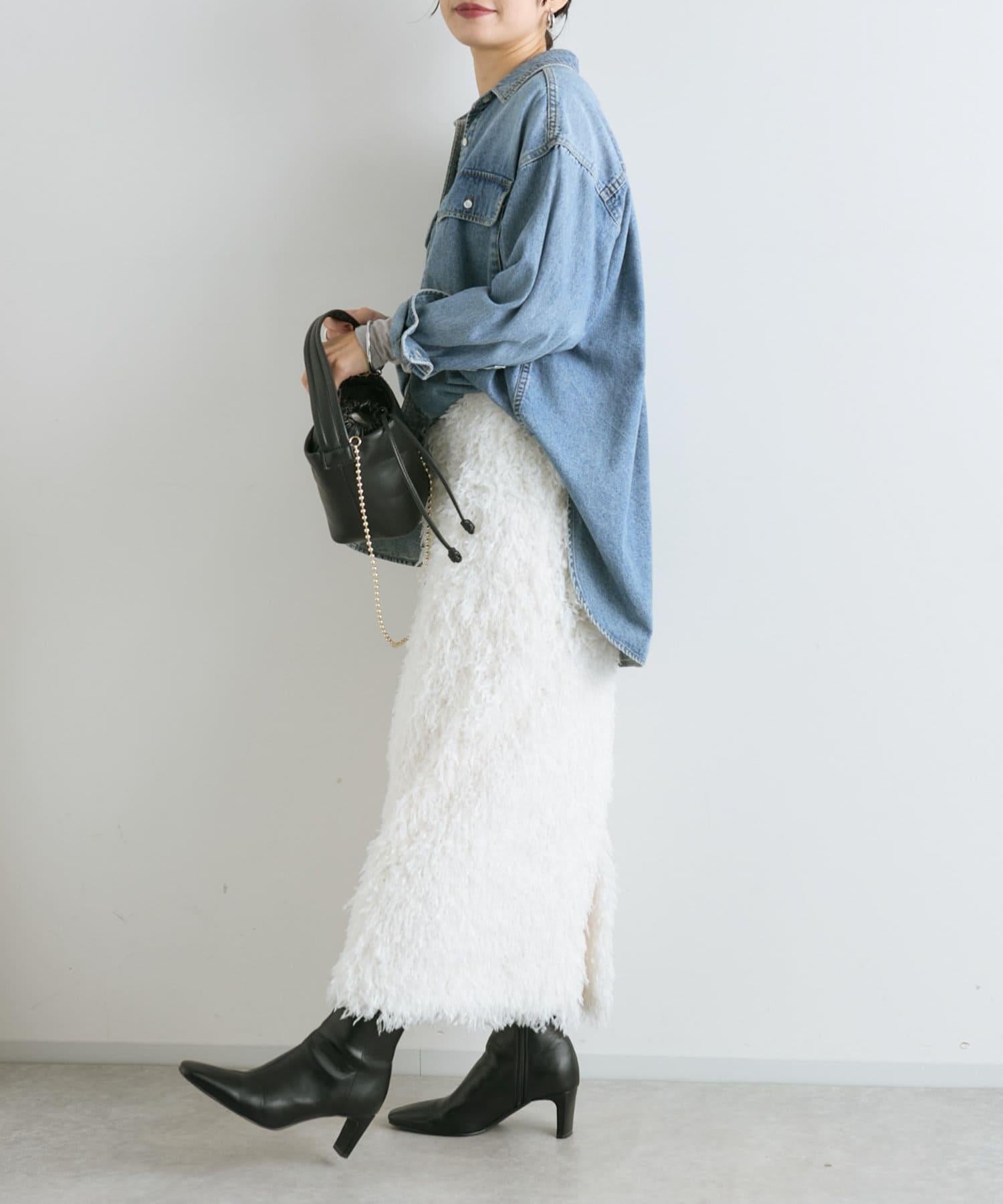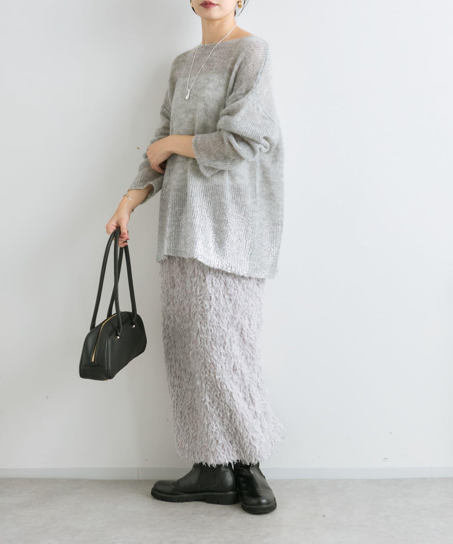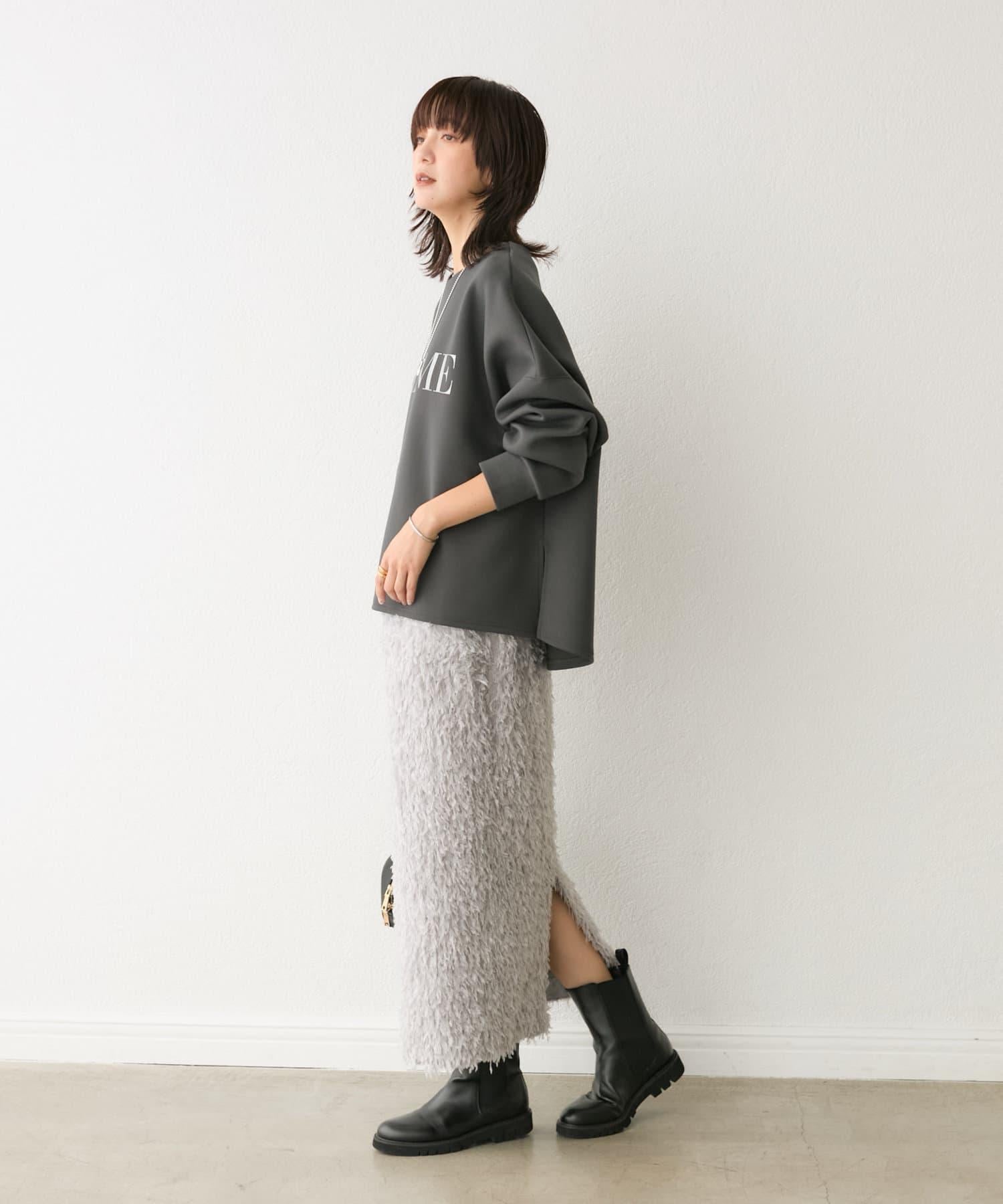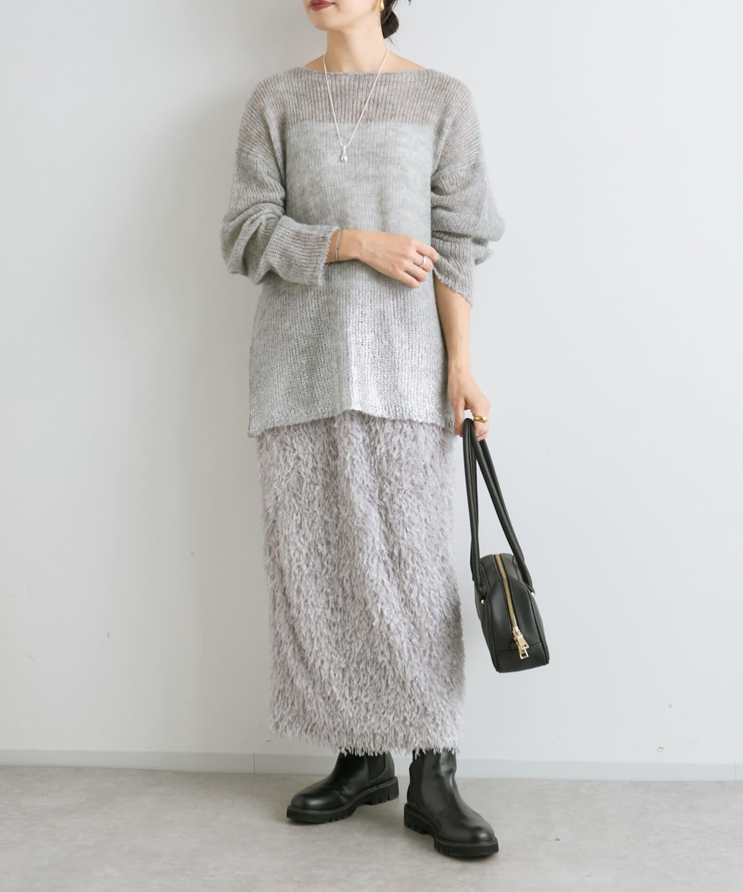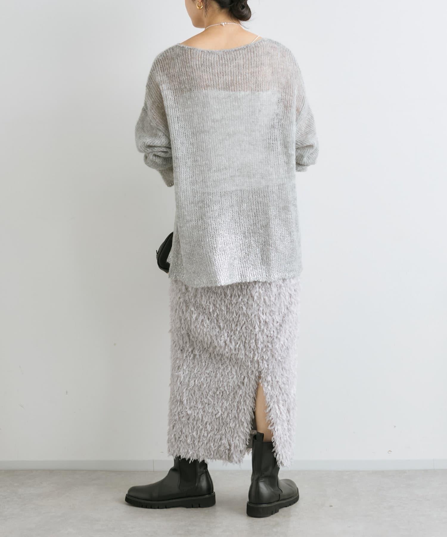 華麗的緊身裙,蓬鬆的毛茸茸面料讓人聯想到羽毛。