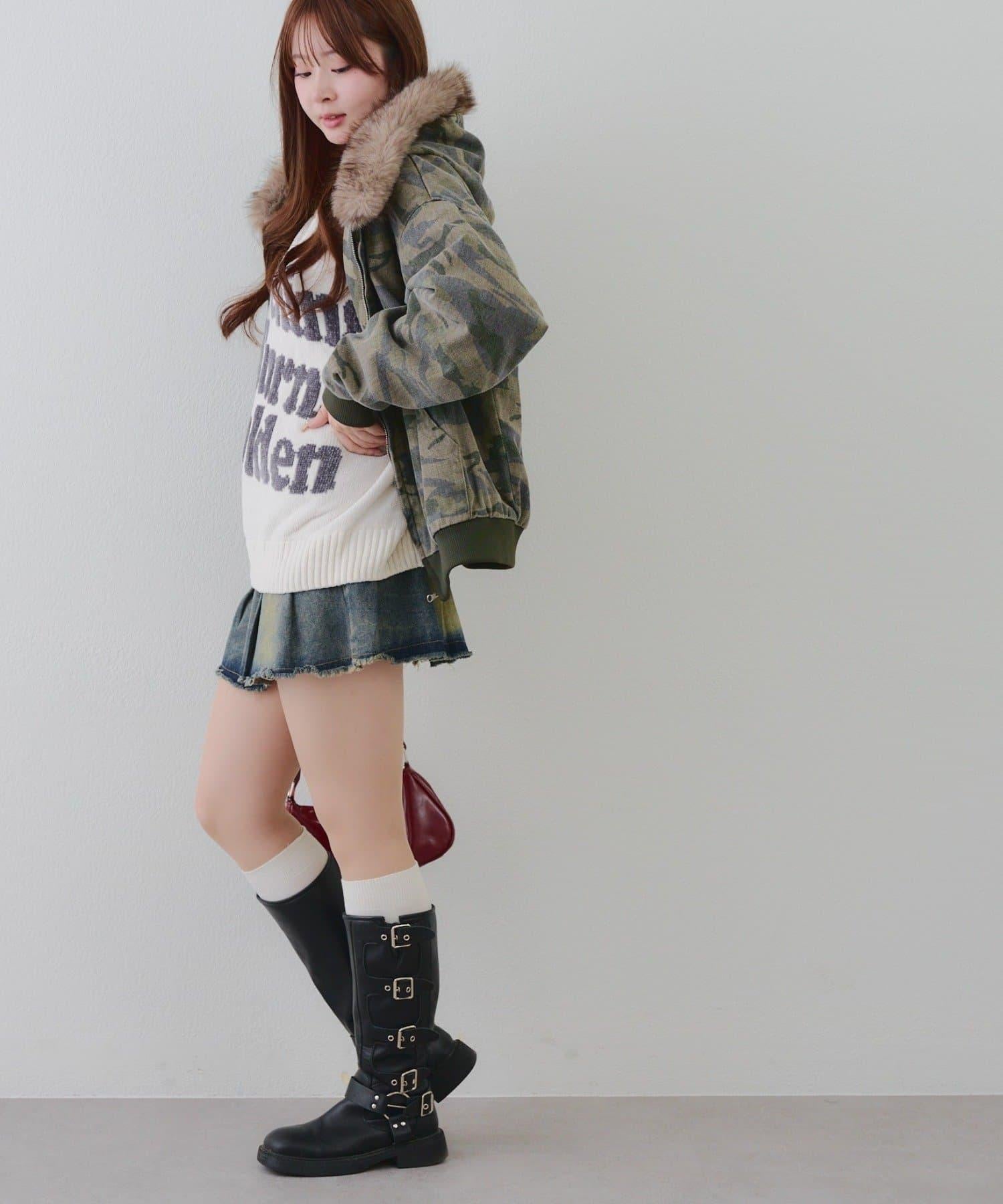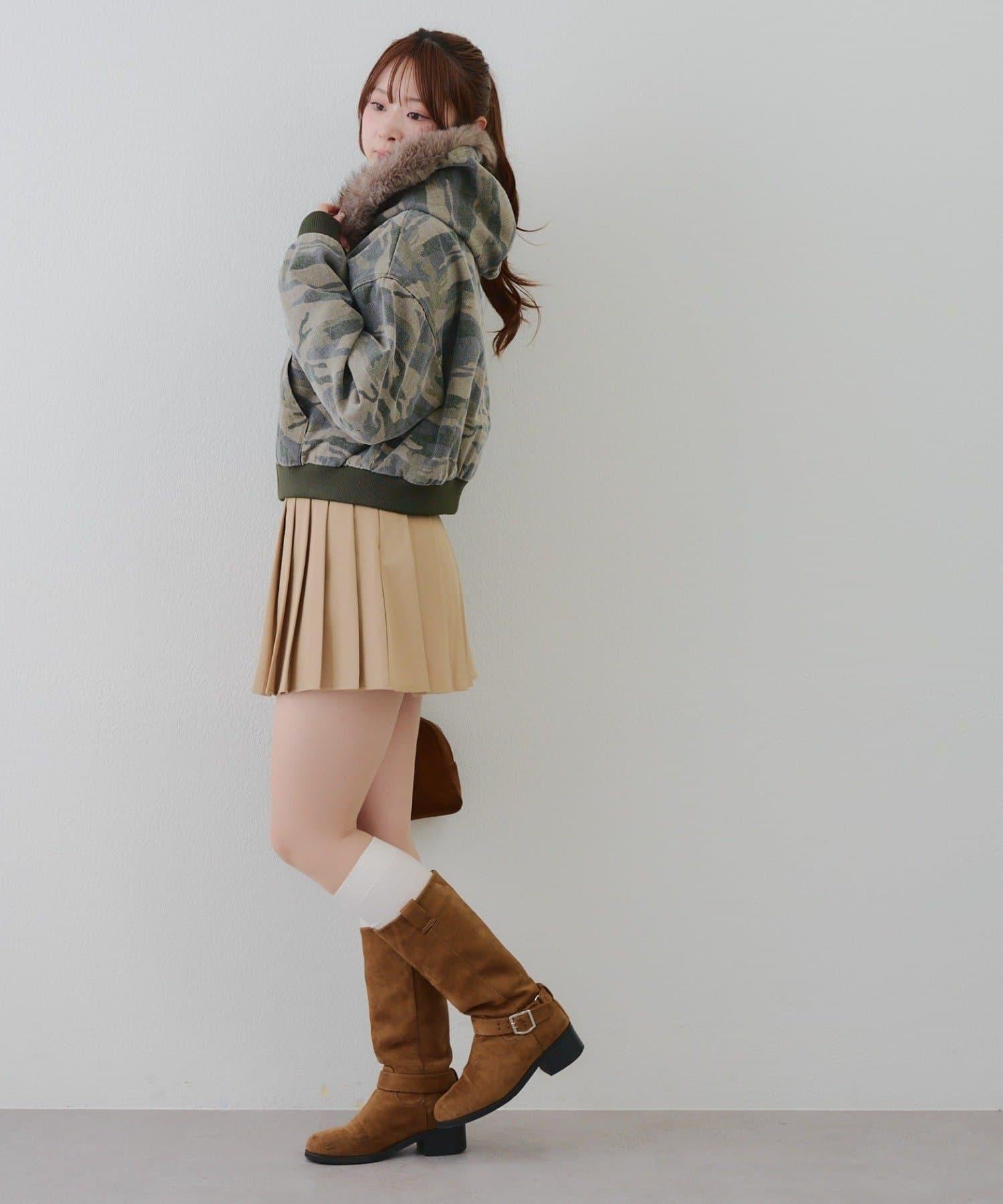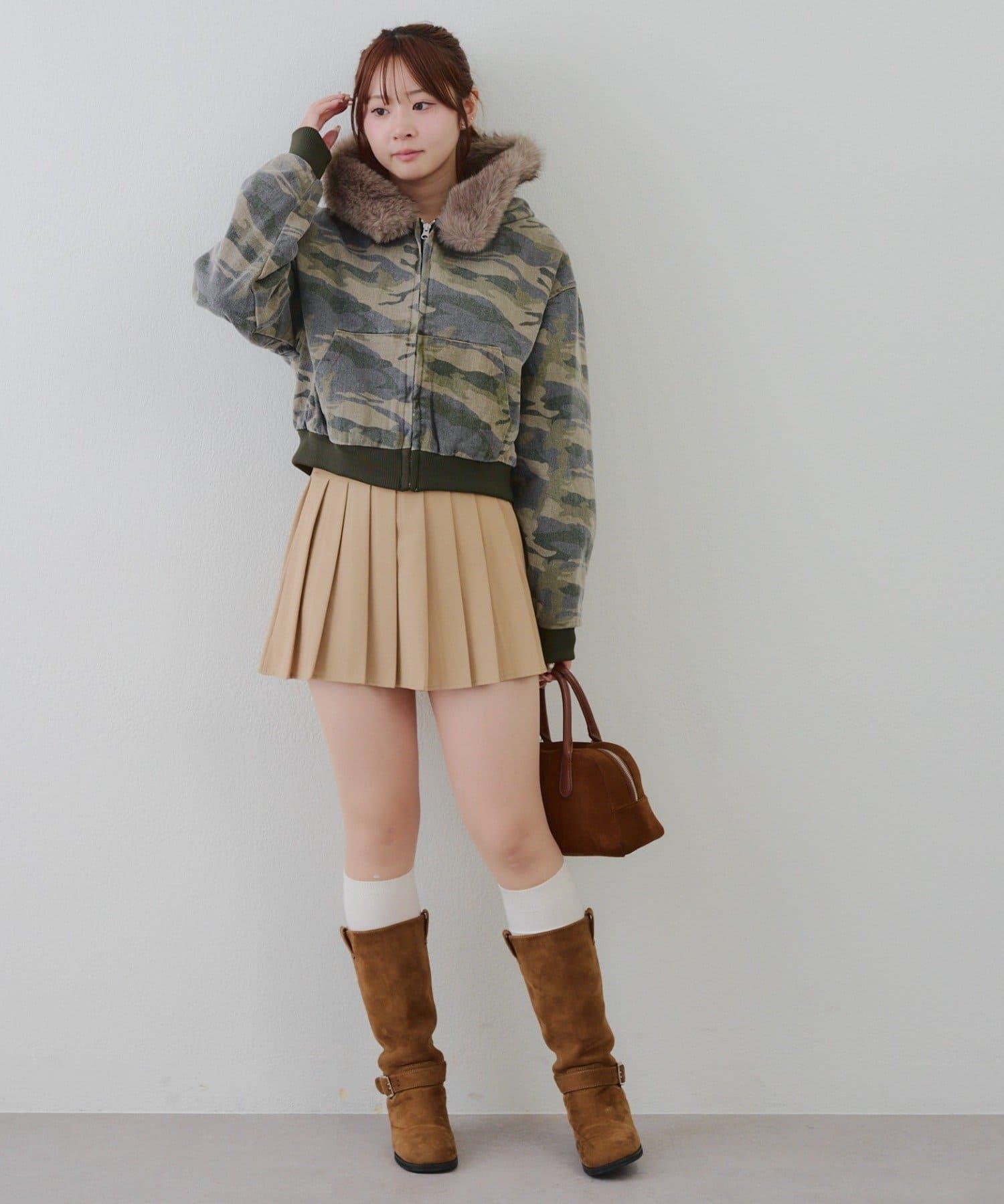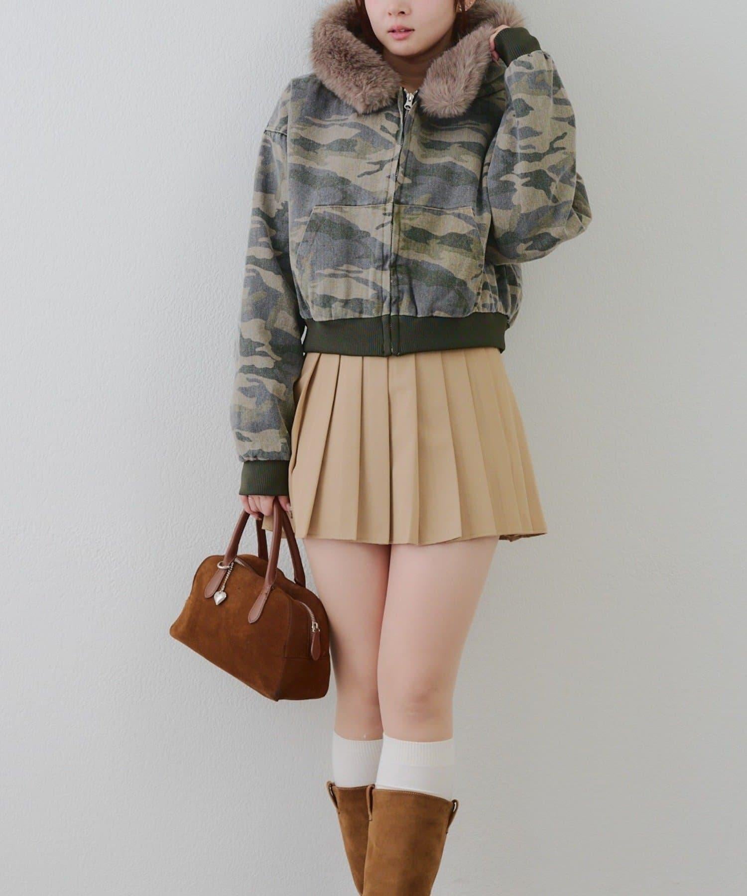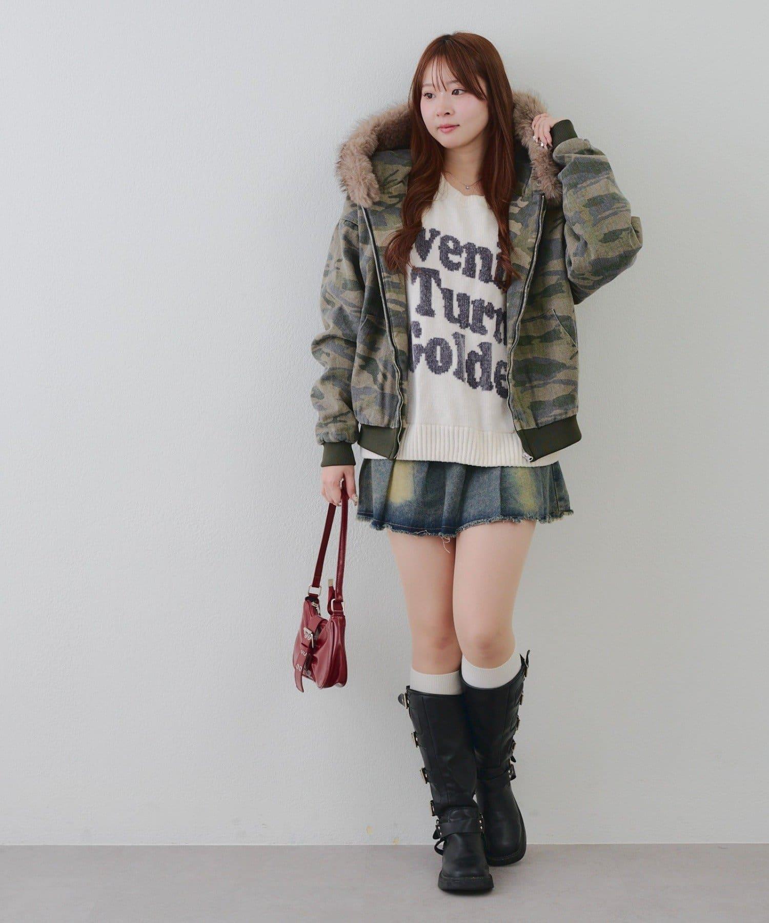 搭配百褶迷你裙和長筒靴,盡顯休閒少女風。