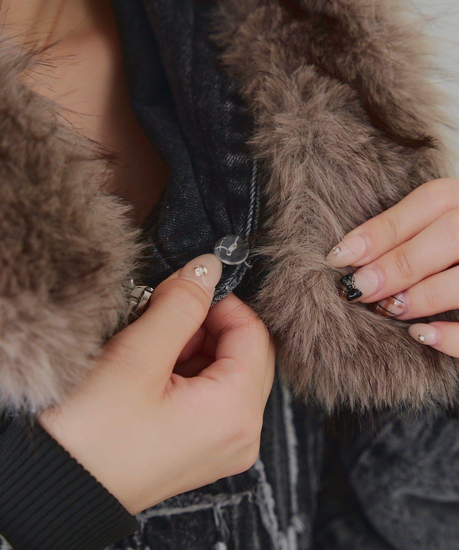 這是一件帶皮草的罩衫。帶皮草的罩衫。