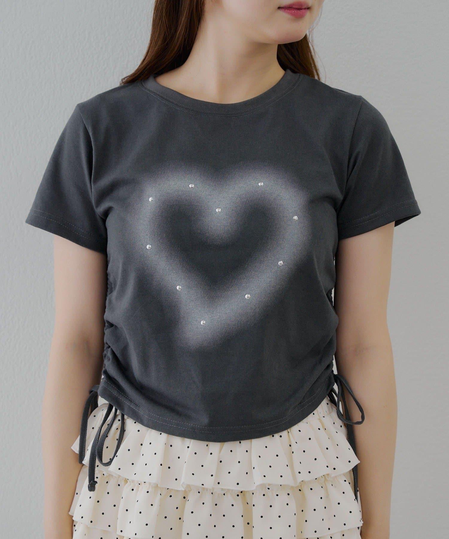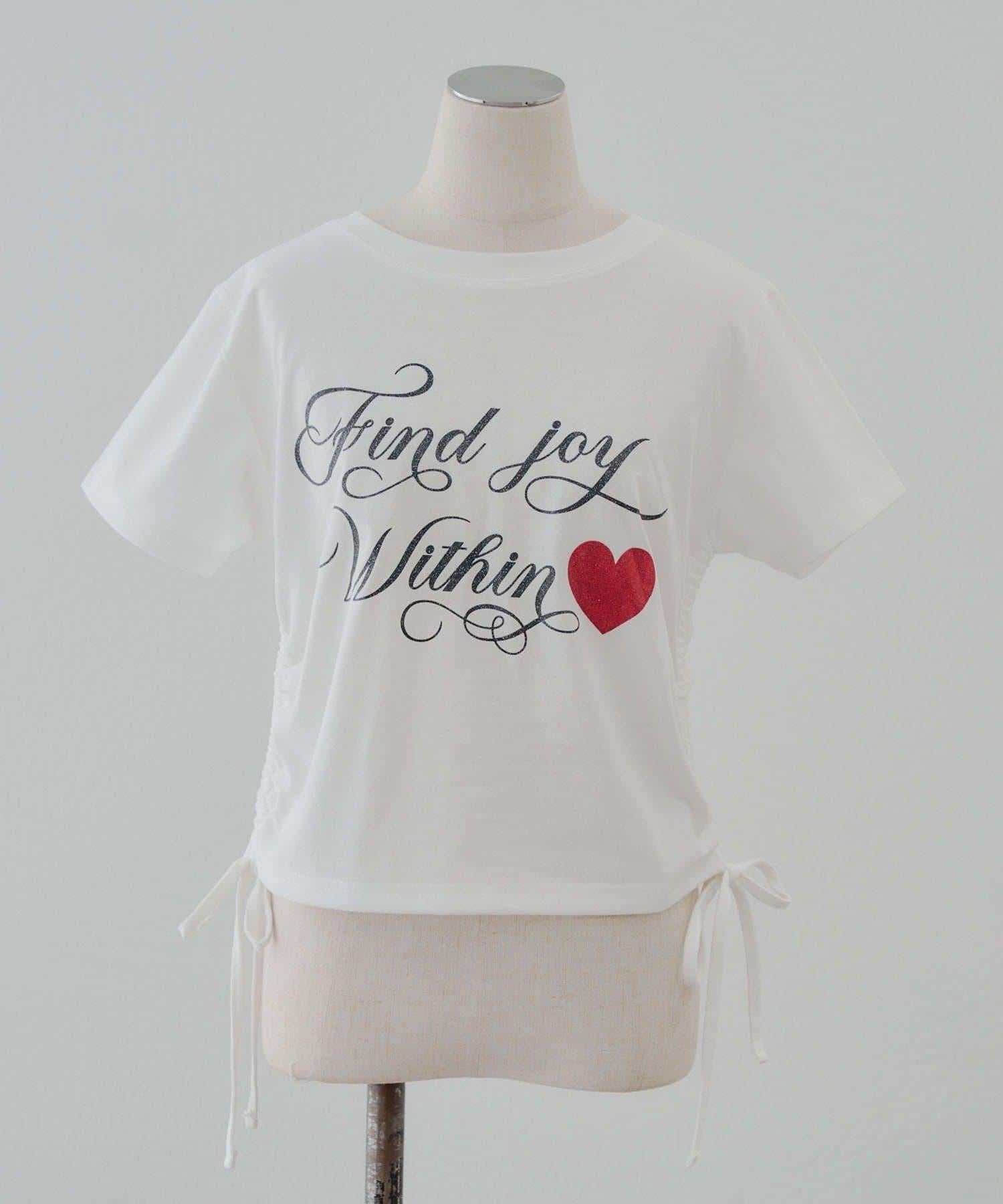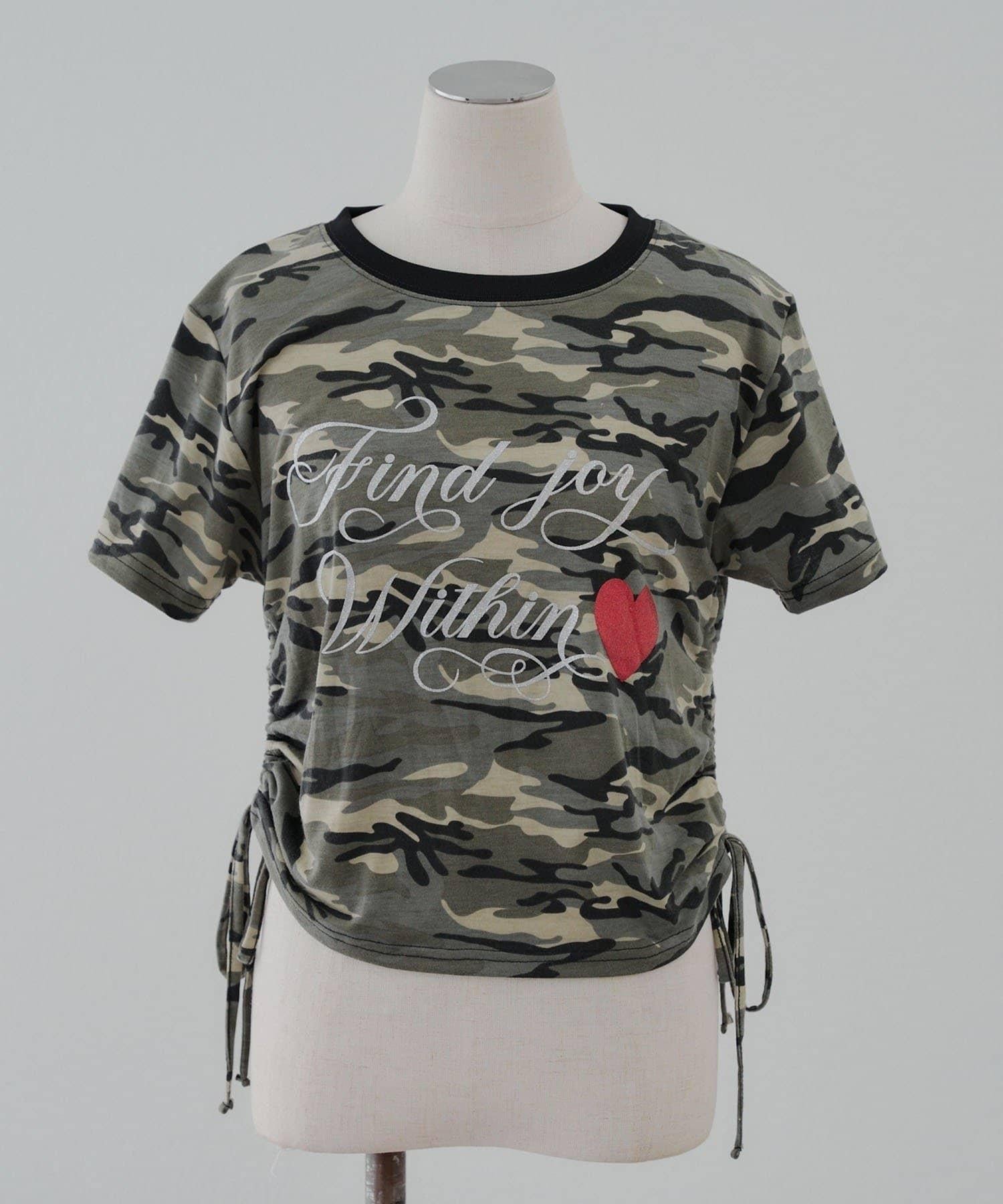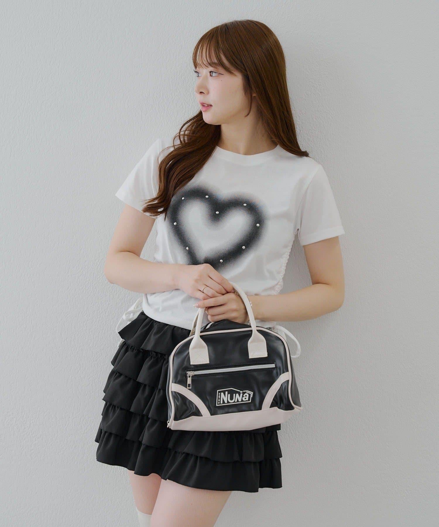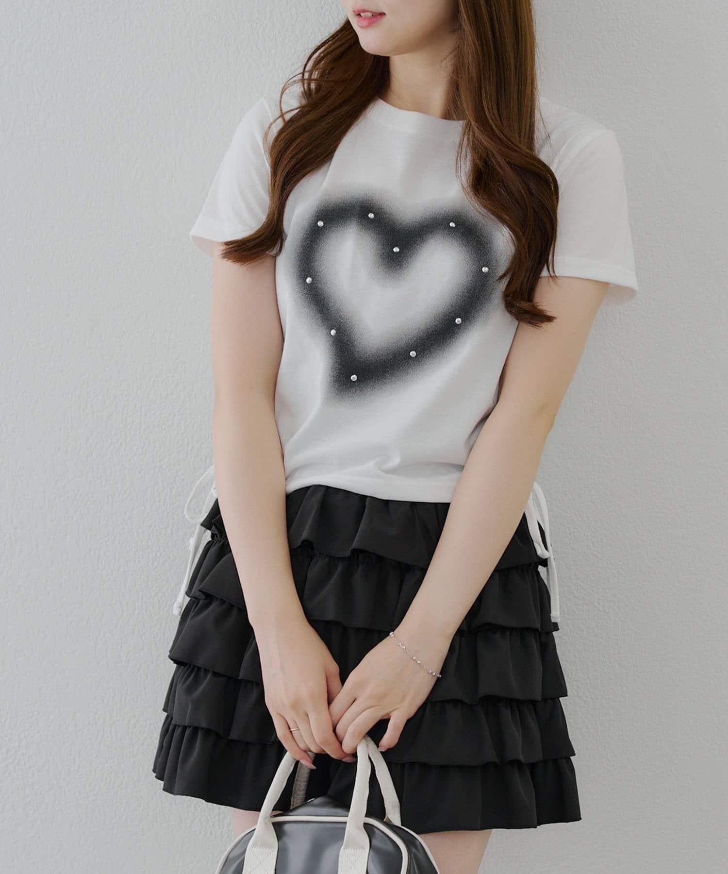 這款 T 恤長度較短,具有 Y2K 感,兩側有抽繩、斜襟和薄片印花。