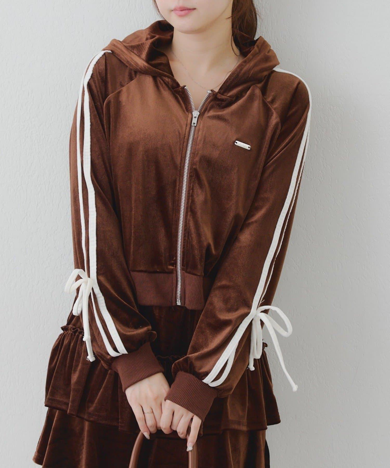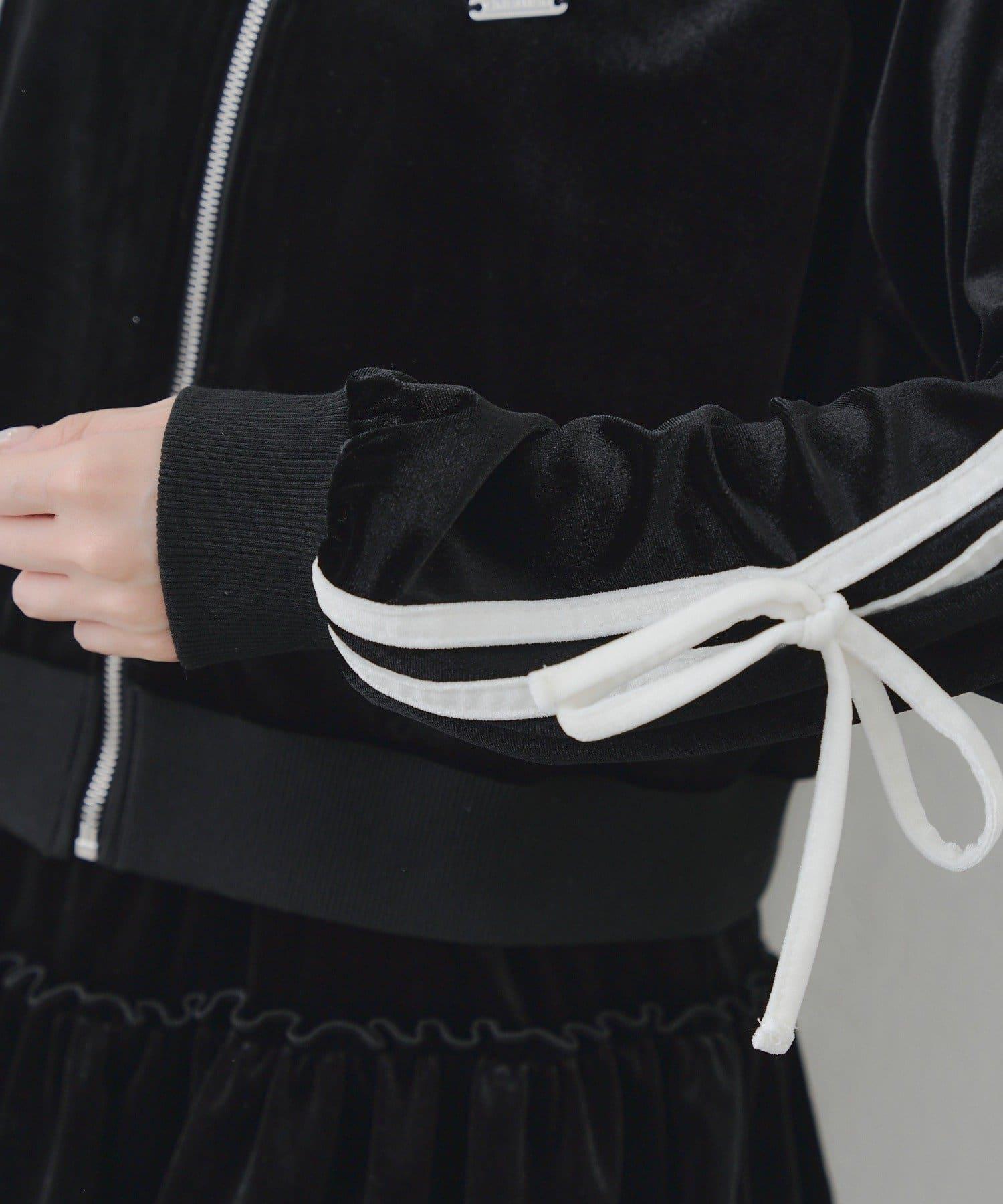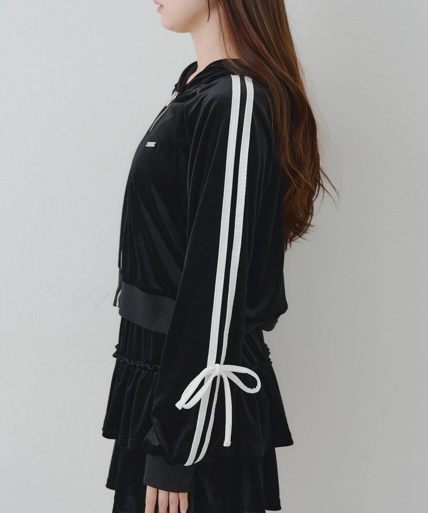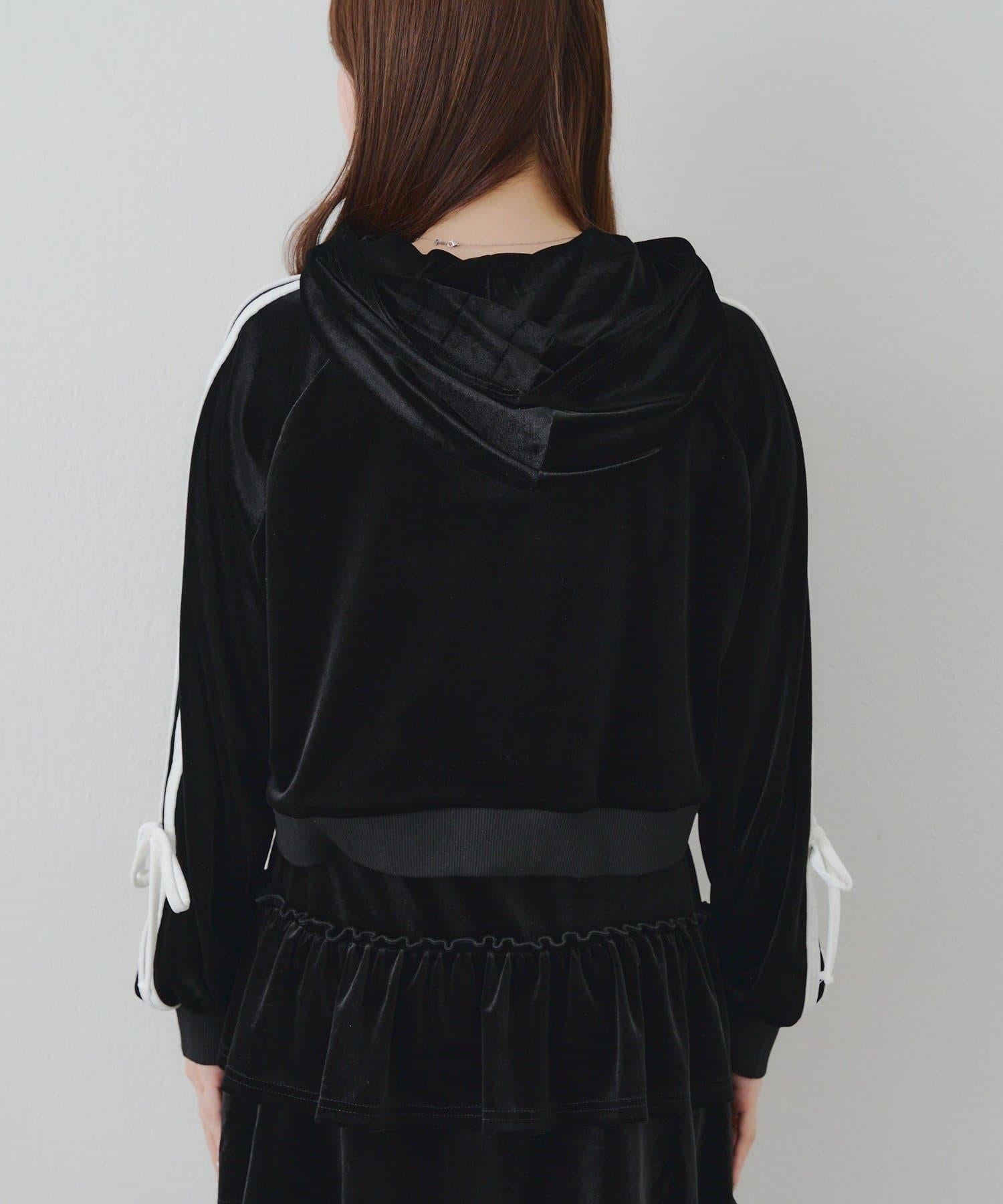 連帽外套的袖子上有可愛的絲帶設計。
