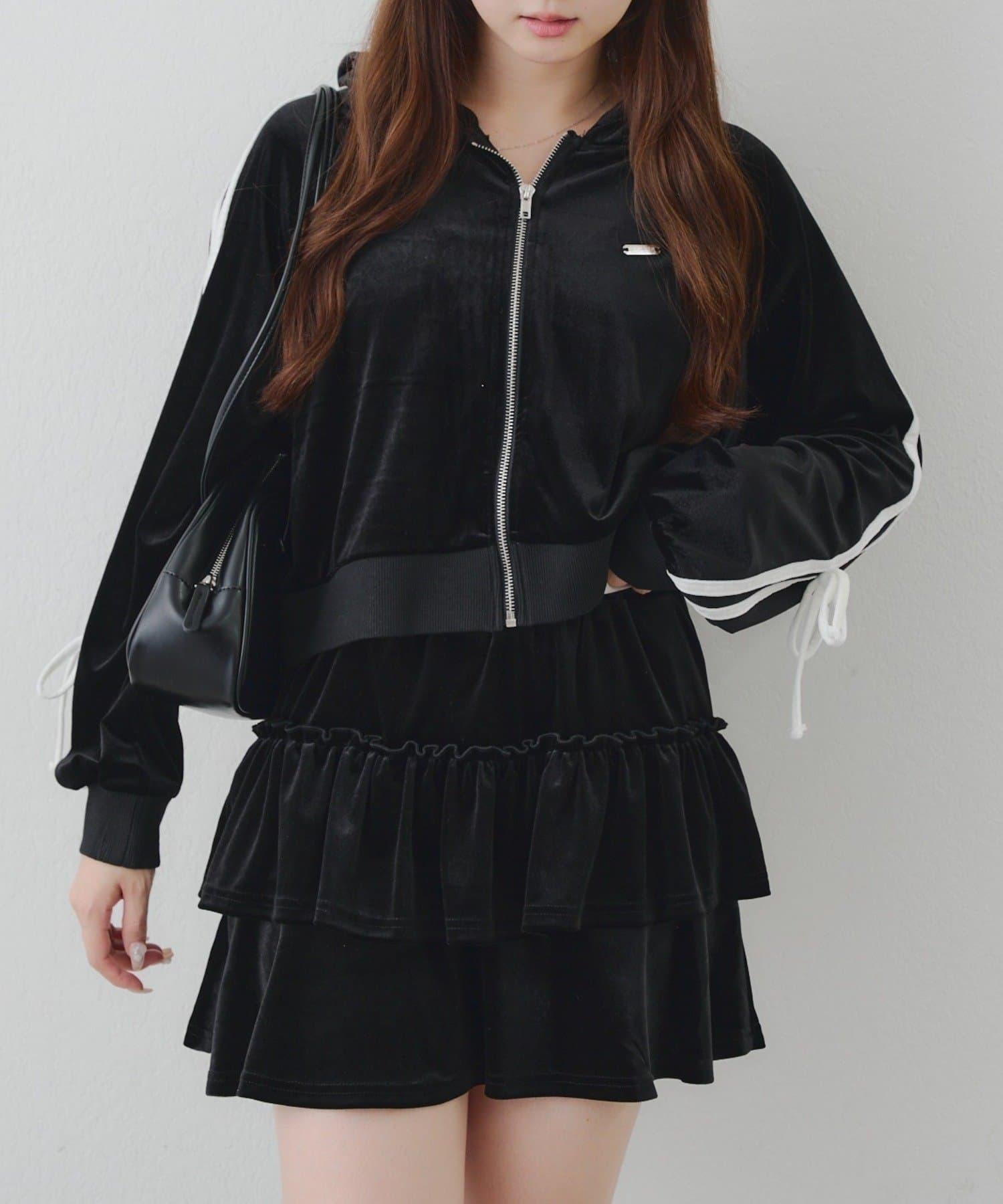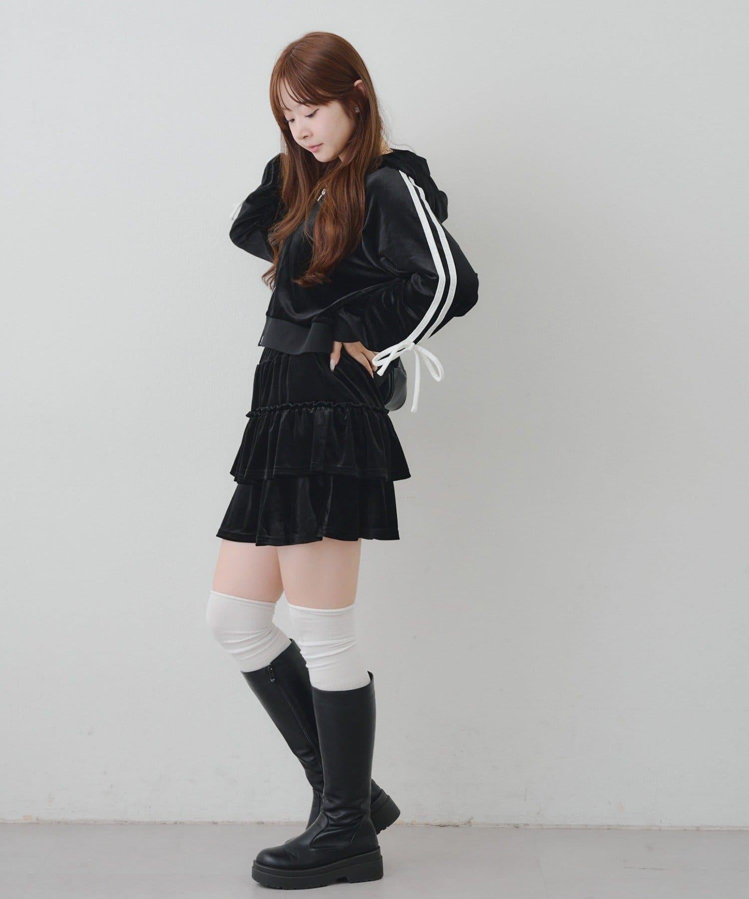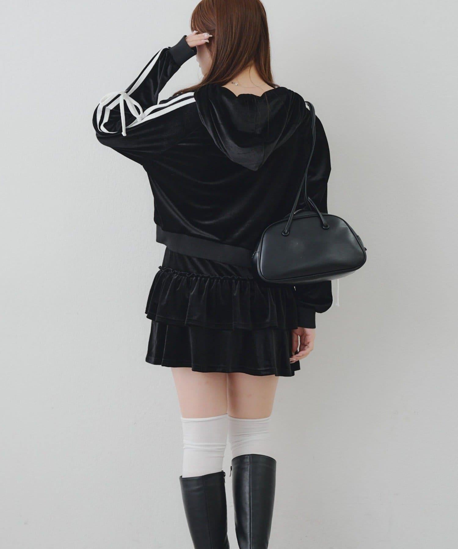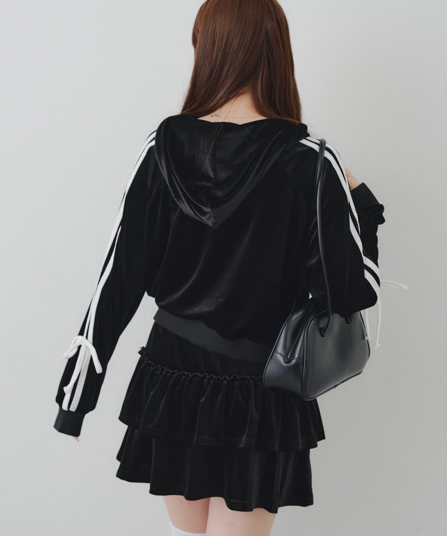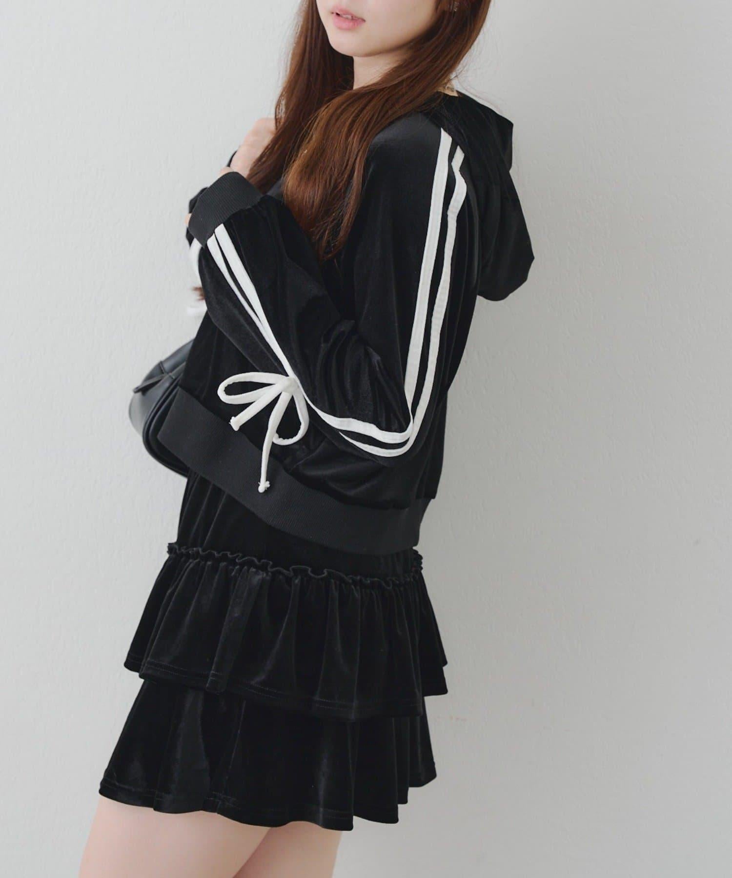 【RMAF】【套裝】袖部蝴蝶結天鵝絨連帽衛衣 & 百褶迷你裙