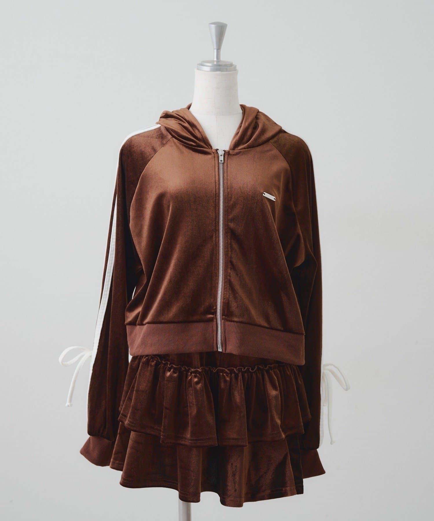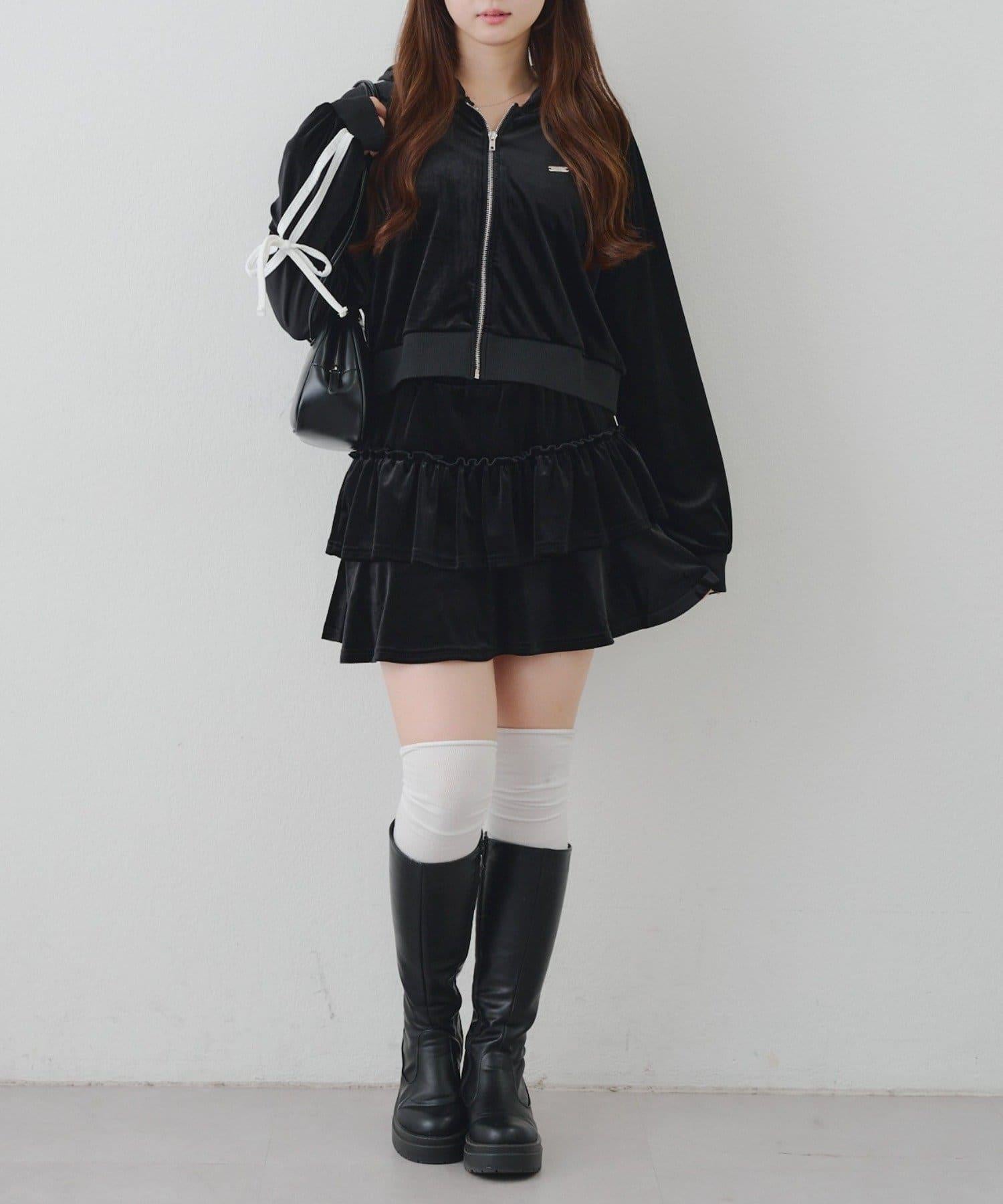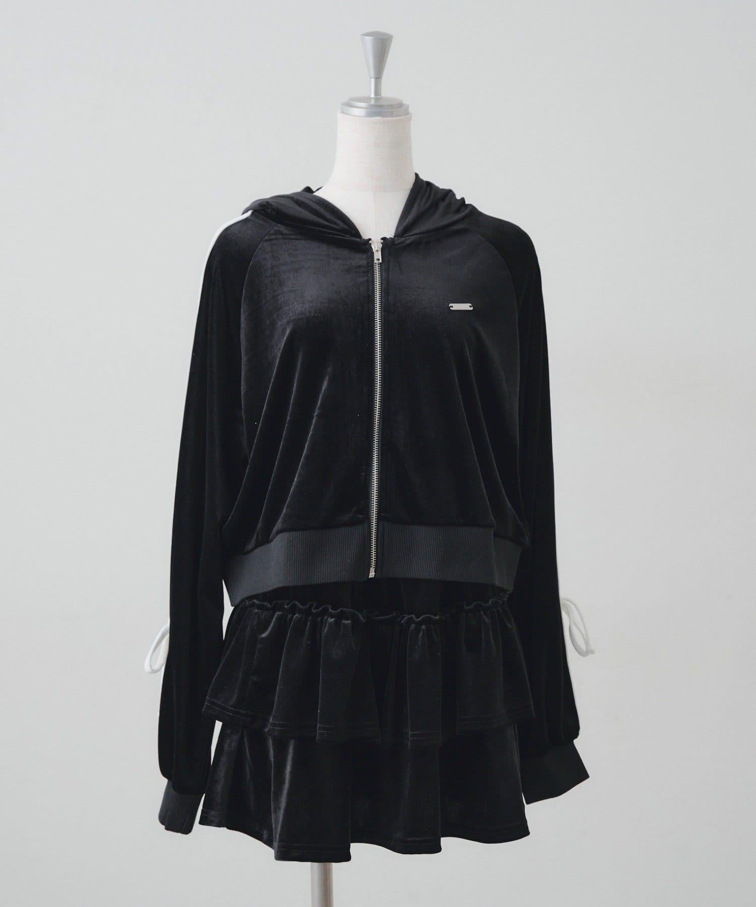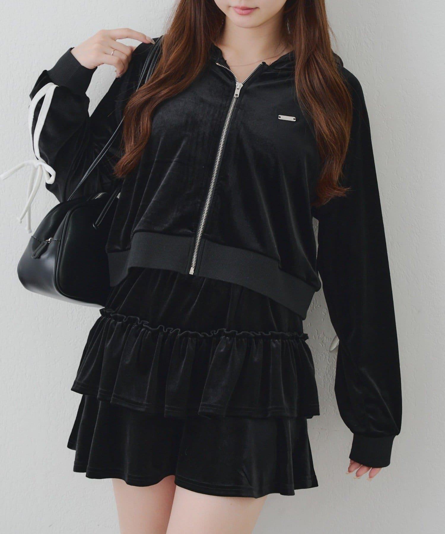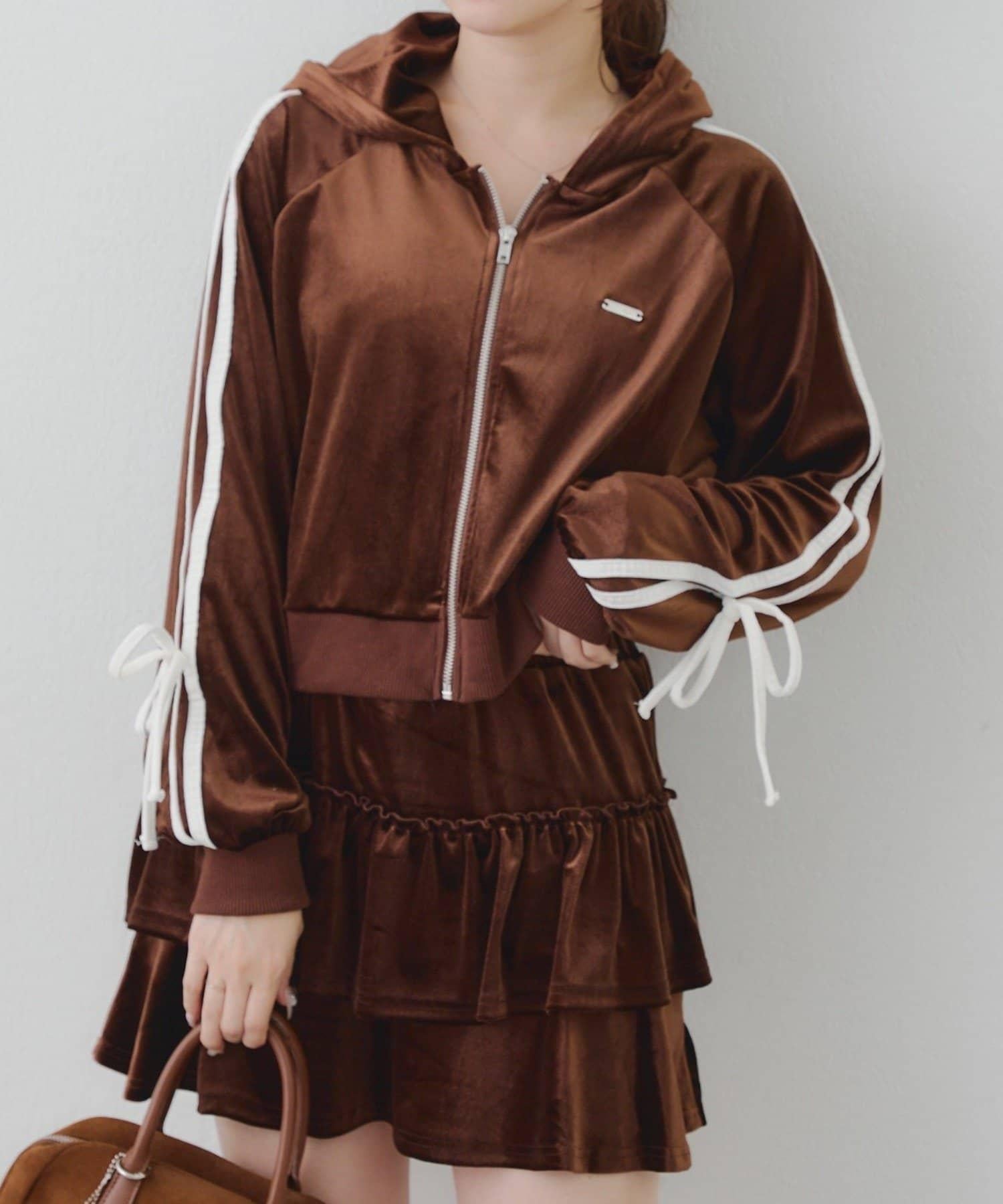 【RMAF】【套裝】袖部蝴蝶結天鵝絨連帽衛衣 & 百褶迷你裙