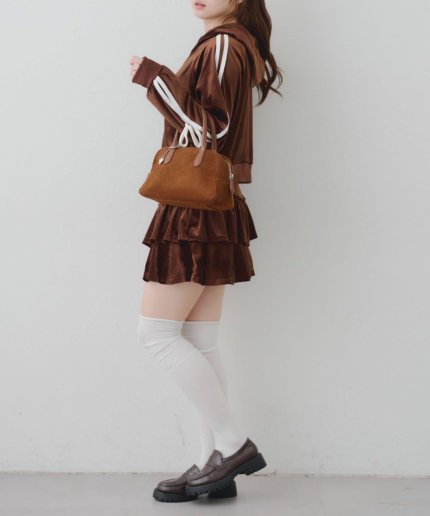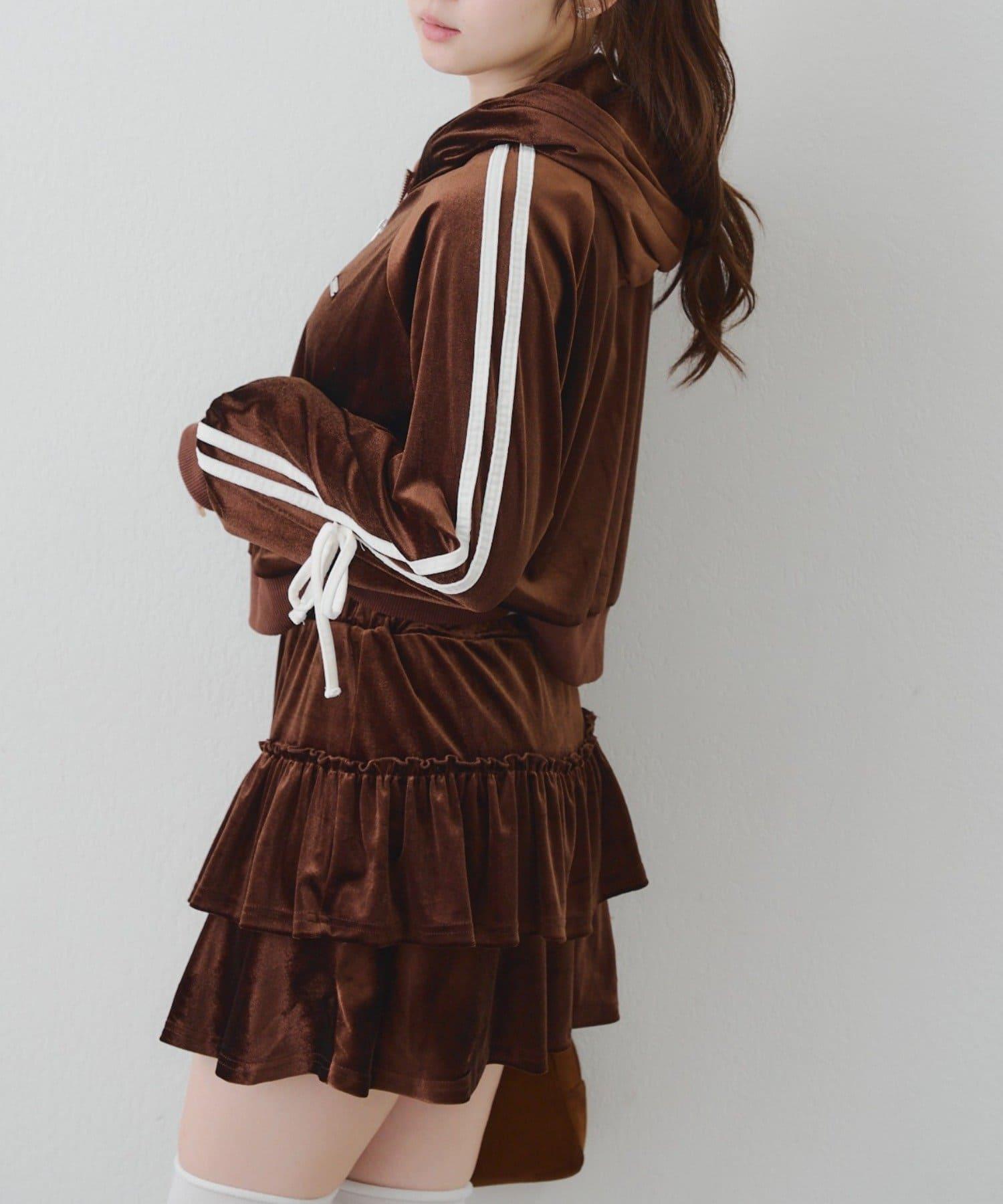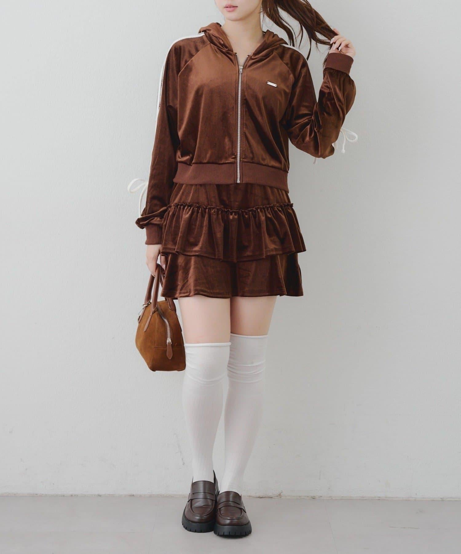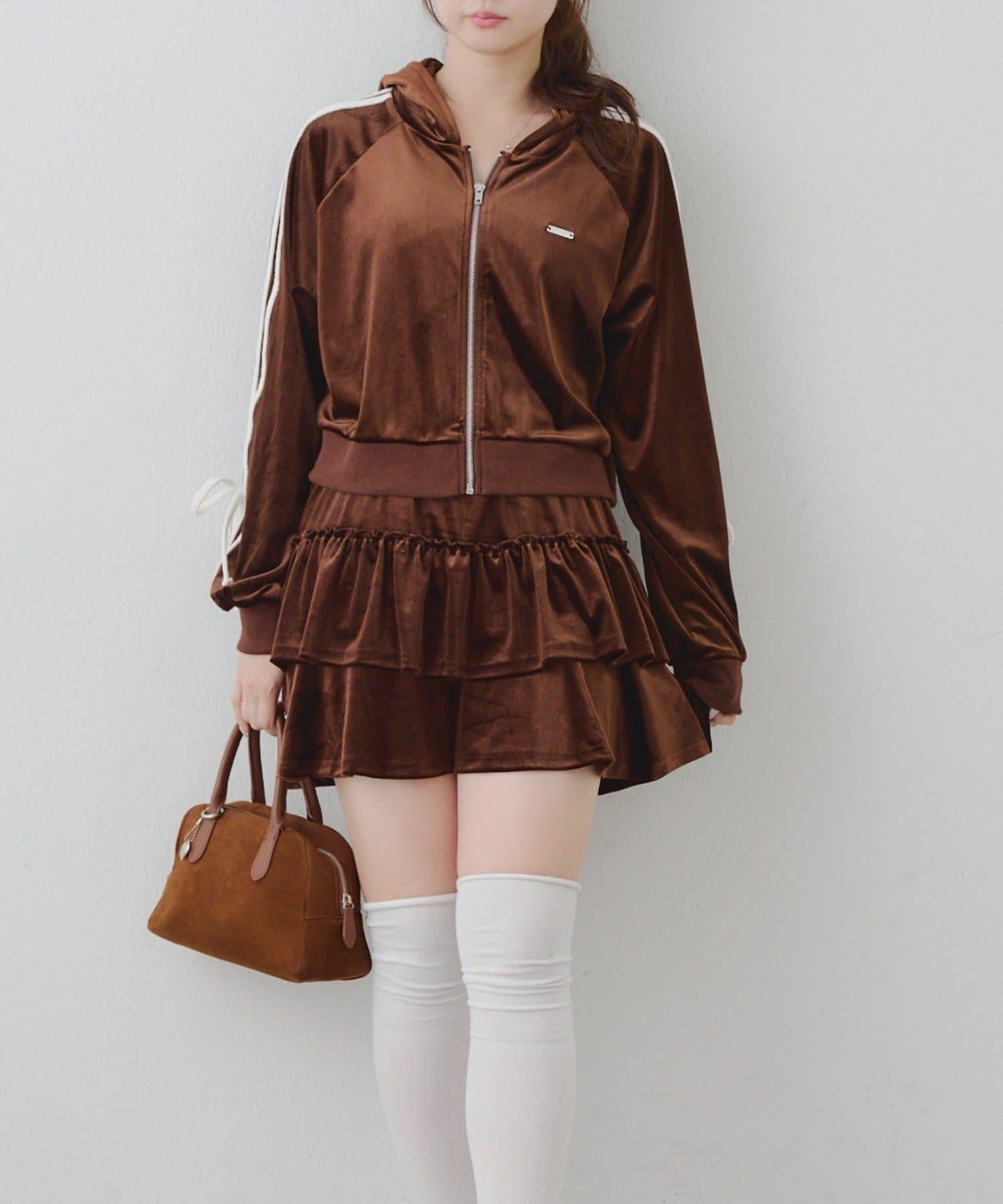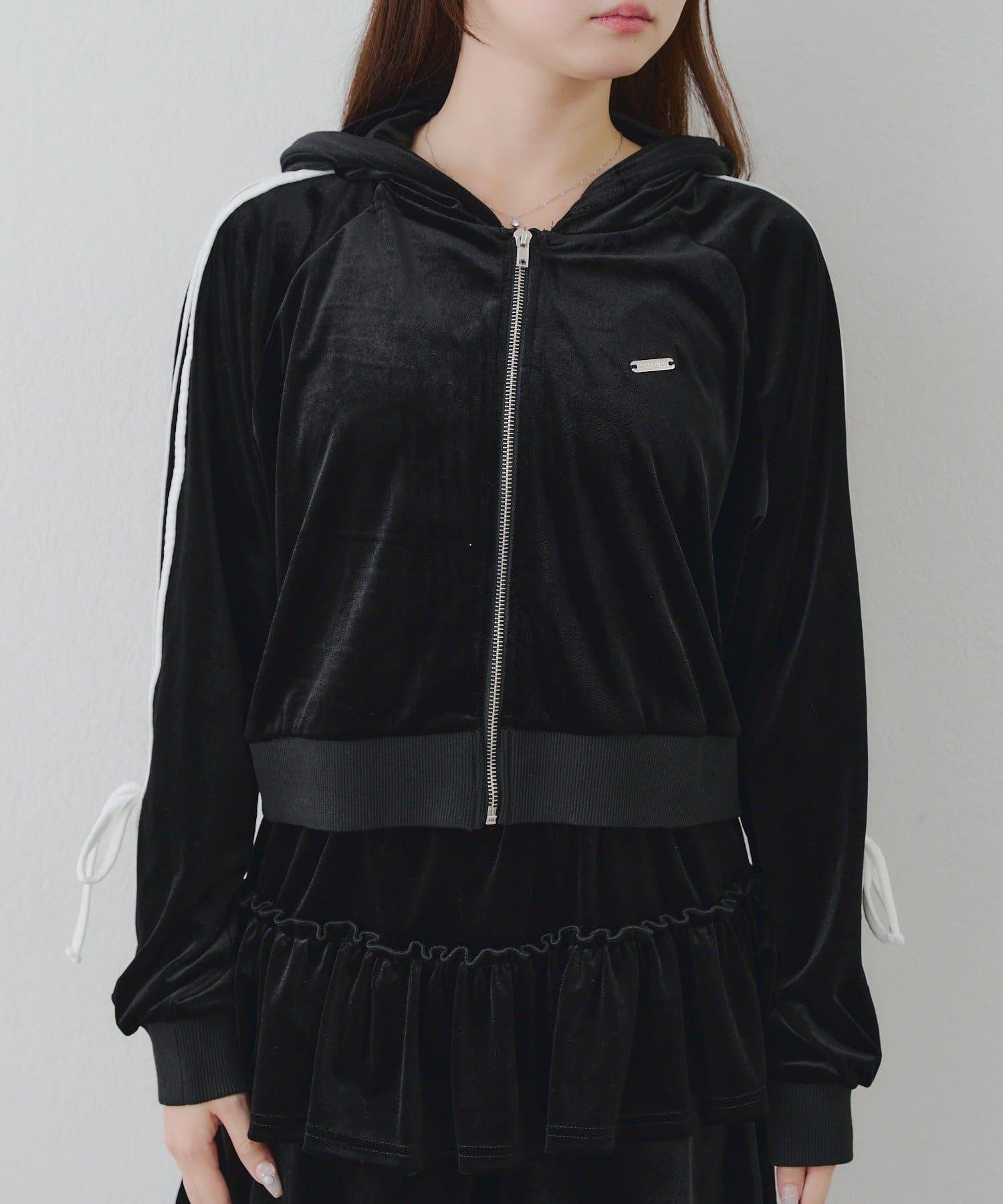 【RMAF】【套裝】袖部蝴蝶結天鵝絨連帽衛衣 & 百褶迷你裙