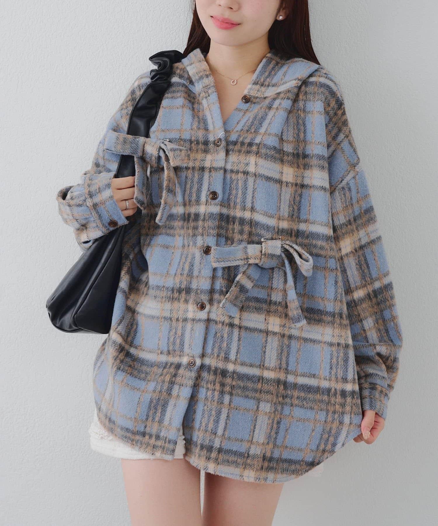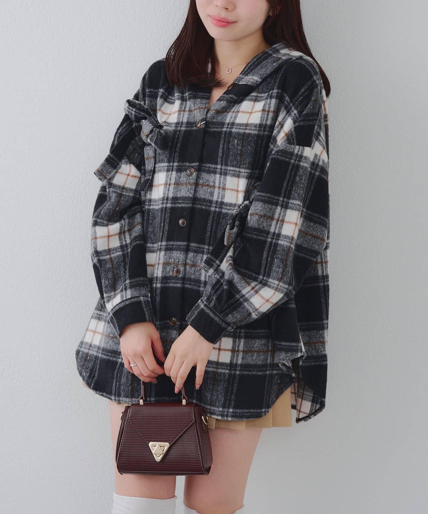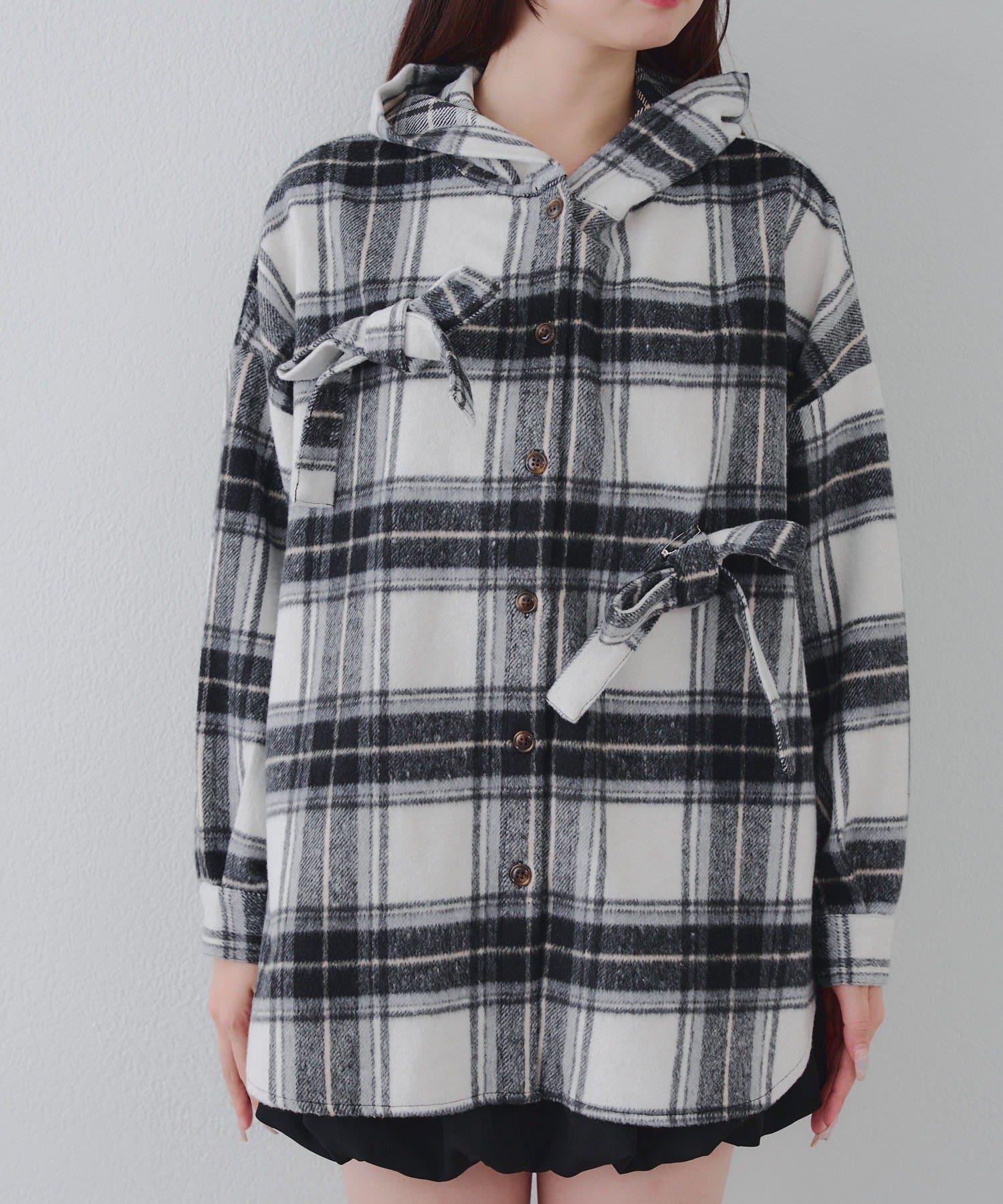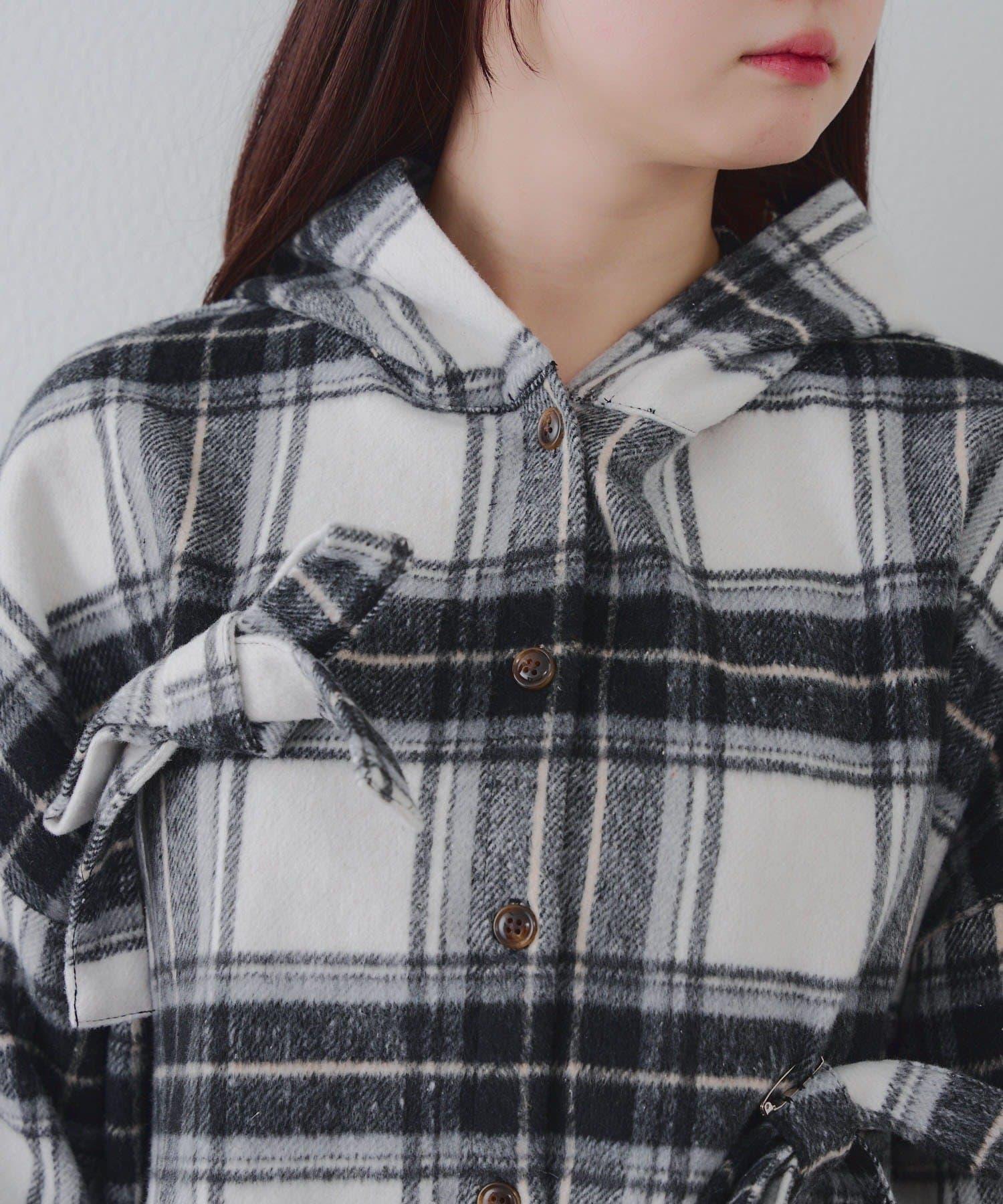 【RMAF】帶蝴蝶結格子連帽襯衫