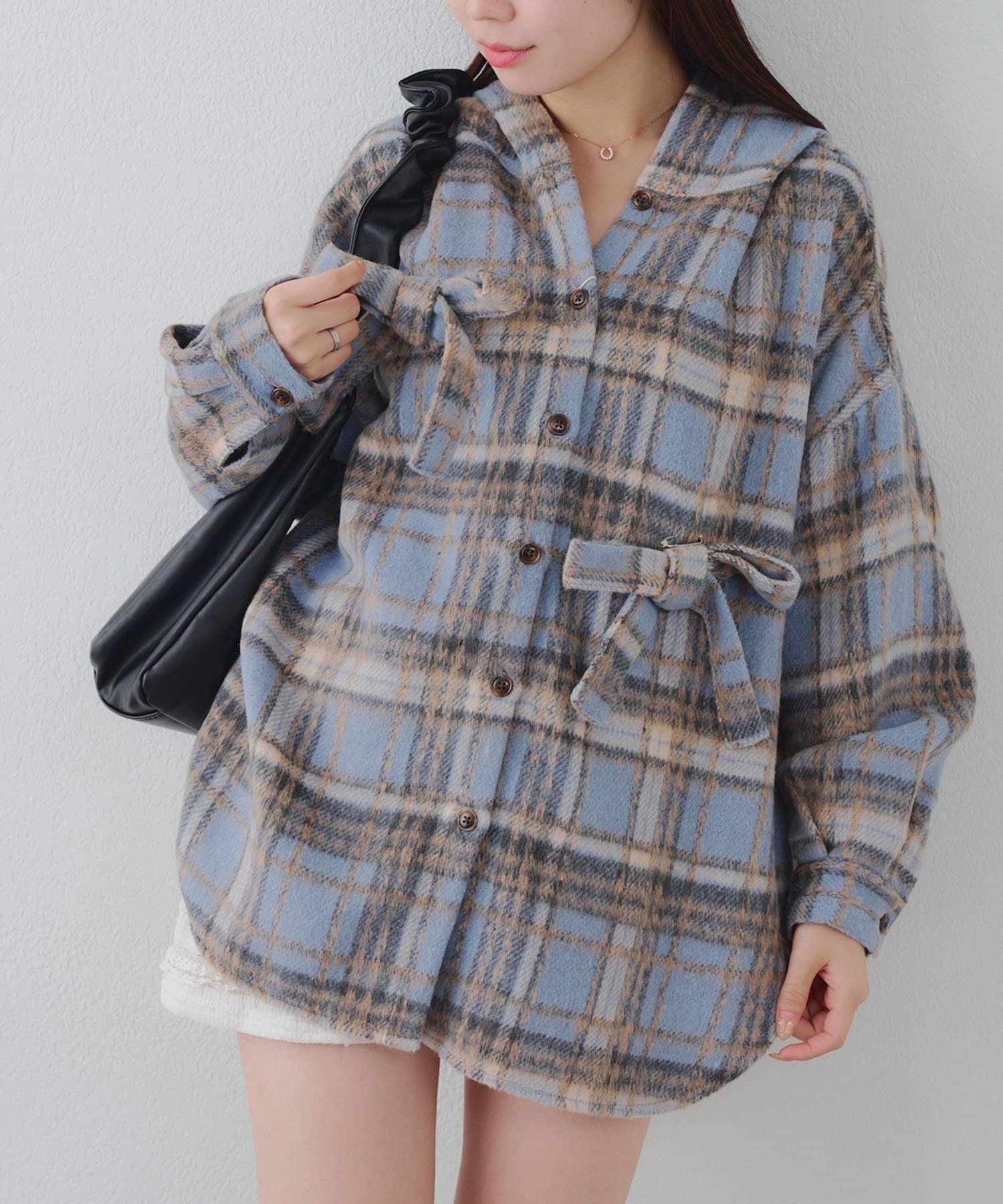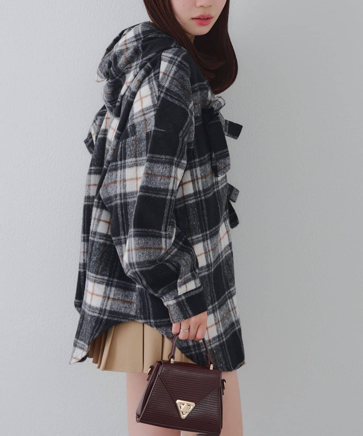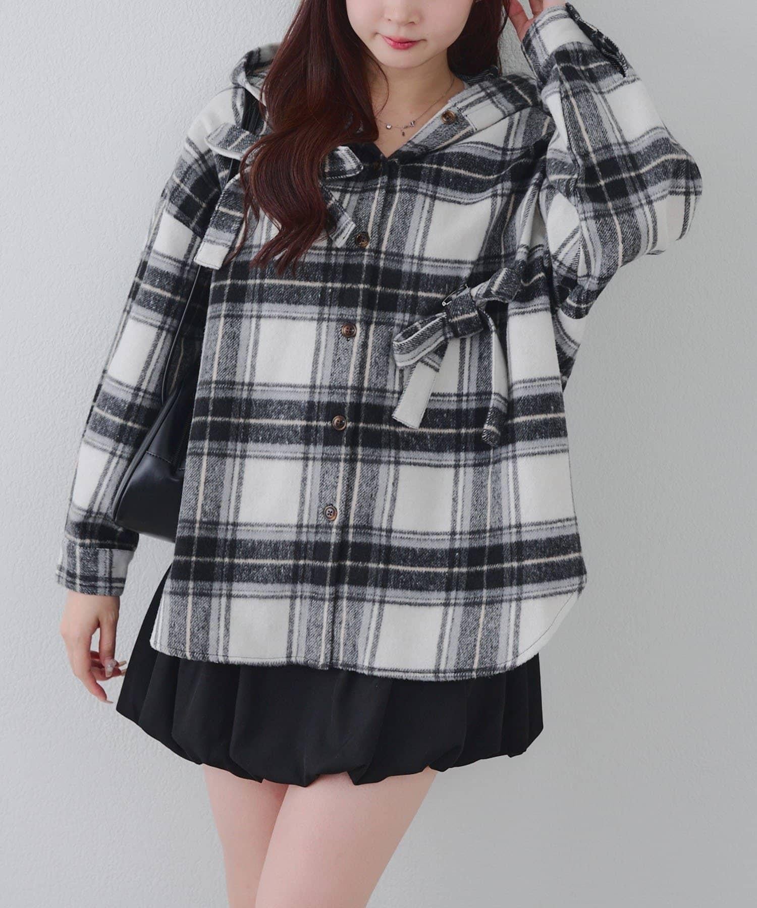 【RMAF】帶蝴蝶結格子連帽襯衫
