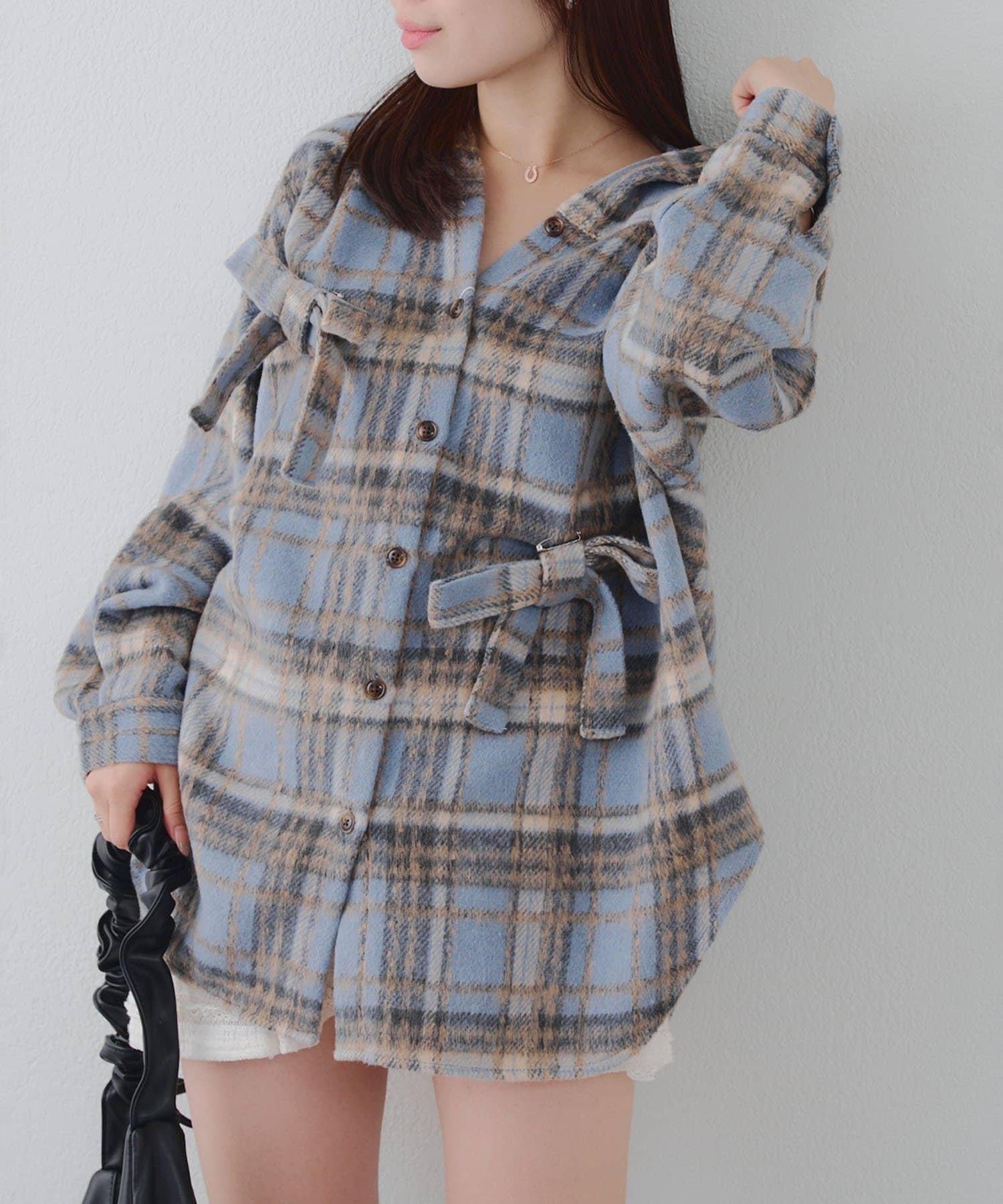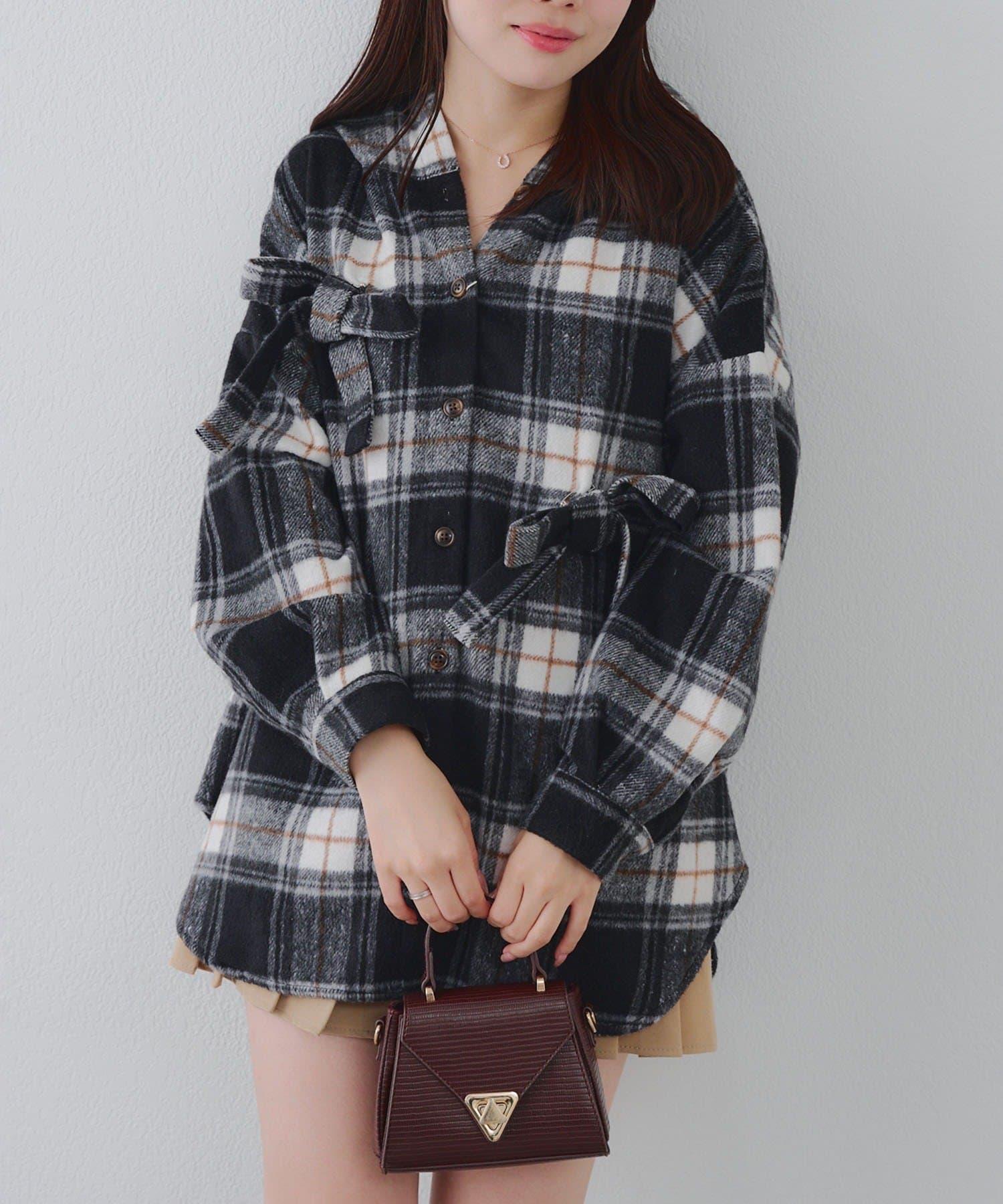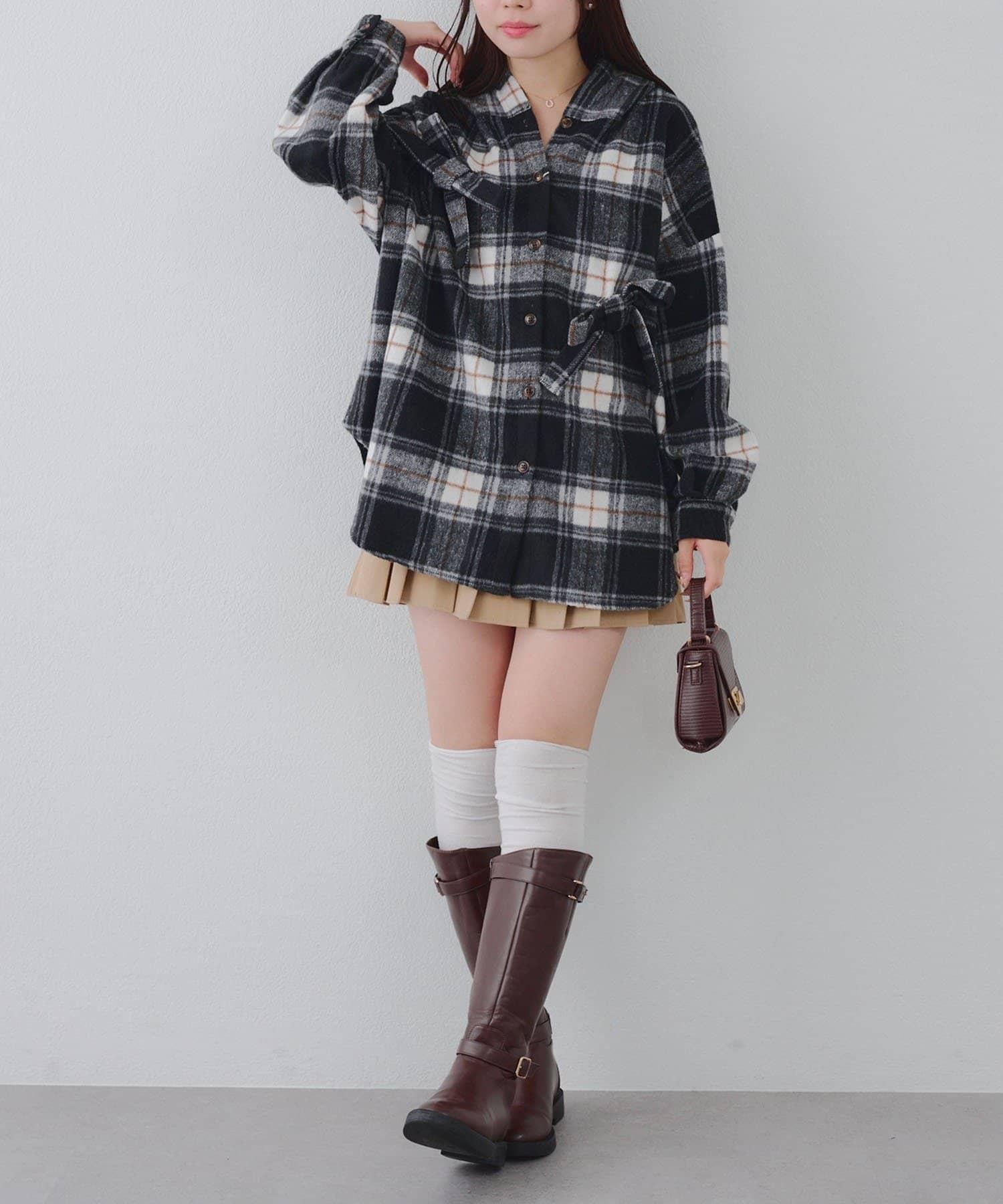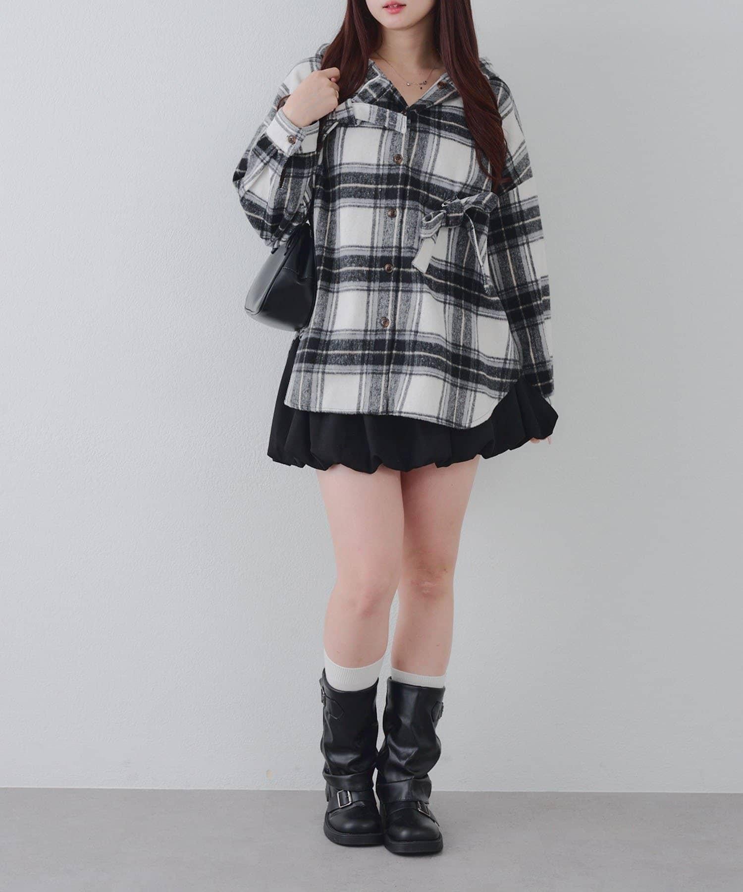 【RMAF】帶蝴蝶結格子連帽襯衫